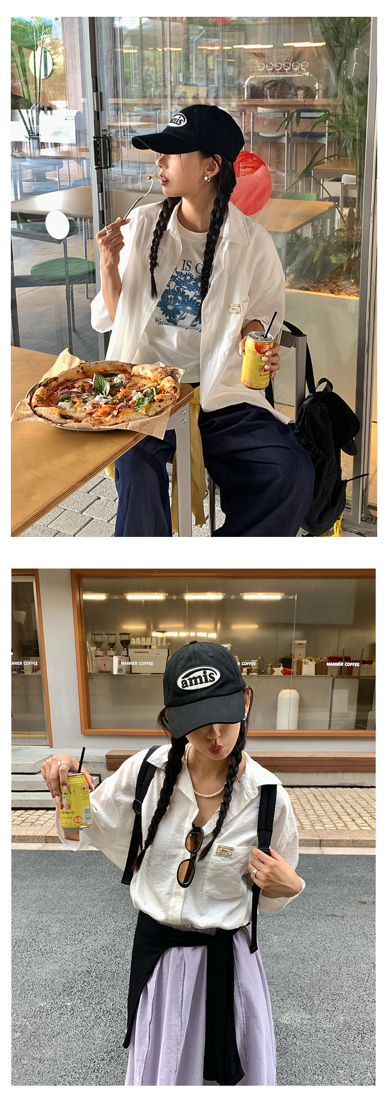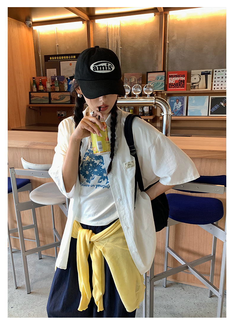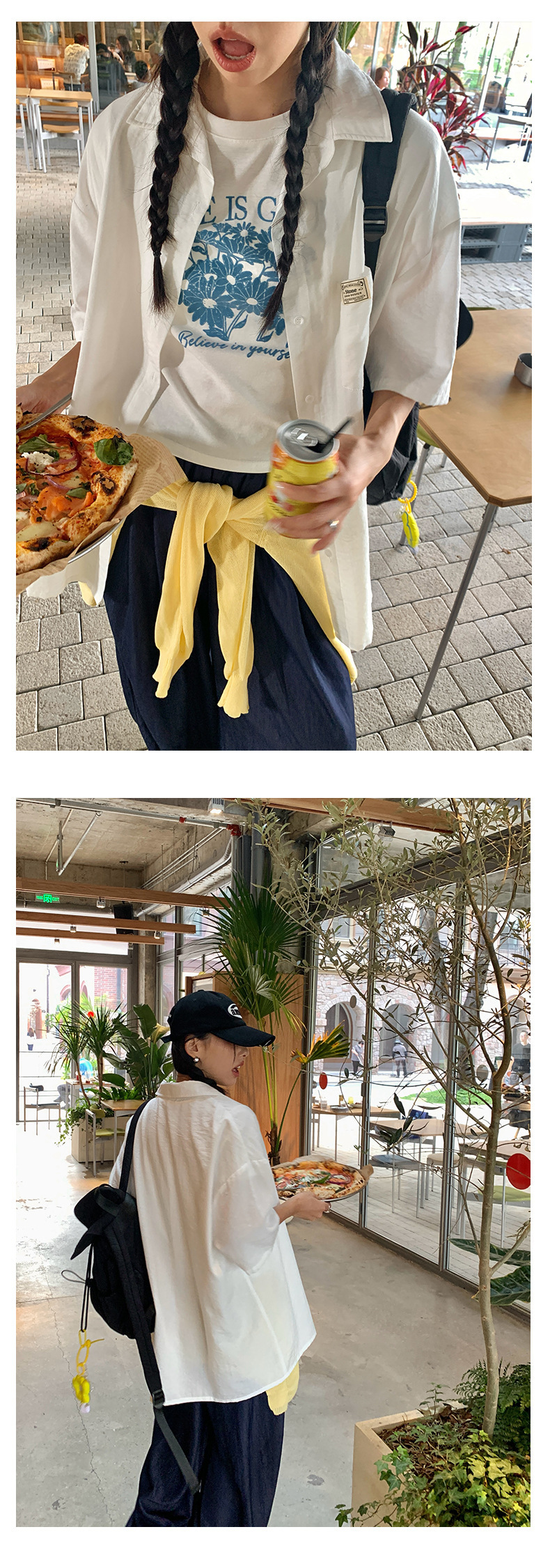 *o-ha-you*【FHZH1CC5020514】精緻小標裝飾簡約寬鬆短袖襯衫2025夏款休閒百搭時尚-2色