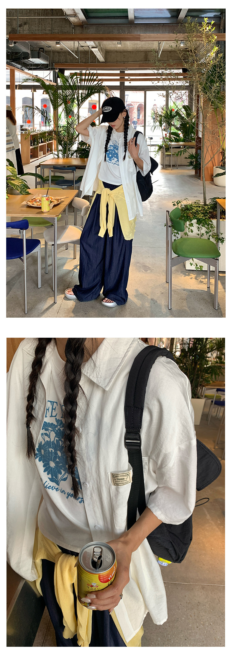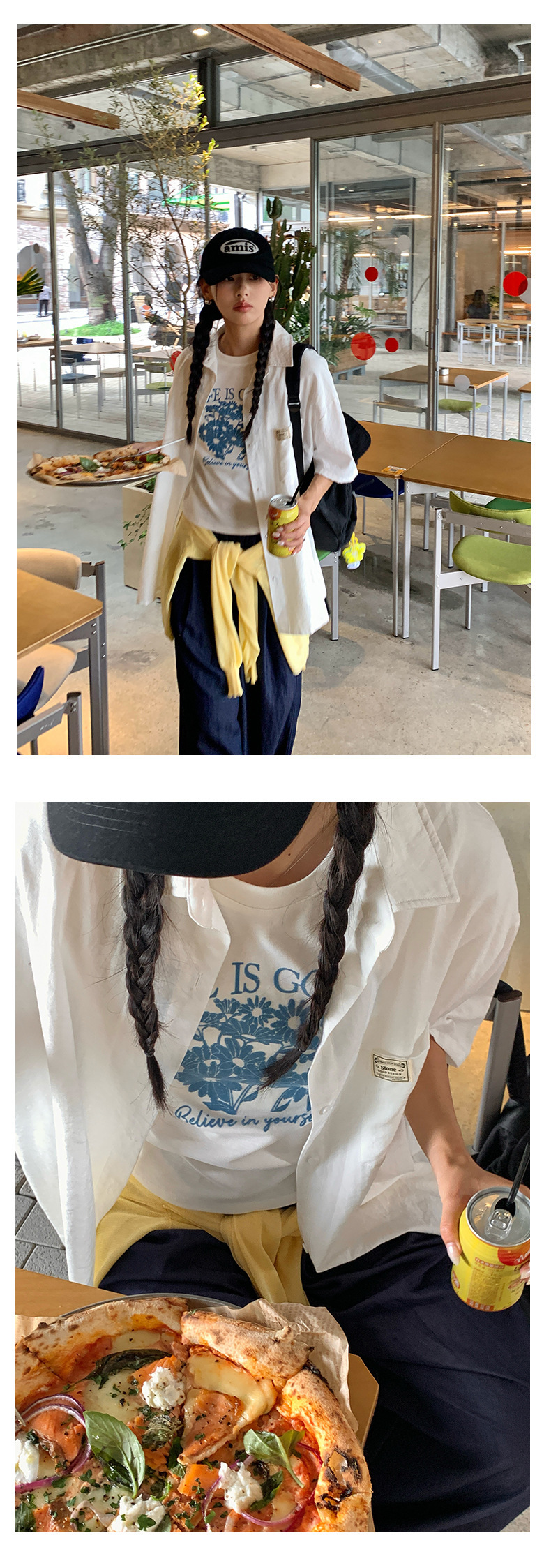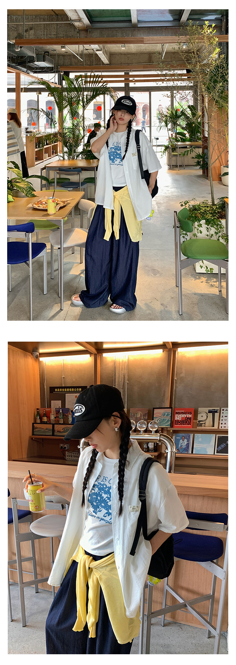 *o-ha-you*【FHZH1CC5020514】精緻小標裝飾簡約寬鬆短袖襯衫2025夏款休閒百搭時尚-2色