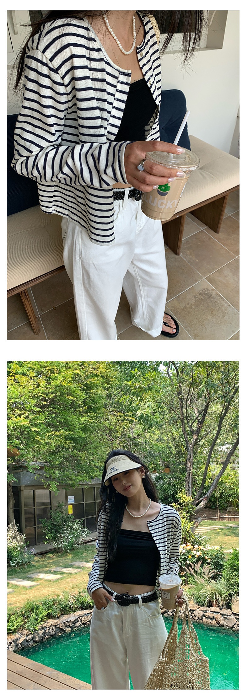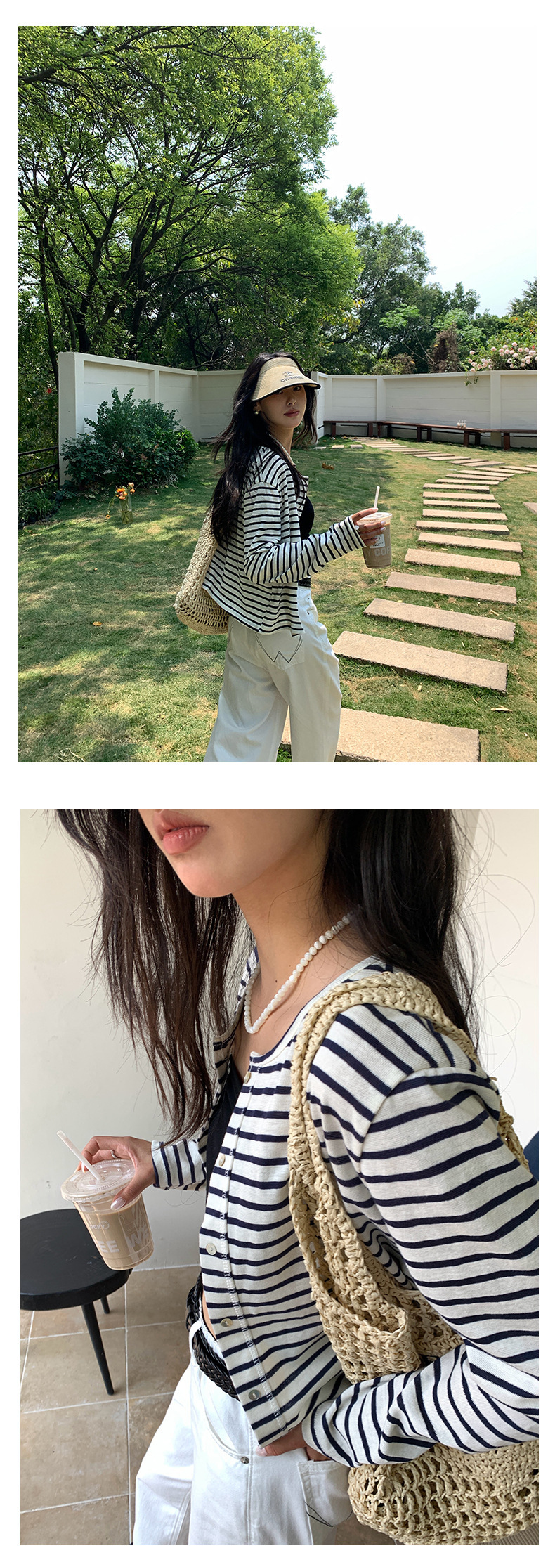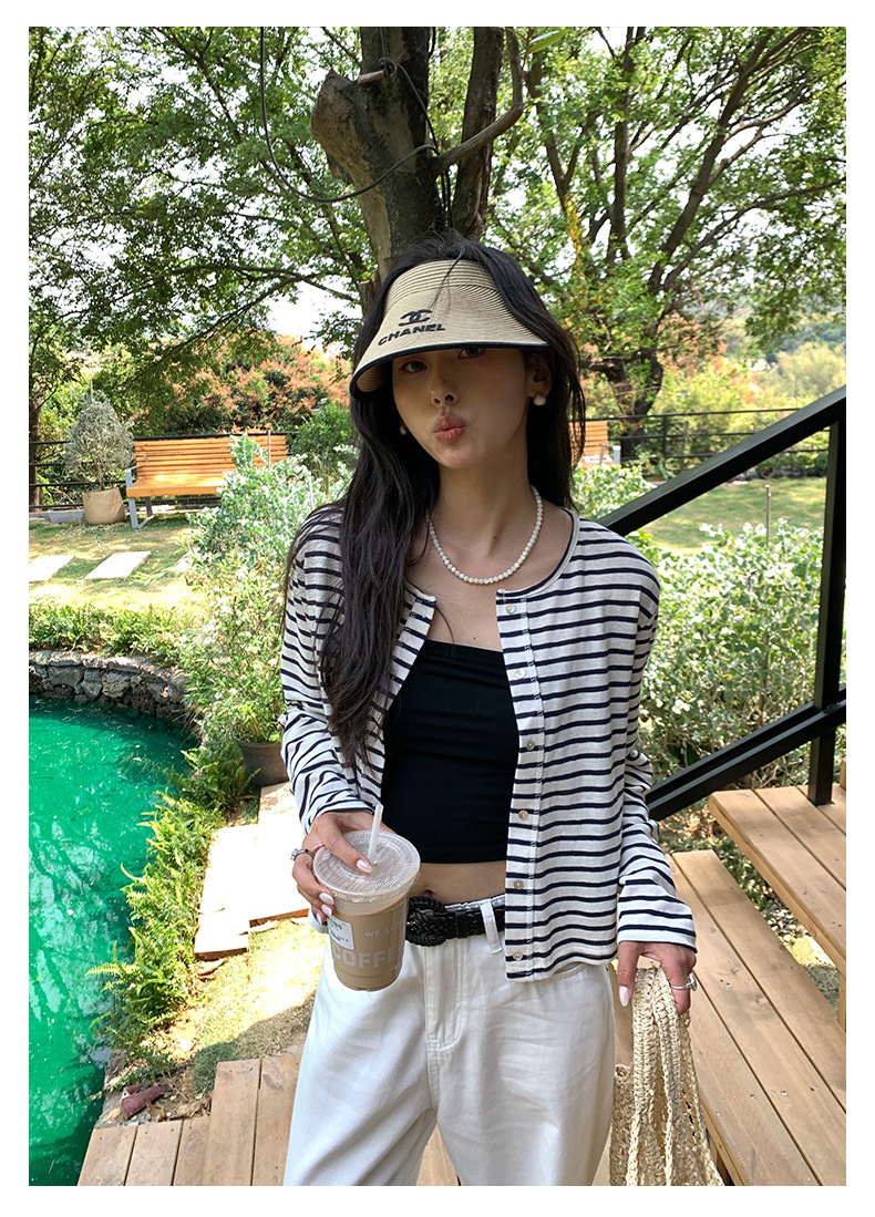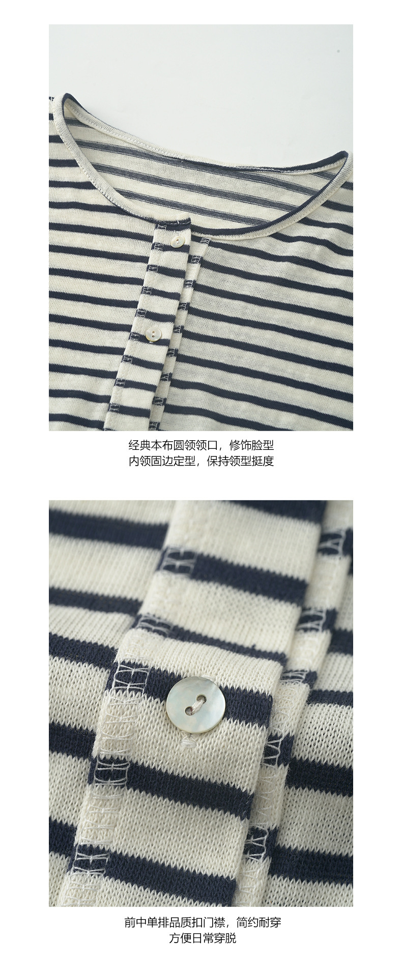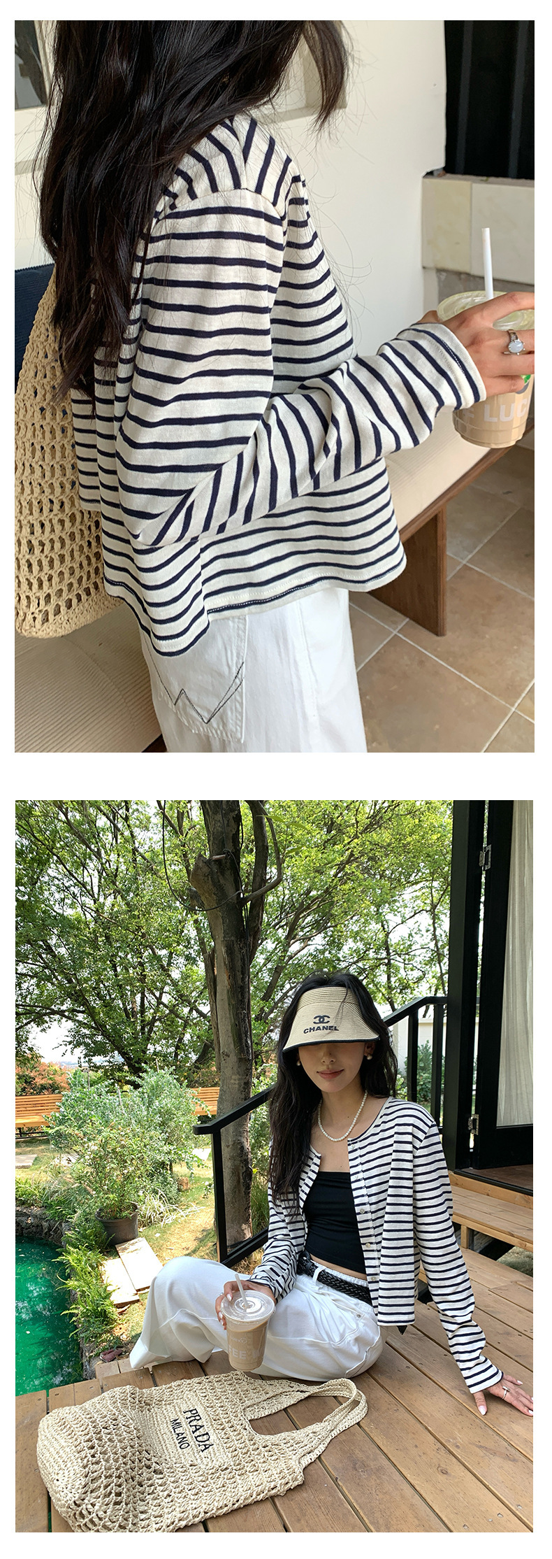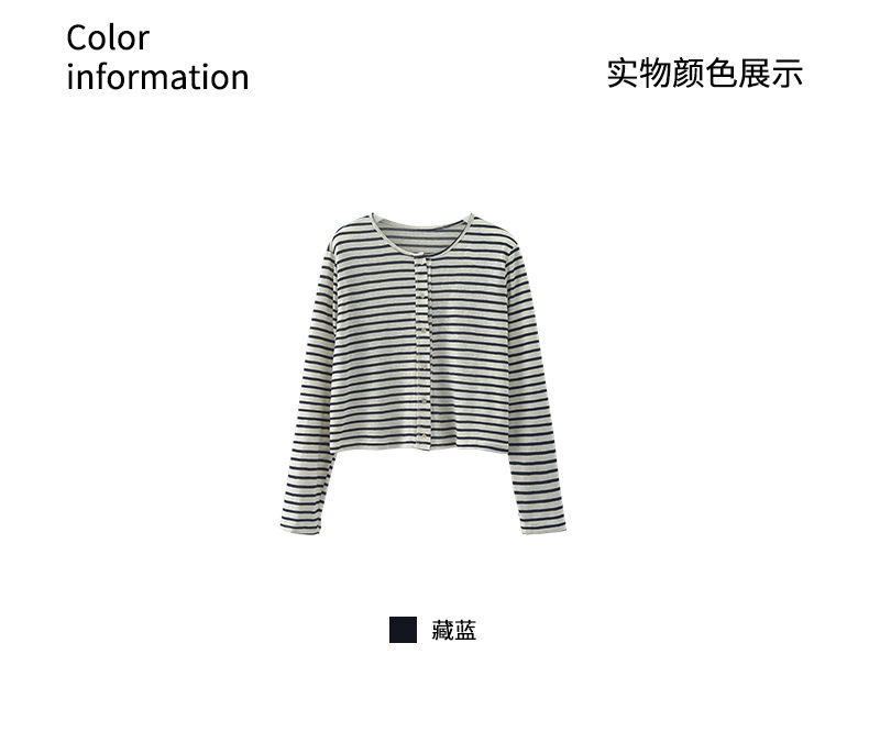 *o-ha-you*【FHZH1CD5020311】圓領單排扣條紋長袖薄版針織開襟衫2025夏休閒寬鬆百搭-如有需要請先諮詢