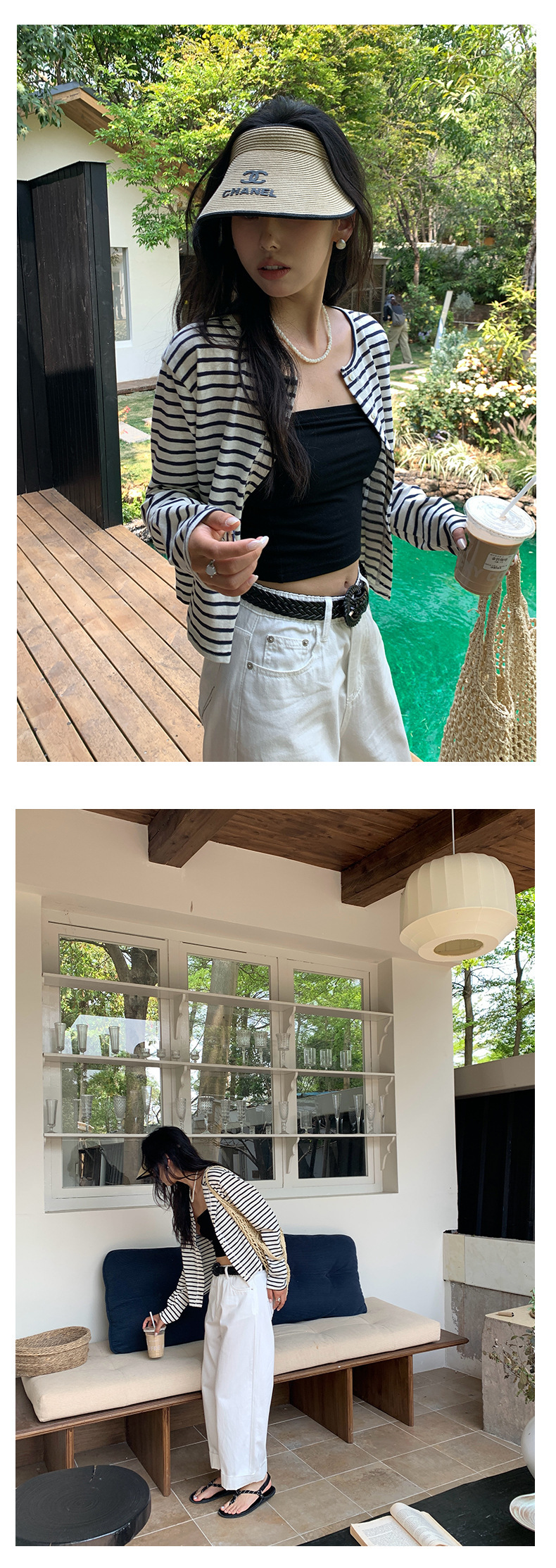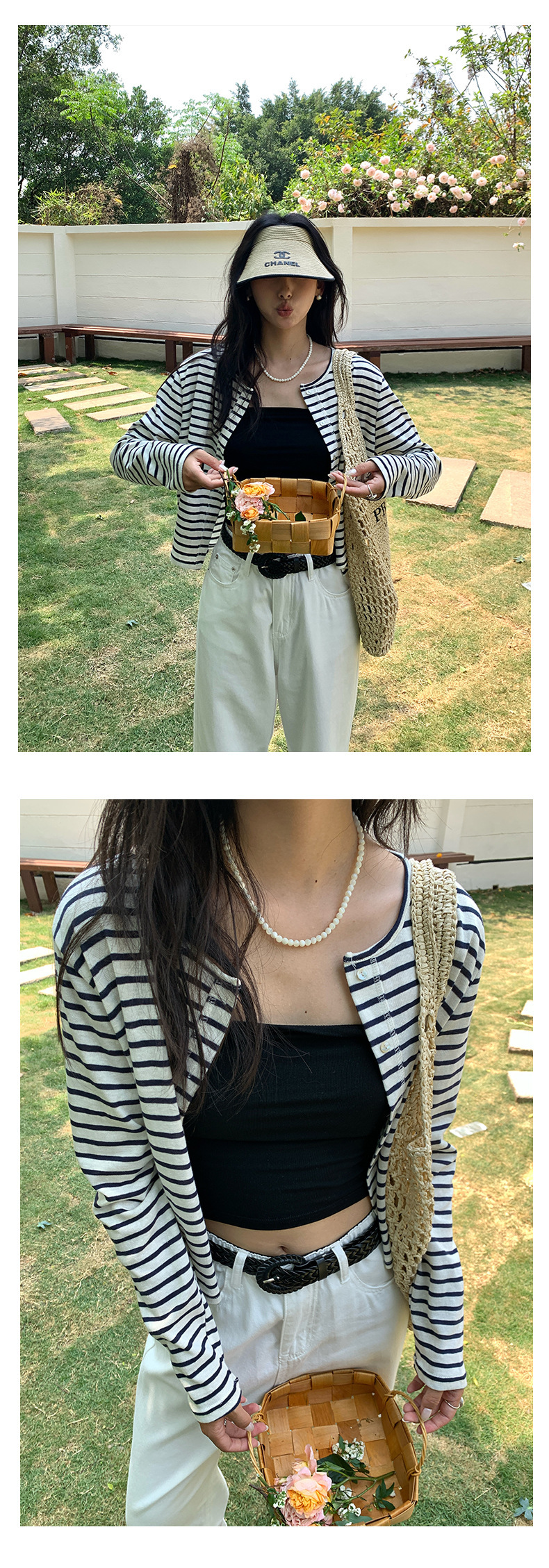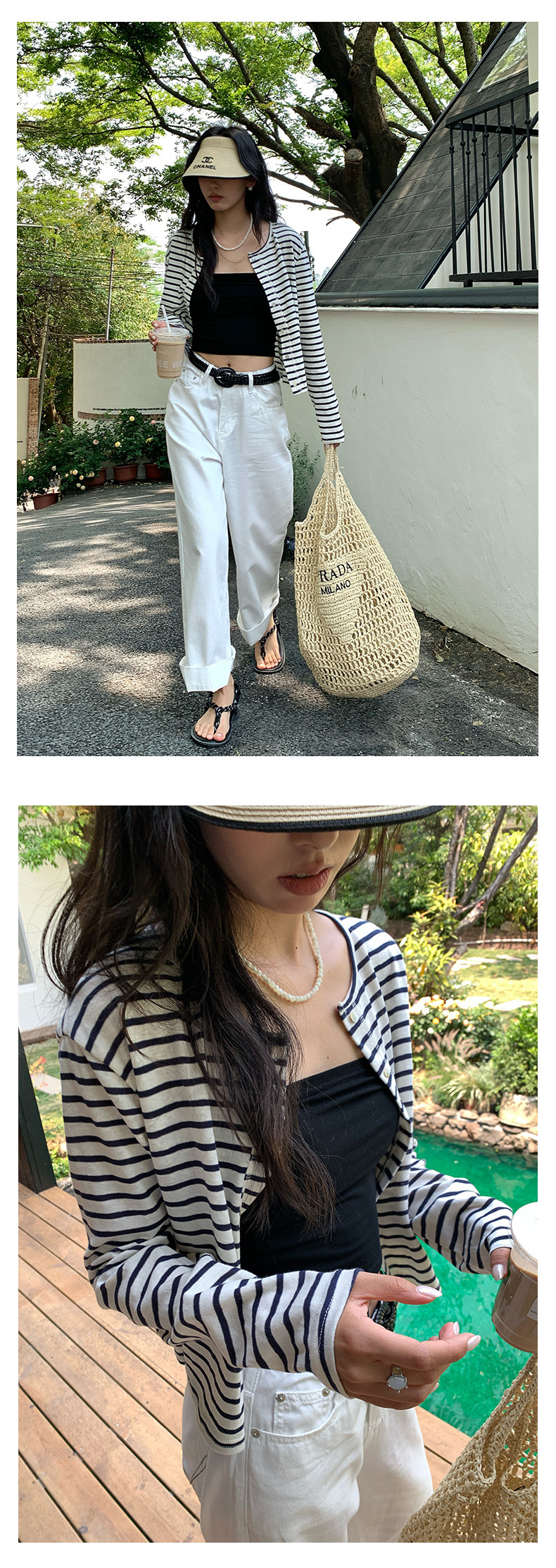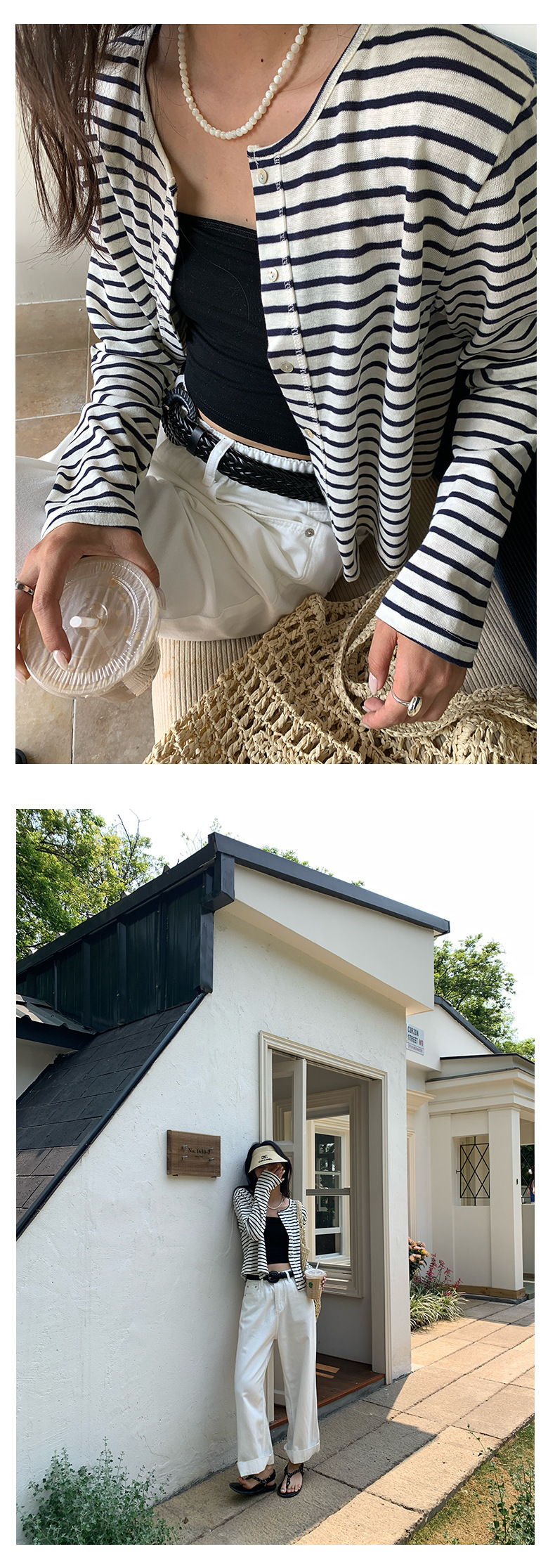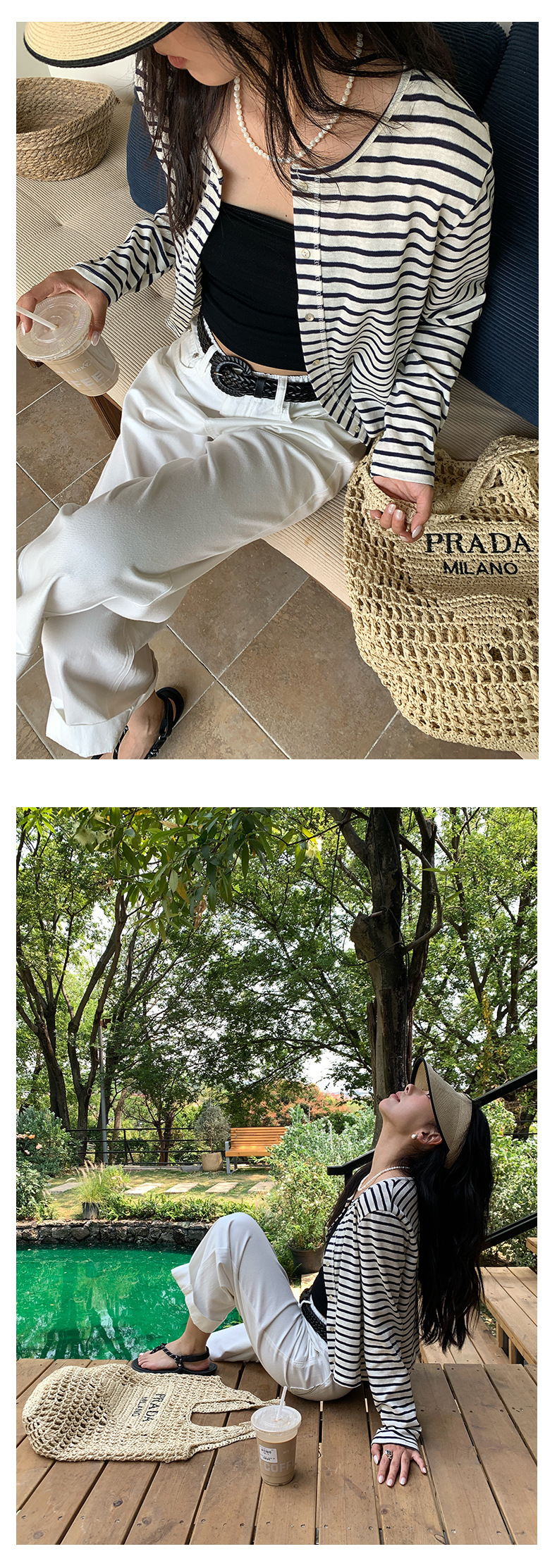 *o-ha-you*【FHZH1CD5020311】圓領單排扣條紋長袖薄版針織開襟衫2025夏休閒寬鬆百搭-如有需要請先諮詢