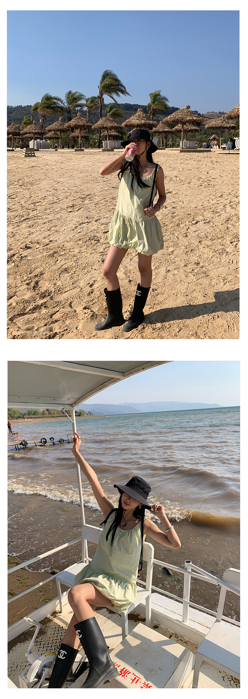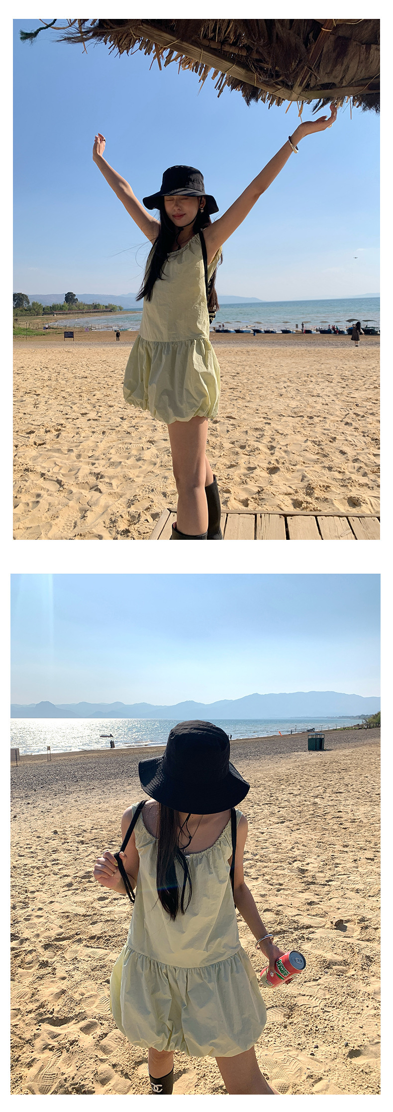 *o-ha-you*【FHZH1CF5020246】木耳邊肩帶蓬蓬裙擺無袖背心裙2025夏款甜美可愛裙子洋裝-2色-如有需要請先諮詢
