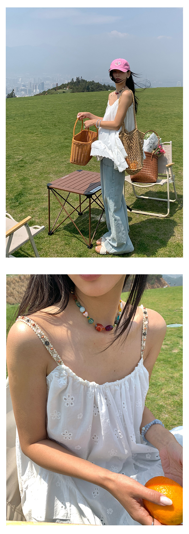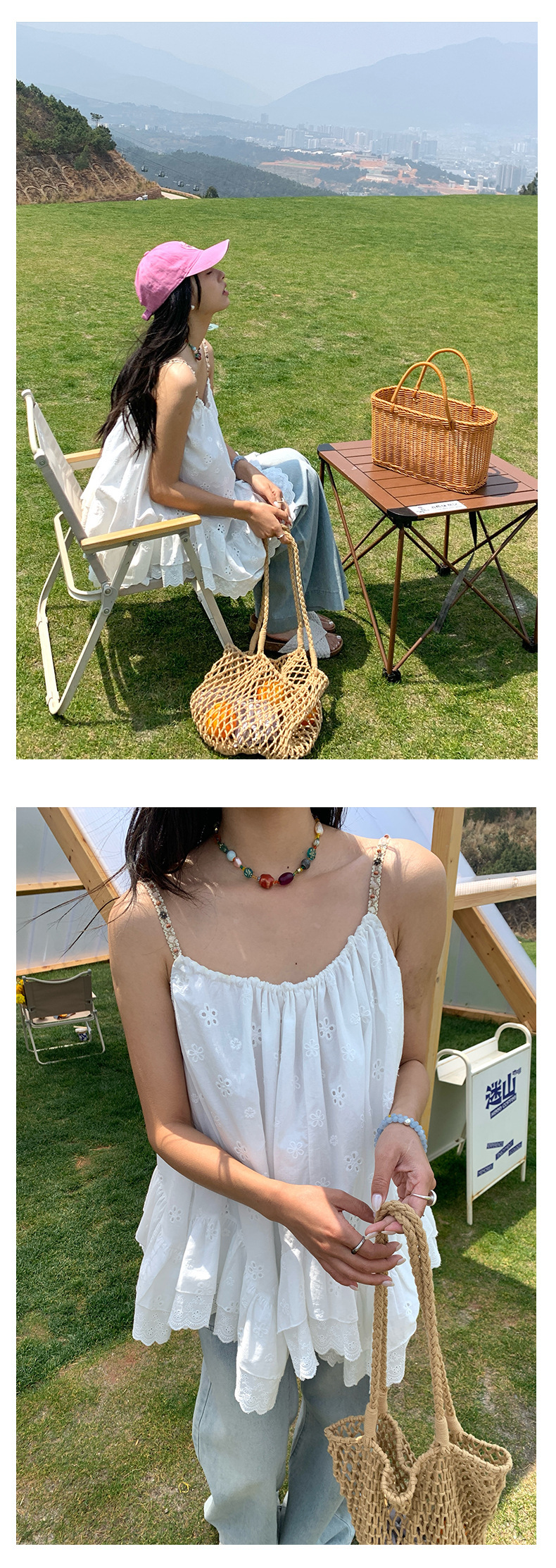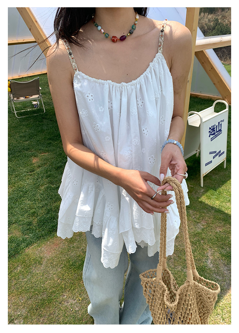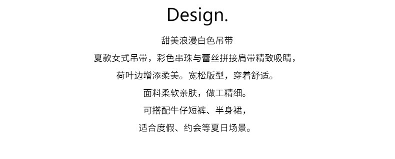 *o-ha-you*【FHZH1CF5020425】彩色串珠肩帶蕾絲拼接荷葉邊寬鬆吊帶背心2025夏甜美浪漫