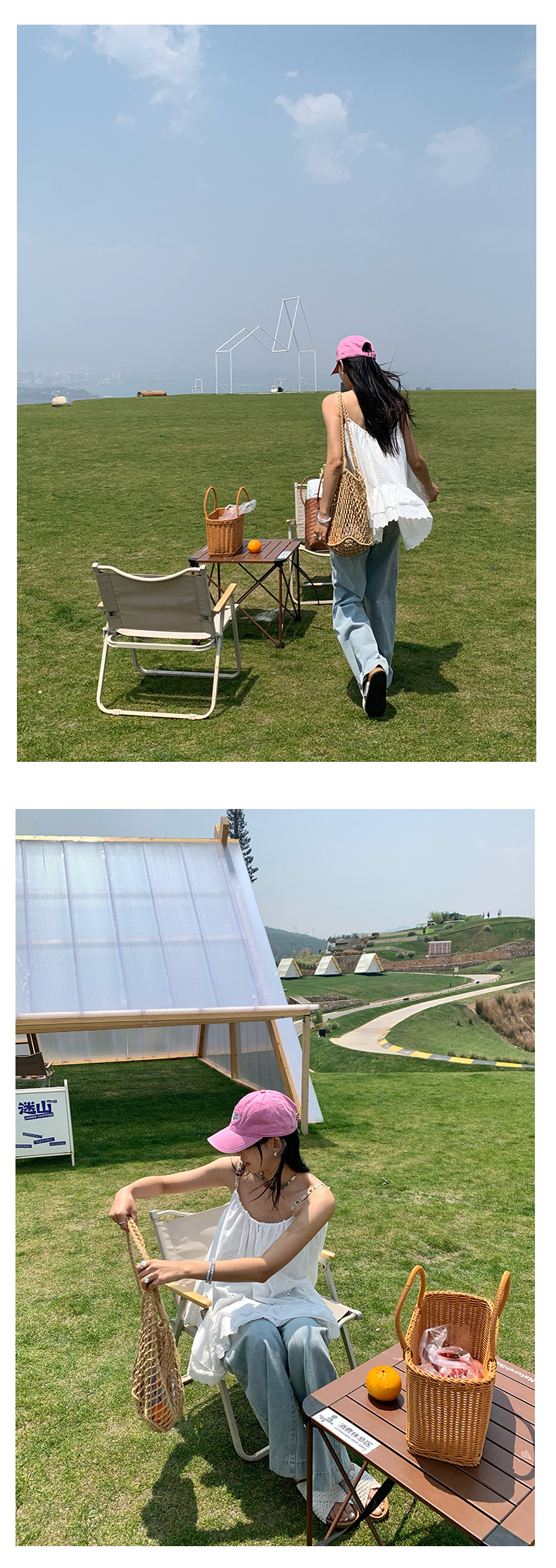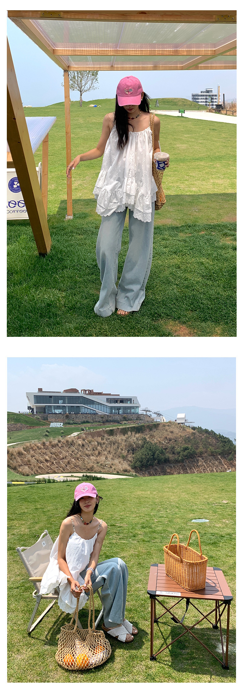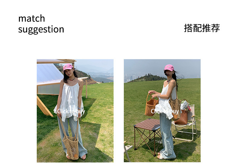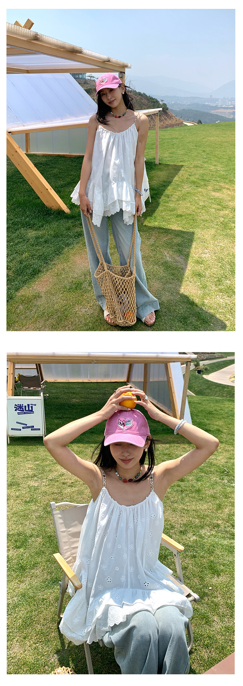 *o-ha-you*【FHZH1CF5020425】彩色串珠肩帶蕾絲拼接荷葉邊寬鬆吊帶背心2025夏甜美浪漫
