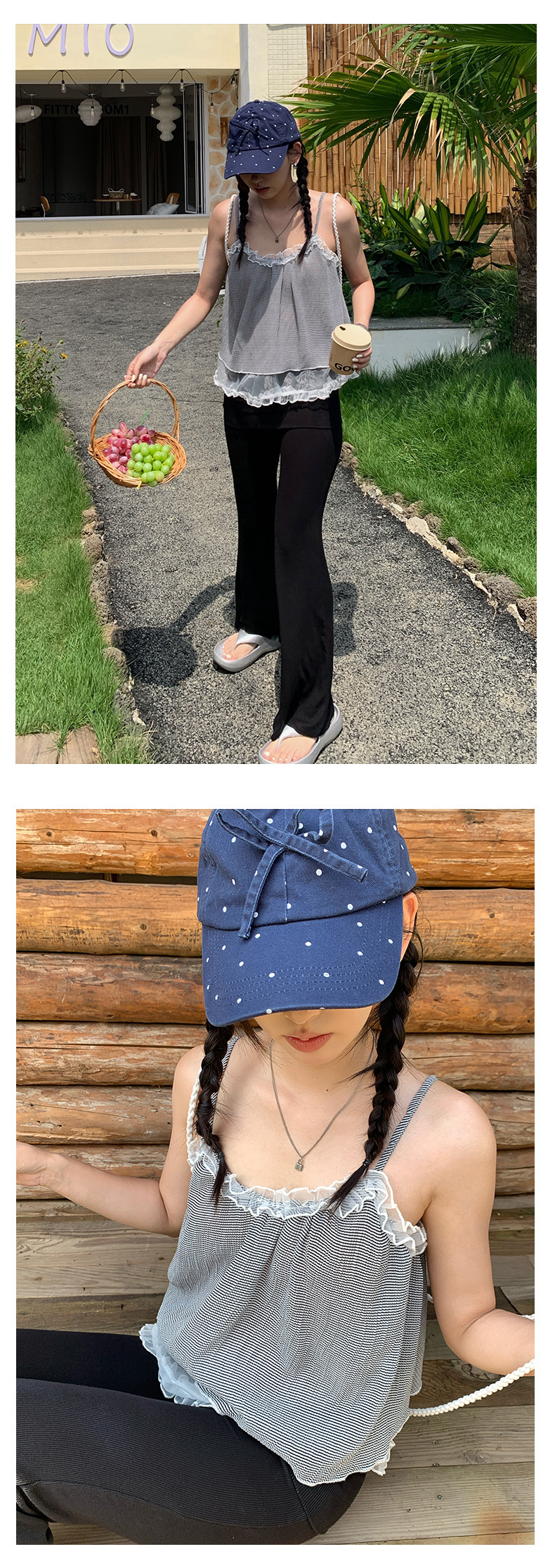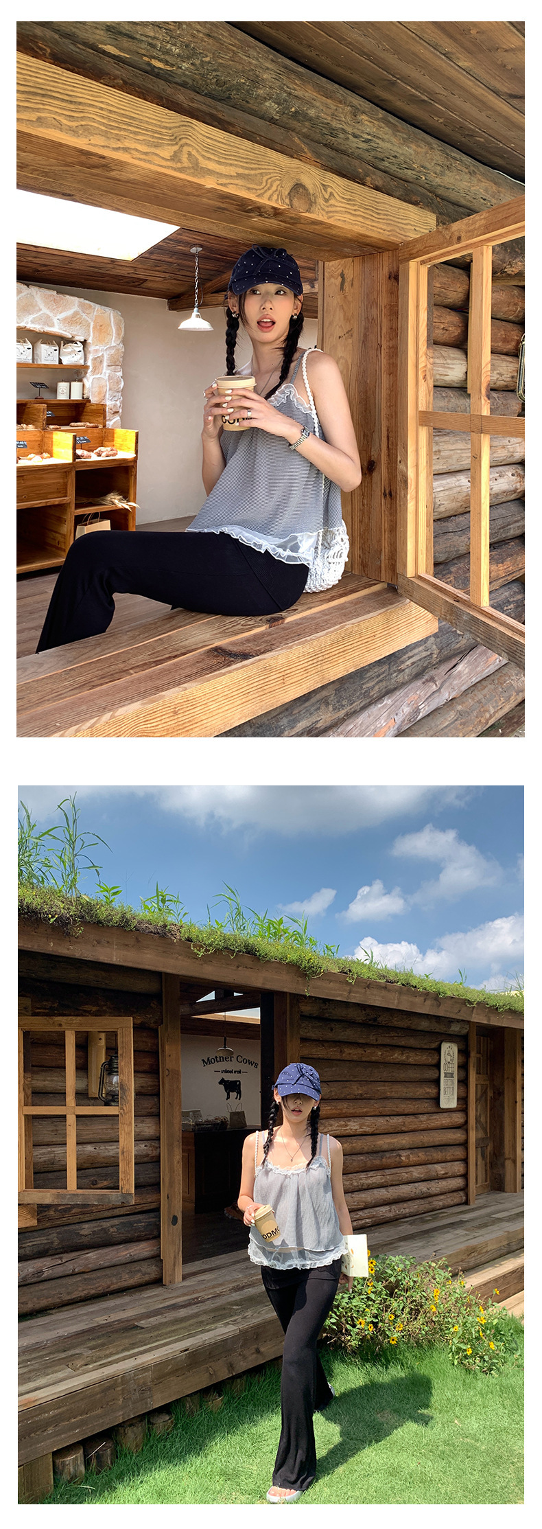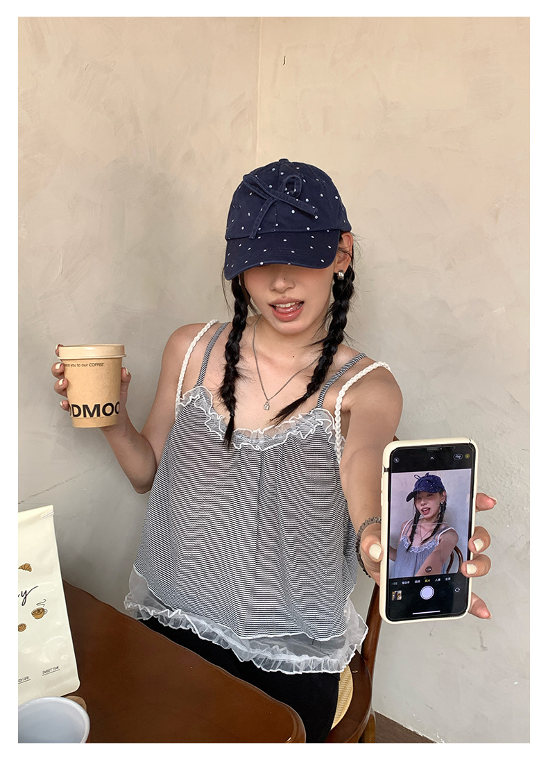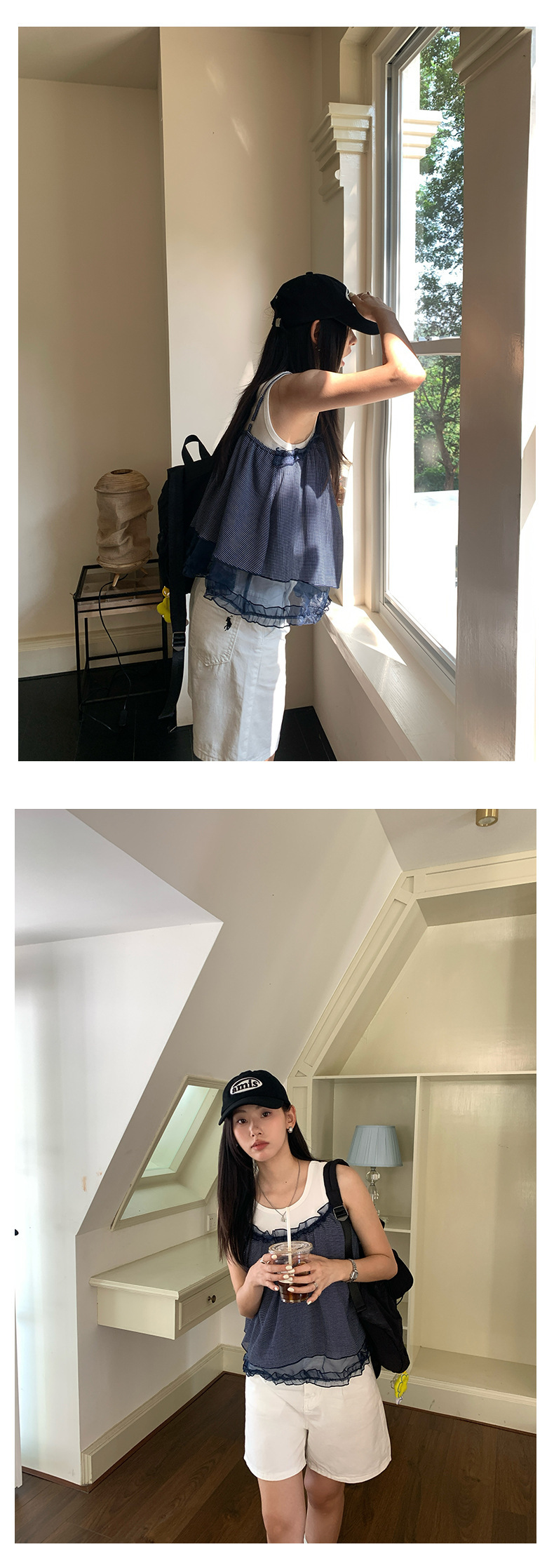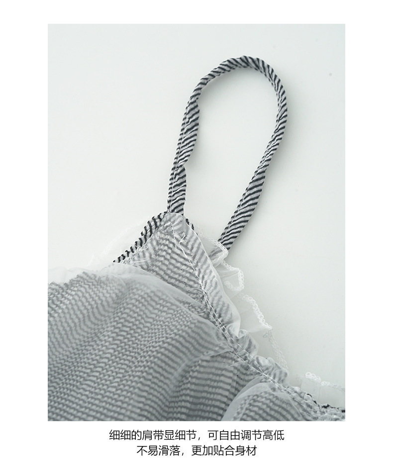 *o-ha-you*【FHZH1CF5020690】韓版小眾設計感格子拼接花邊條紋吊帶戀夏風穿搭背心-2色