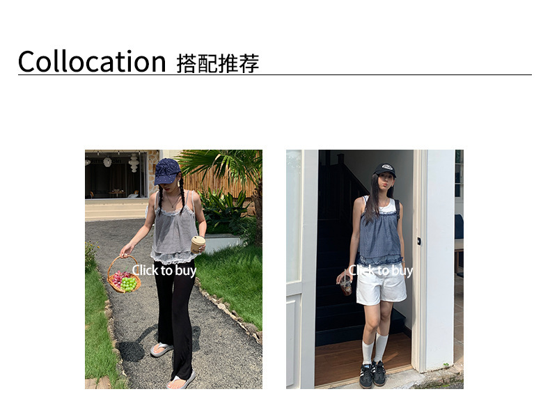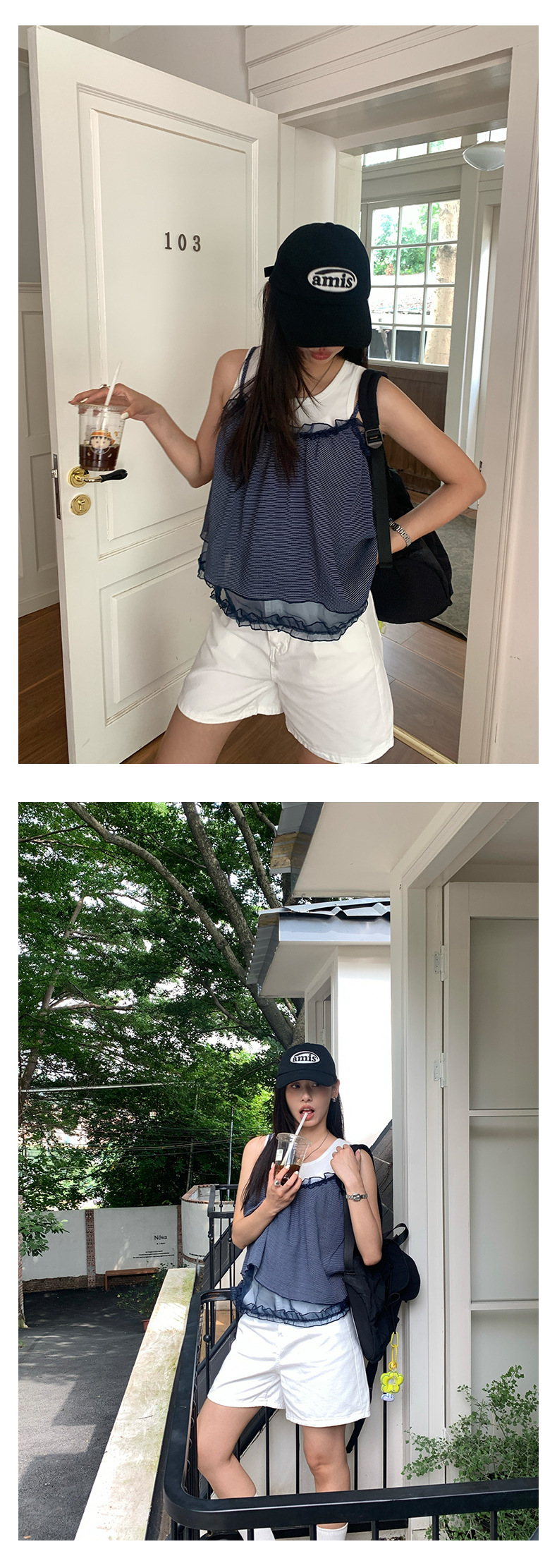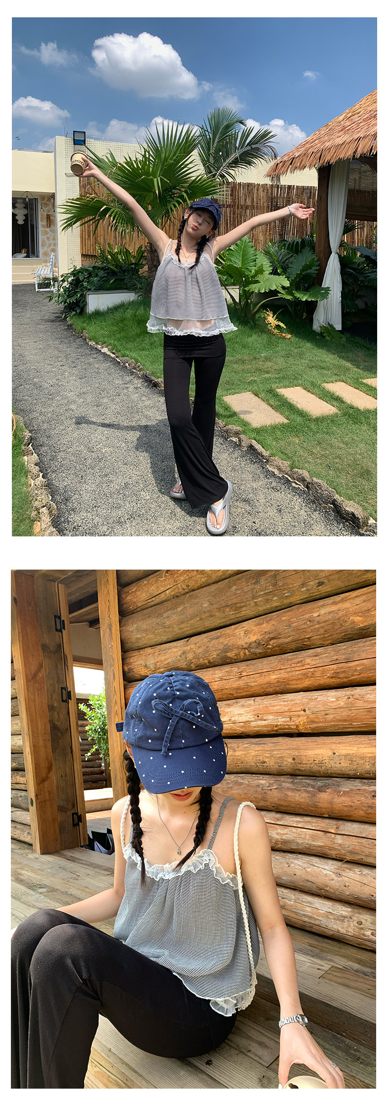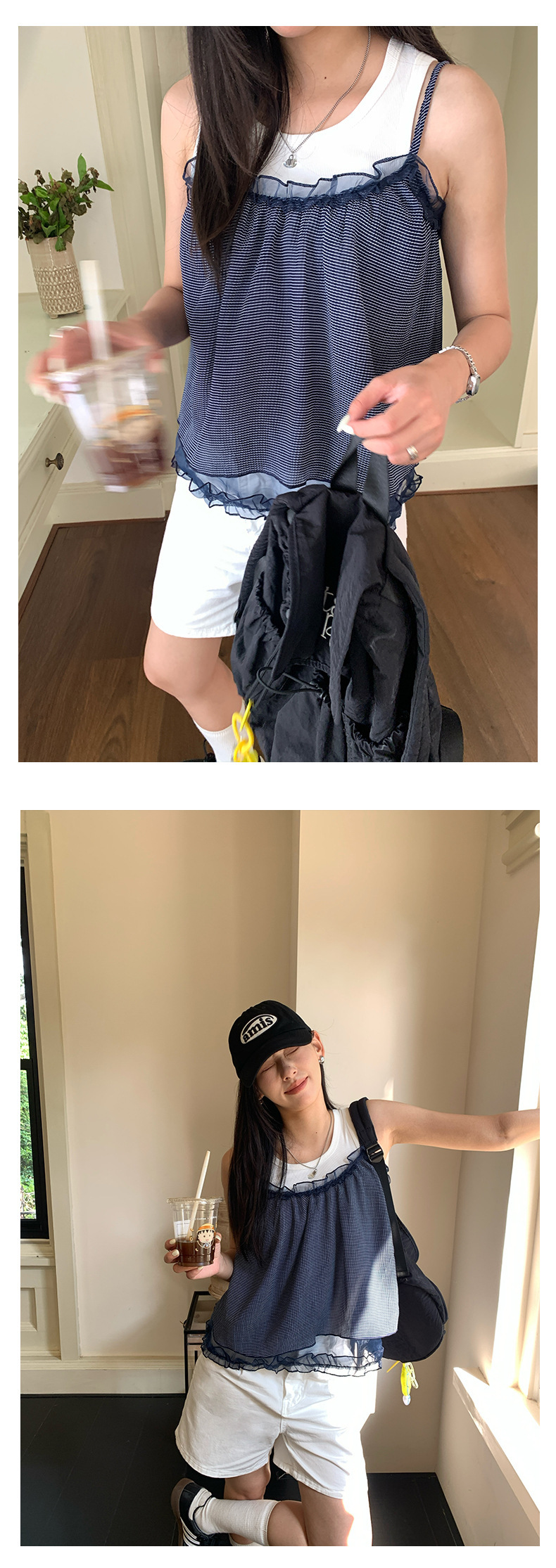 *o-ha-you*【FHZH1CF5020690】韓版小眾設計感格子拼接花邊條紋吊帶戀夏風穿搭背心-2色