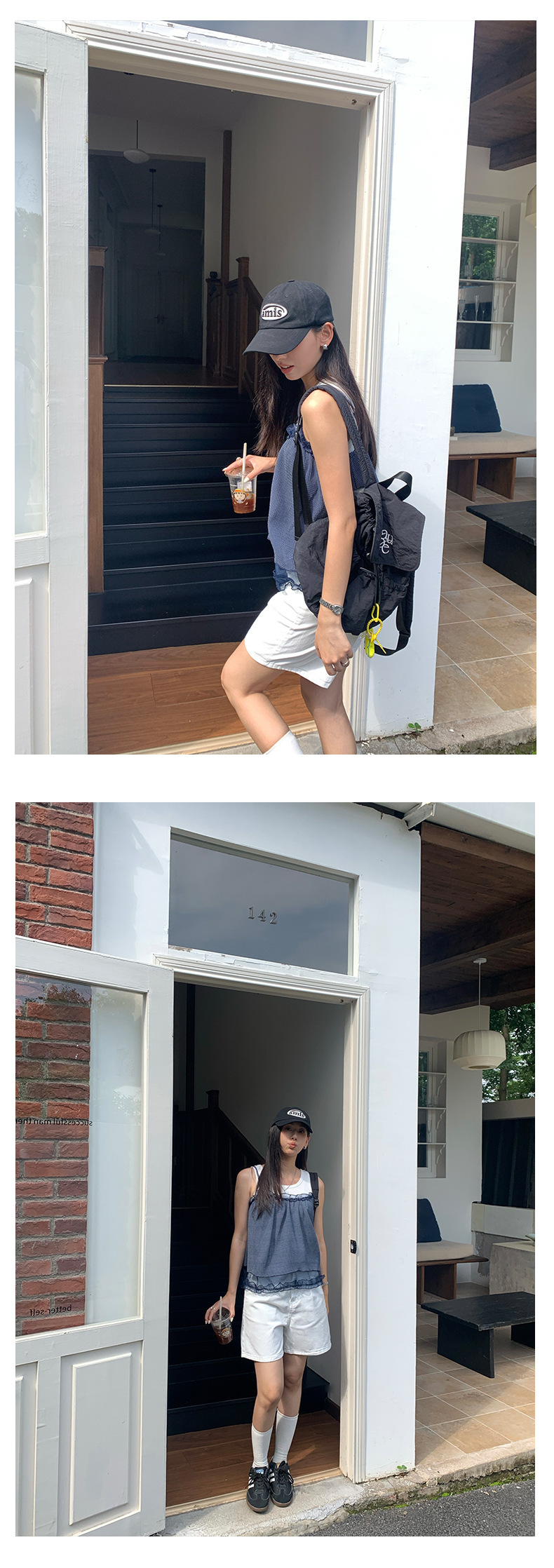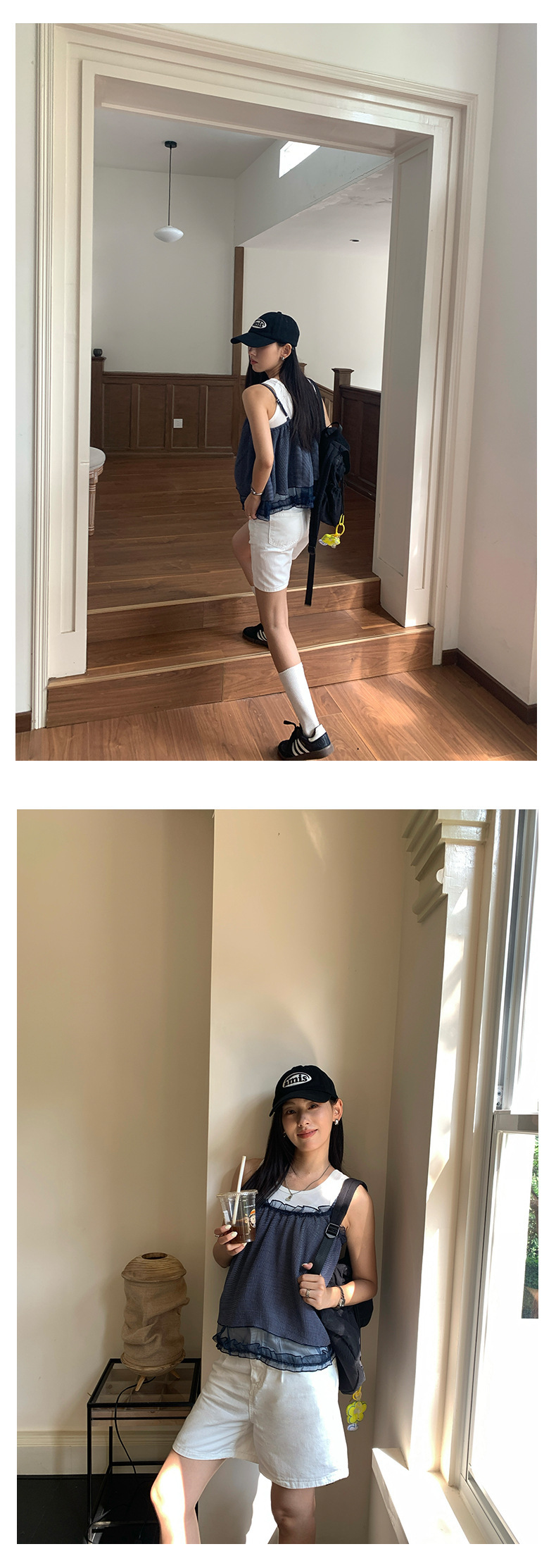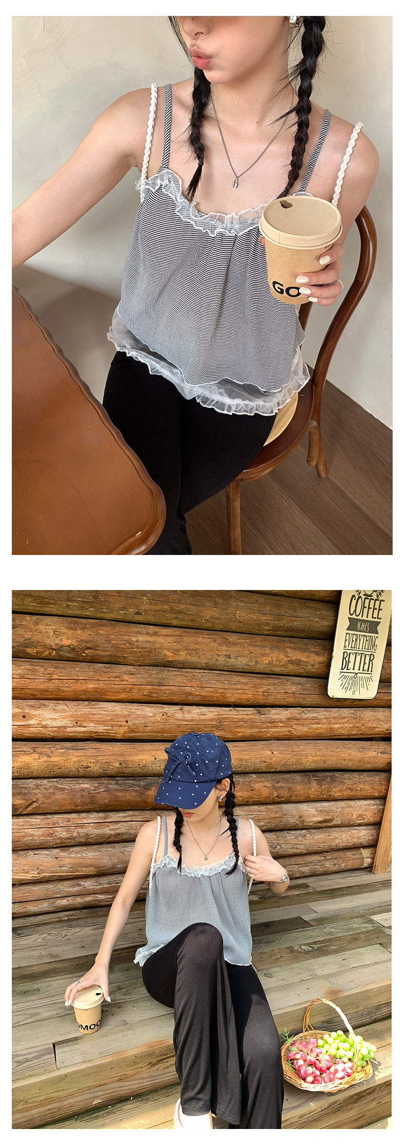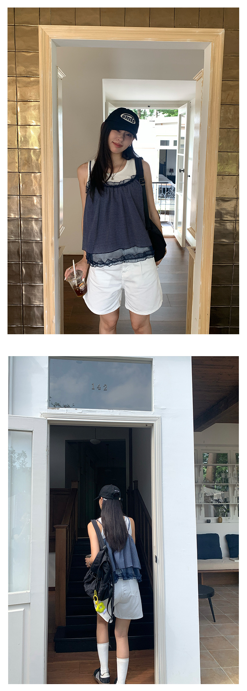 *o-ha-you*【FHZH1CF5020690】韓版小眾設計感格子拼接花邊條紋吊帶戀夏風穿搭背心-2色