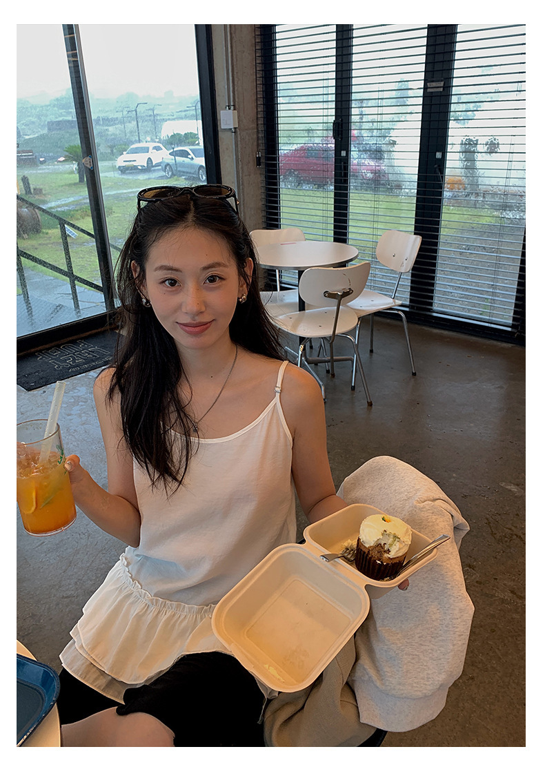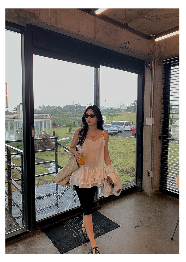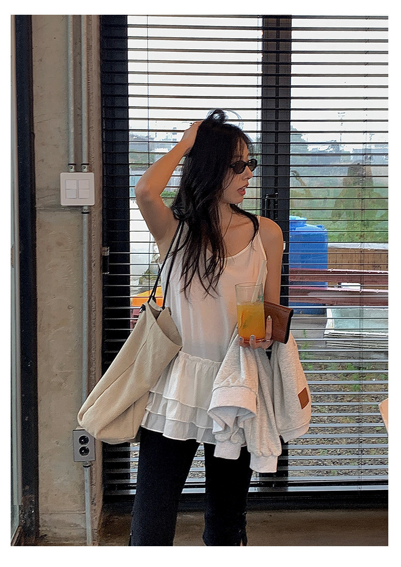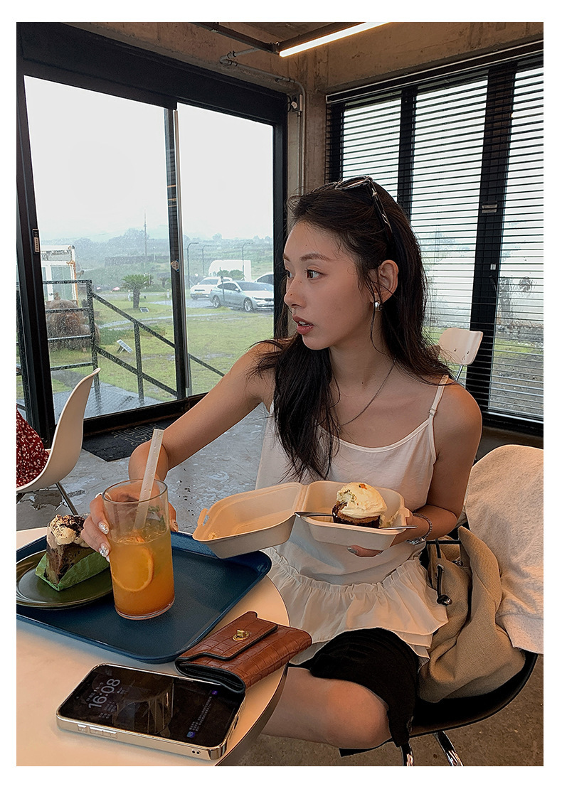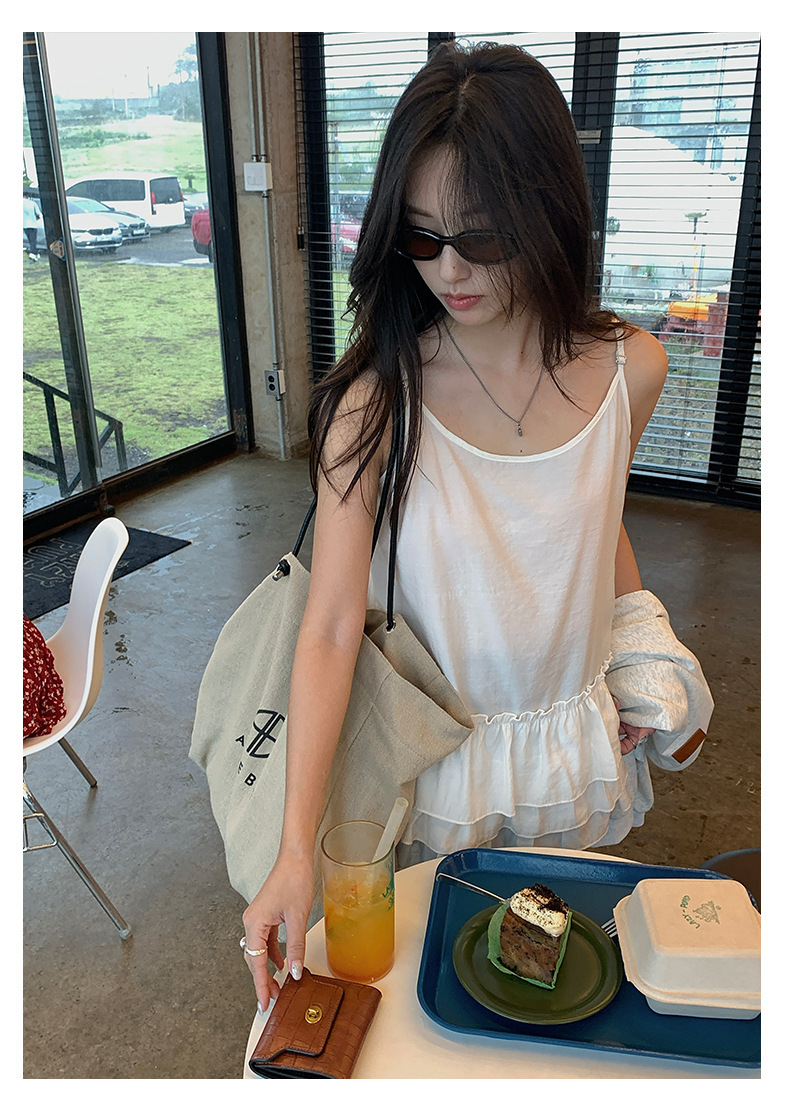 *o-ha-you*【FHZH1CF5030754】韓版chic早秋V領寬鬆拼接層次感小個子吊帶連衣裙洋裝