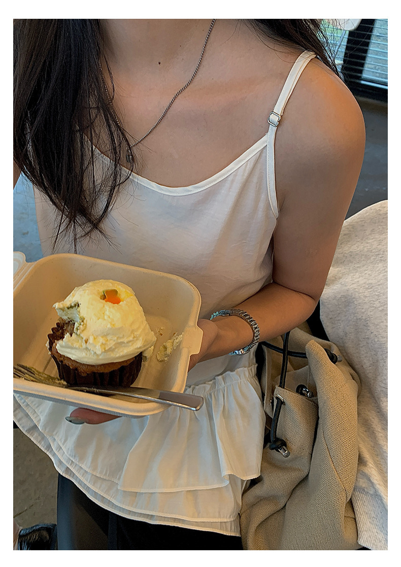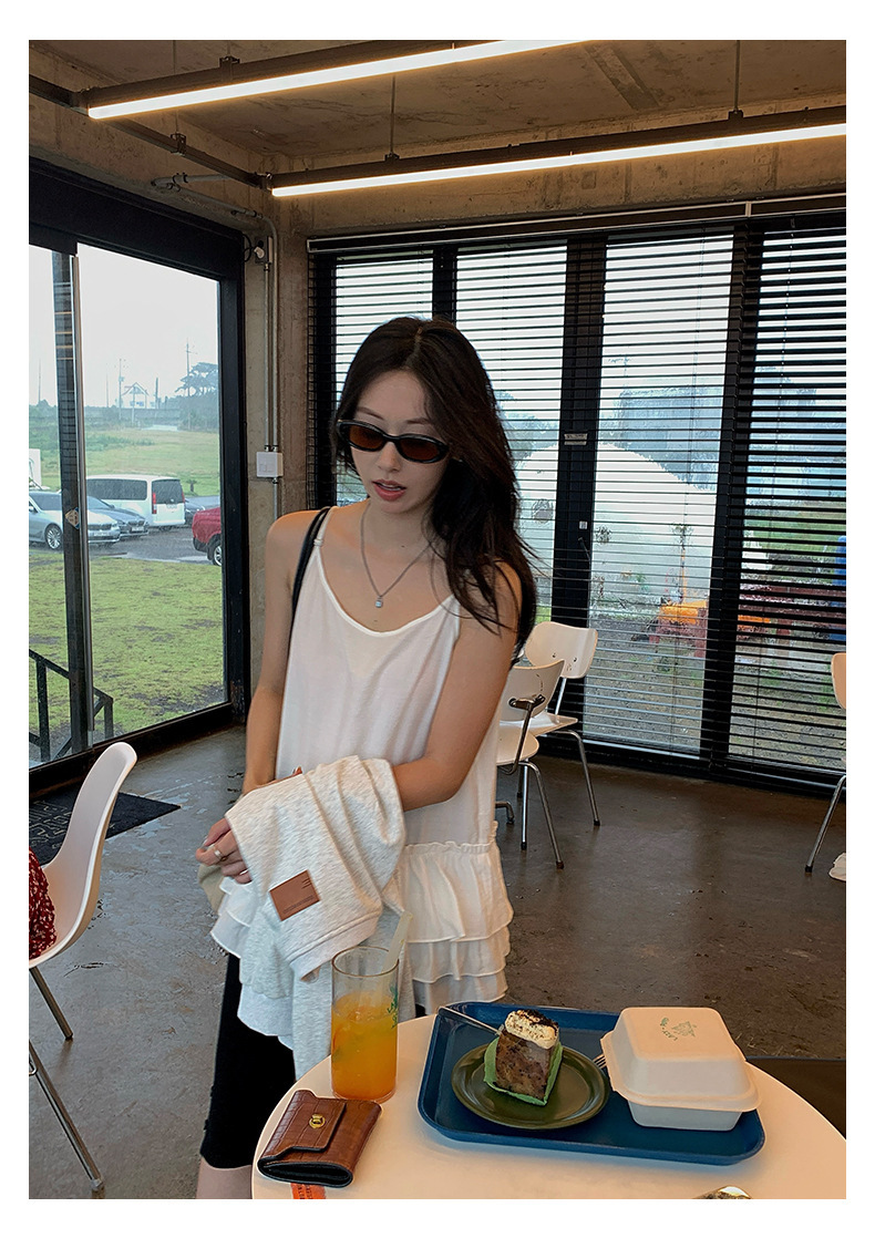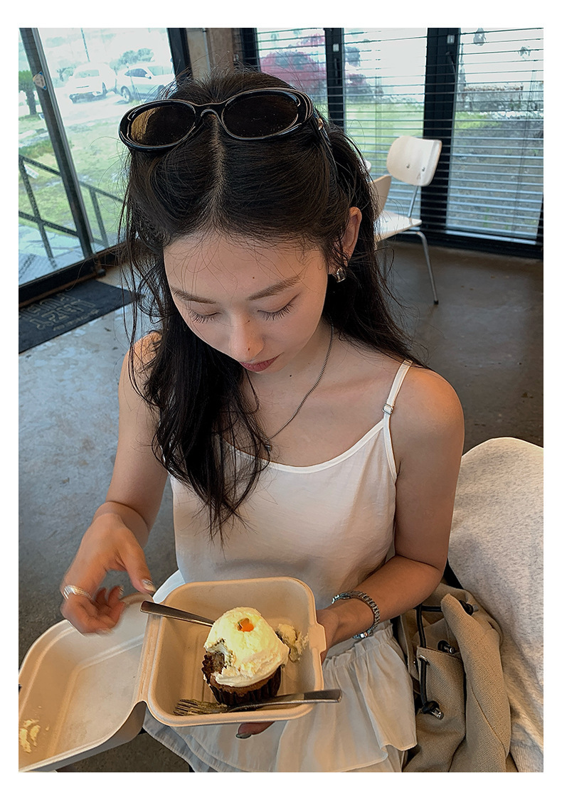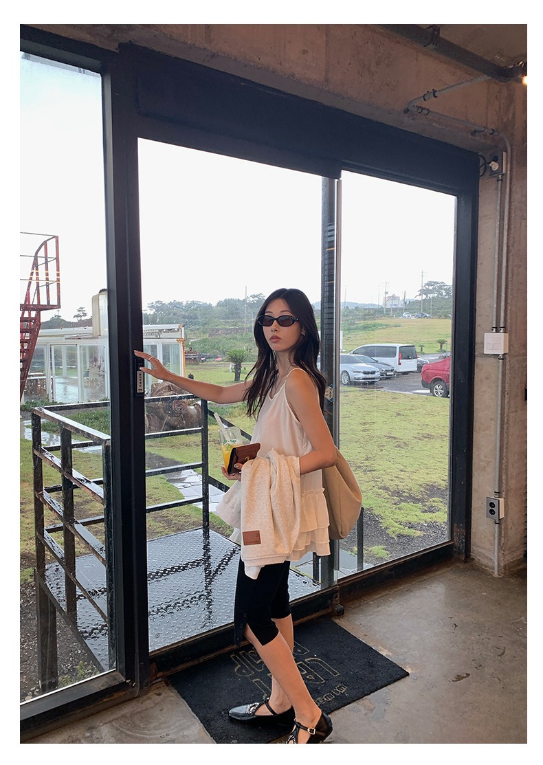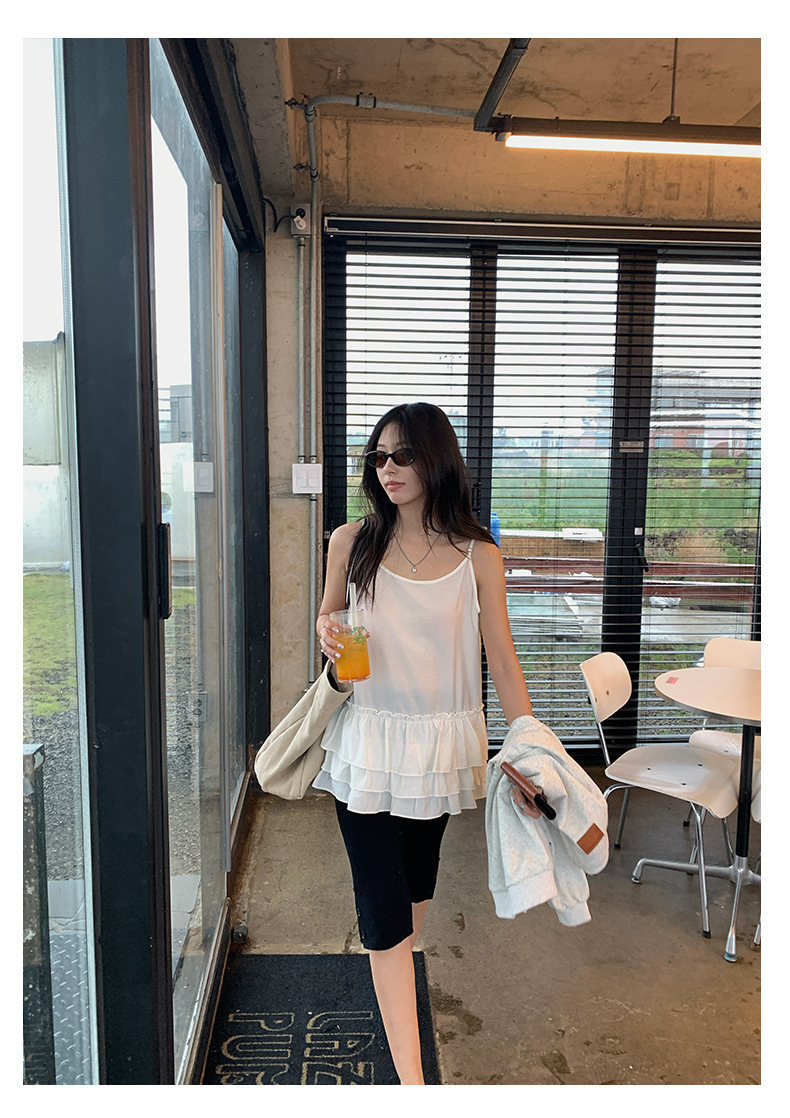 *o-ha-you*【FHZH1CF5030754】韓版chic早秋V領寬鬆拼接層次感小個子吊帶連衣裙洋裝