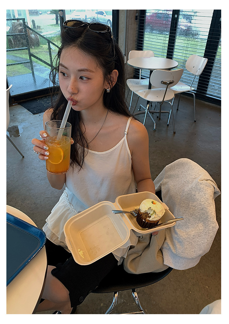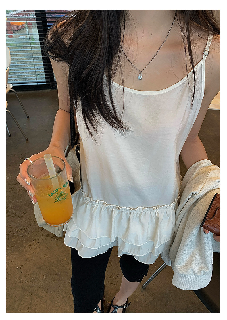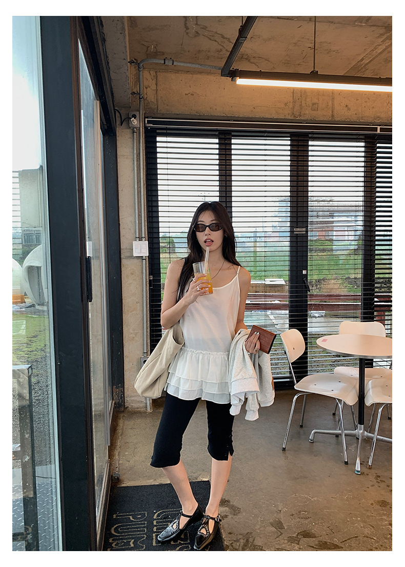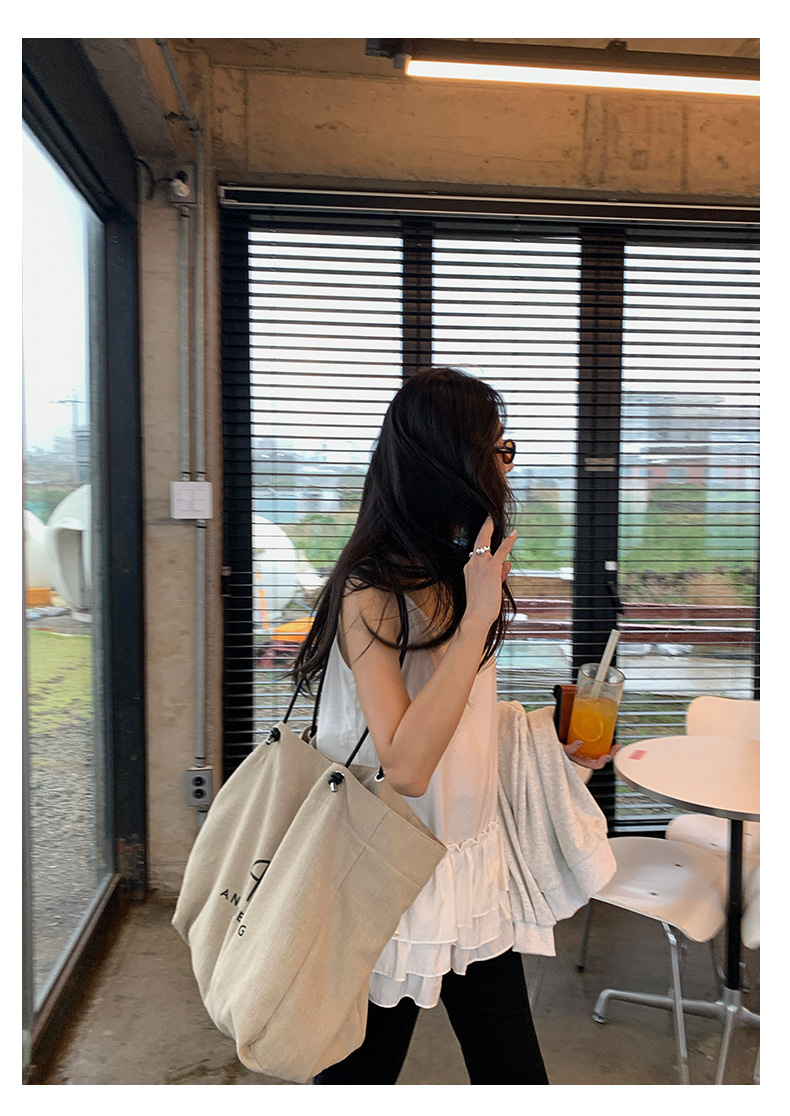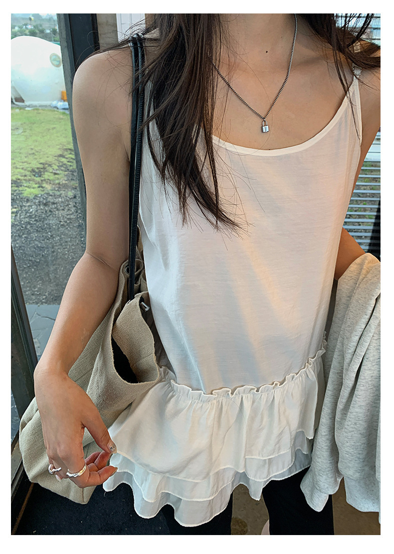 *o-ha-you*【FHZH1CF5030754】韓版chic早秋V領寬鬆拼接層次感小個子吊帶連衣裙洋裝