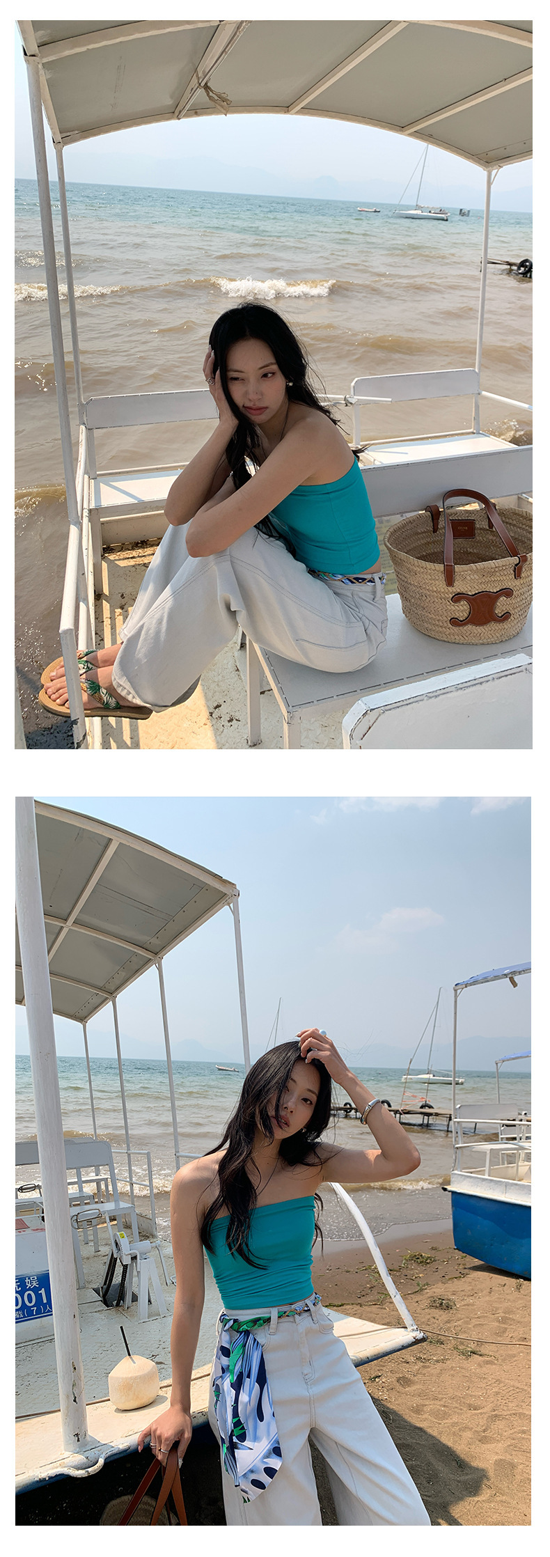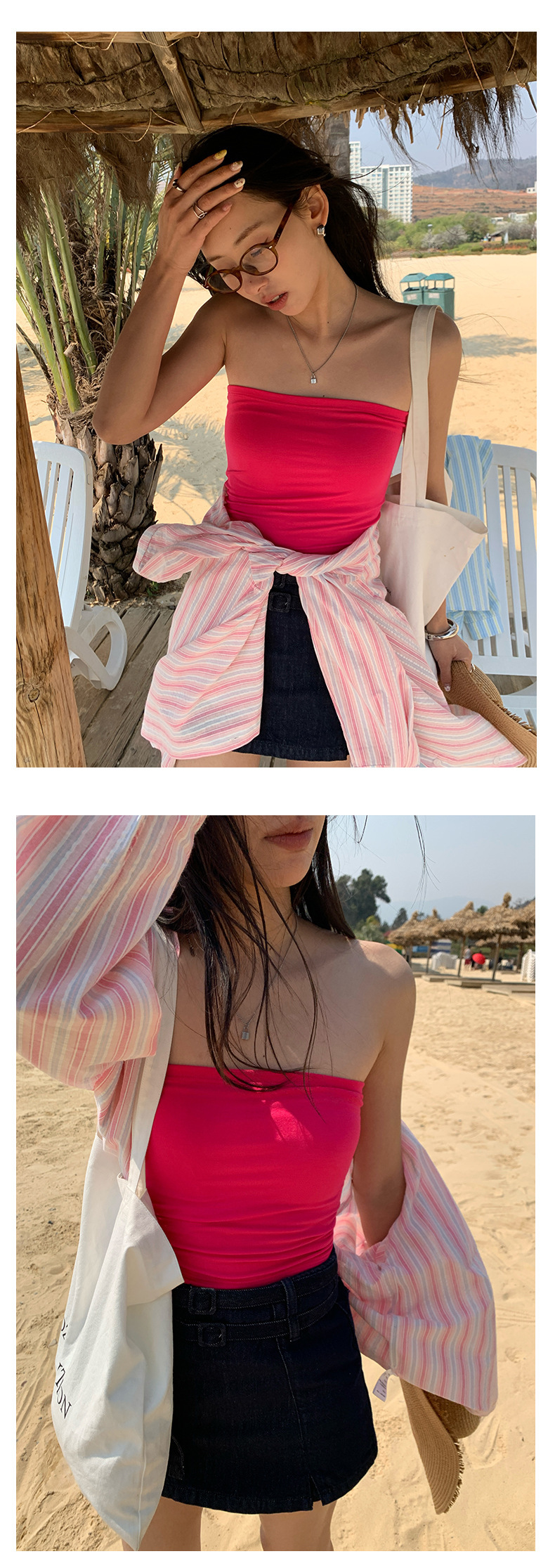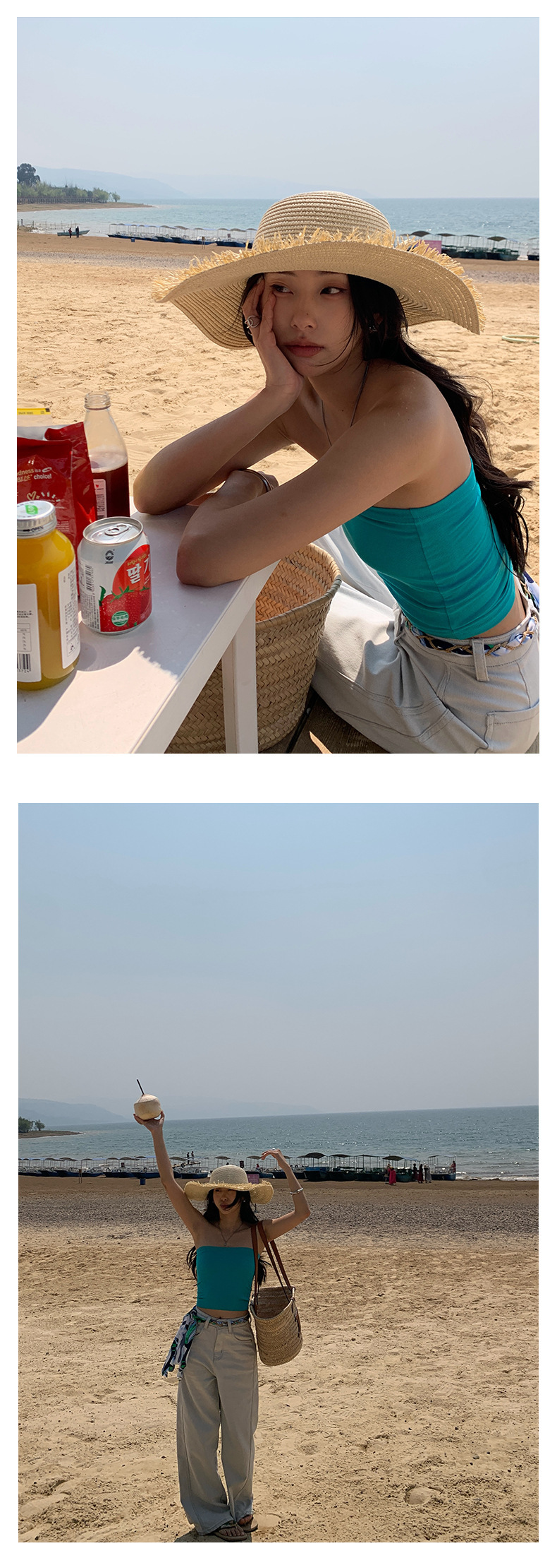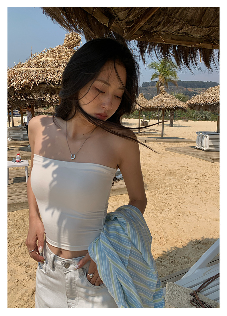 *o-ha-you*【FHZH1CG5020271】簡約純色邊緣壓線無袖短版抹胸2025夏款個性時尚吸睛-7色