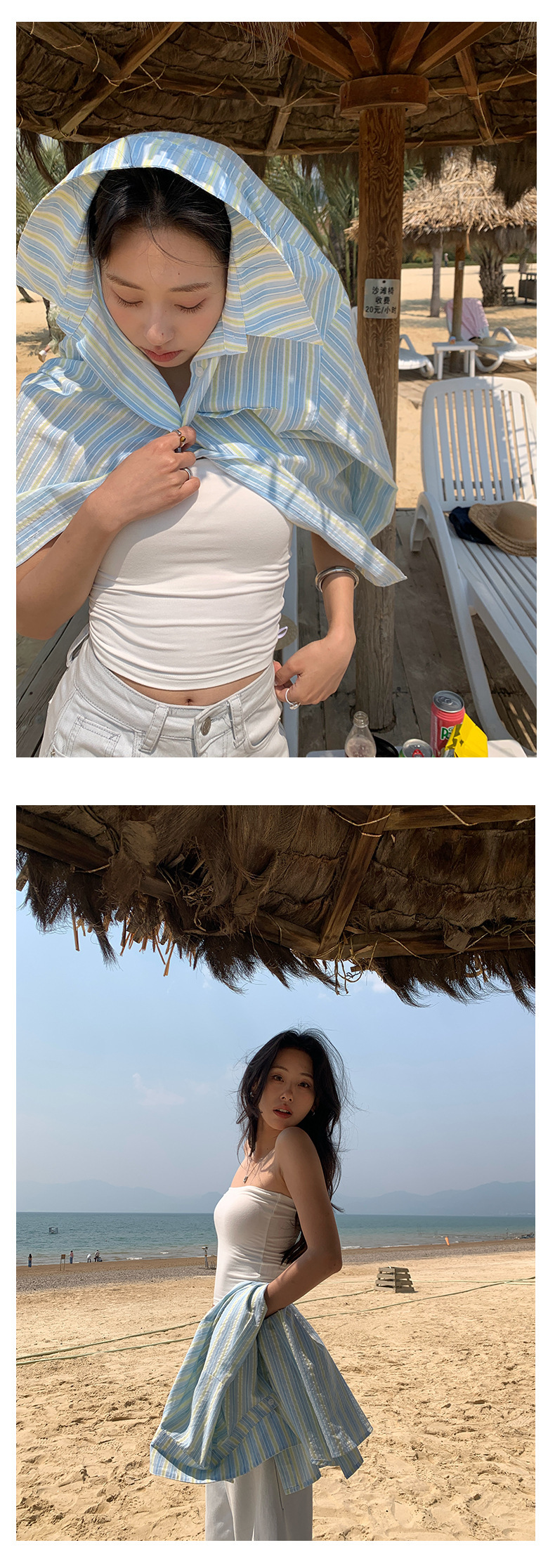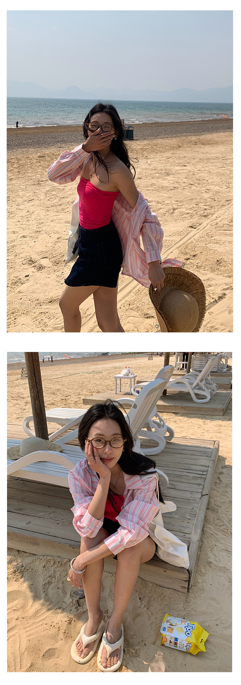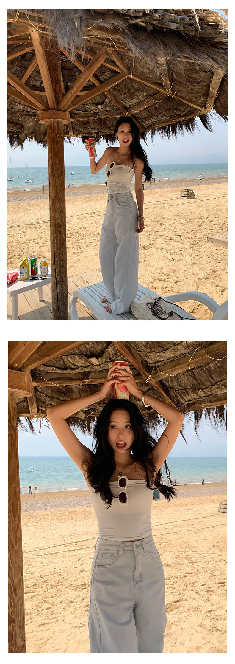 *o-ha-you*【FHZH1CG5020271】簡約純色邊緣壓線無袖短版抹胸2025夏款個性時尚吸睛-7色