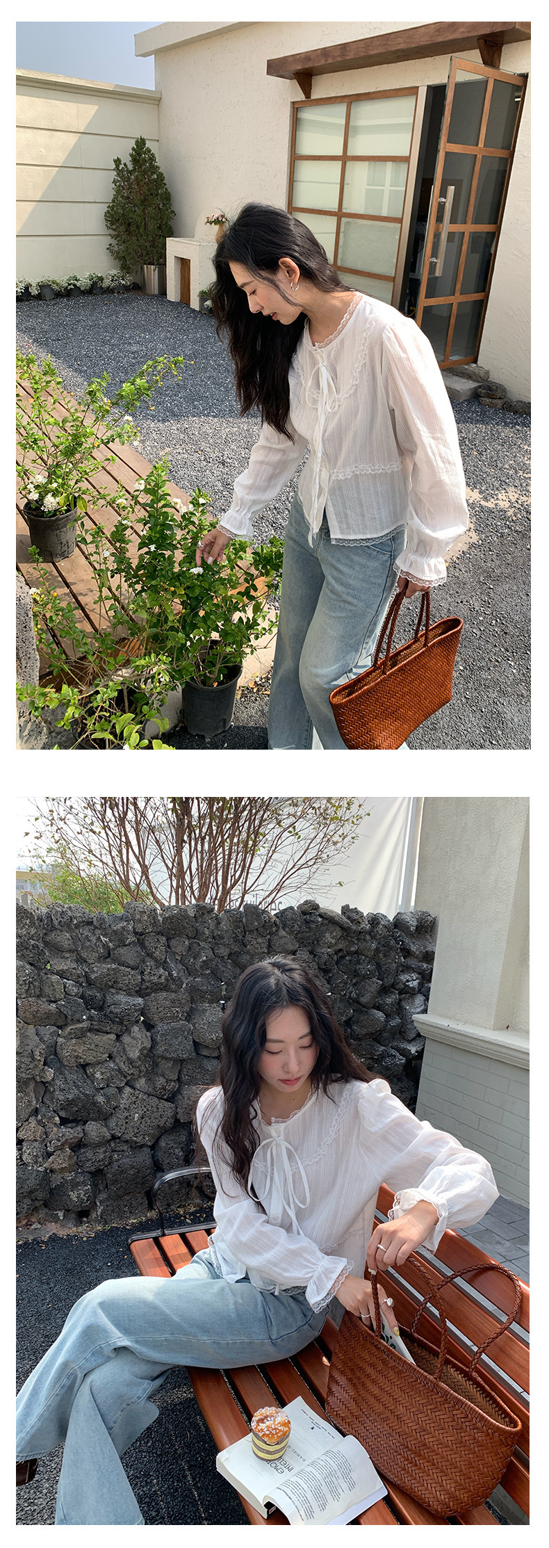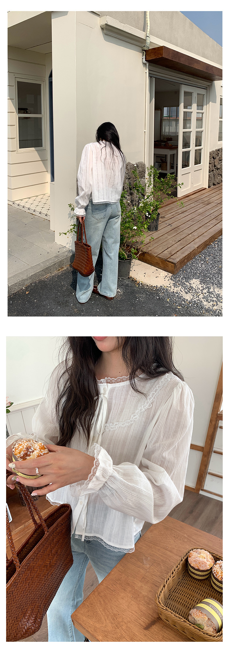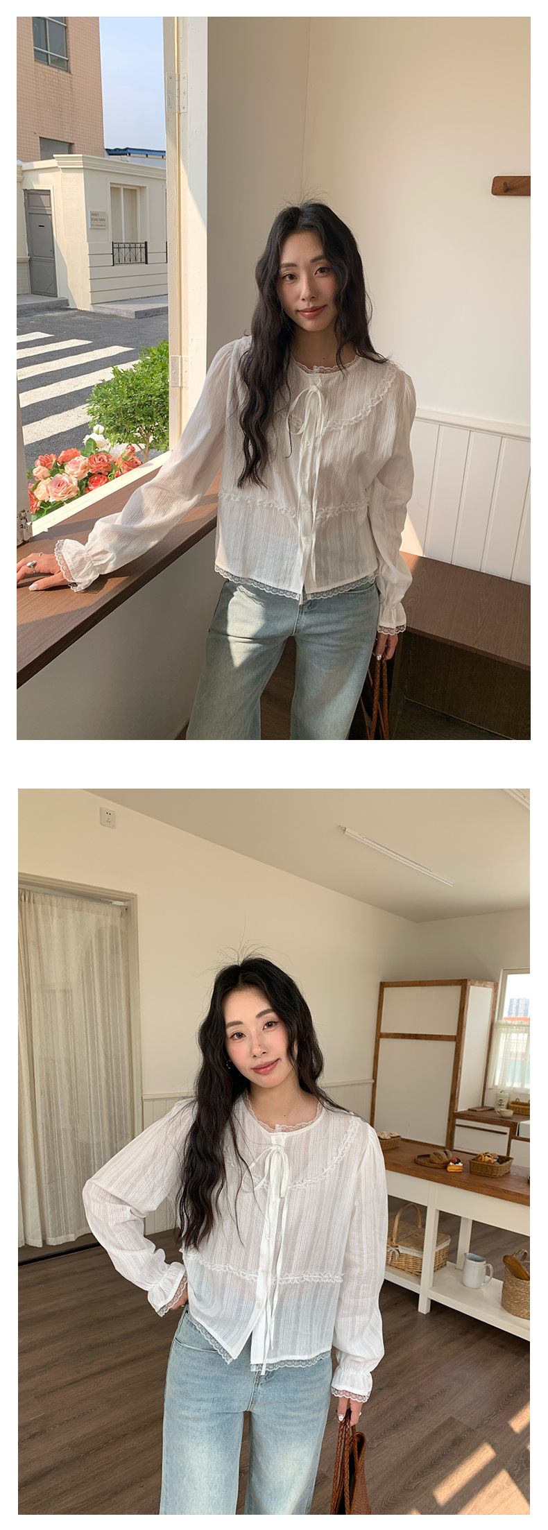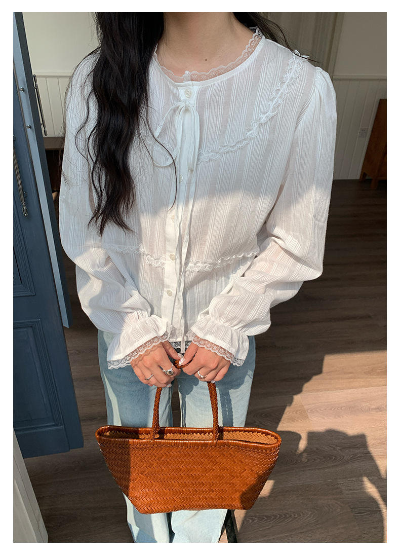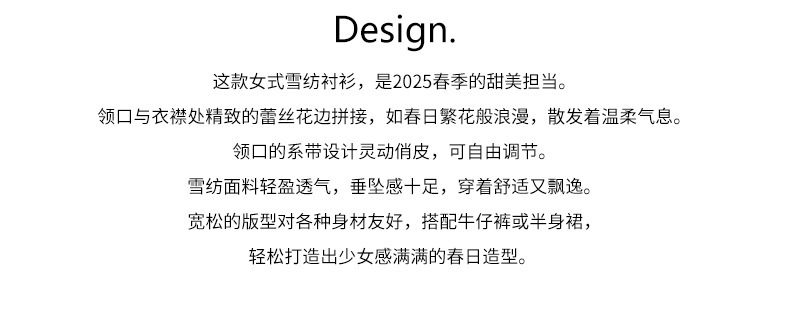 *o-ha-you*【FHZH1CH5010061】蕾絲花邊拼接繫帶雪紡襯衫2025春款甜美浪漫襯衫-如有需要請先諮詢