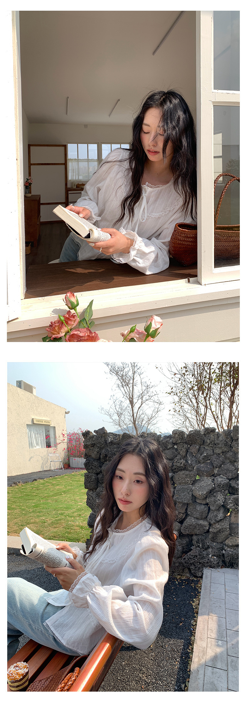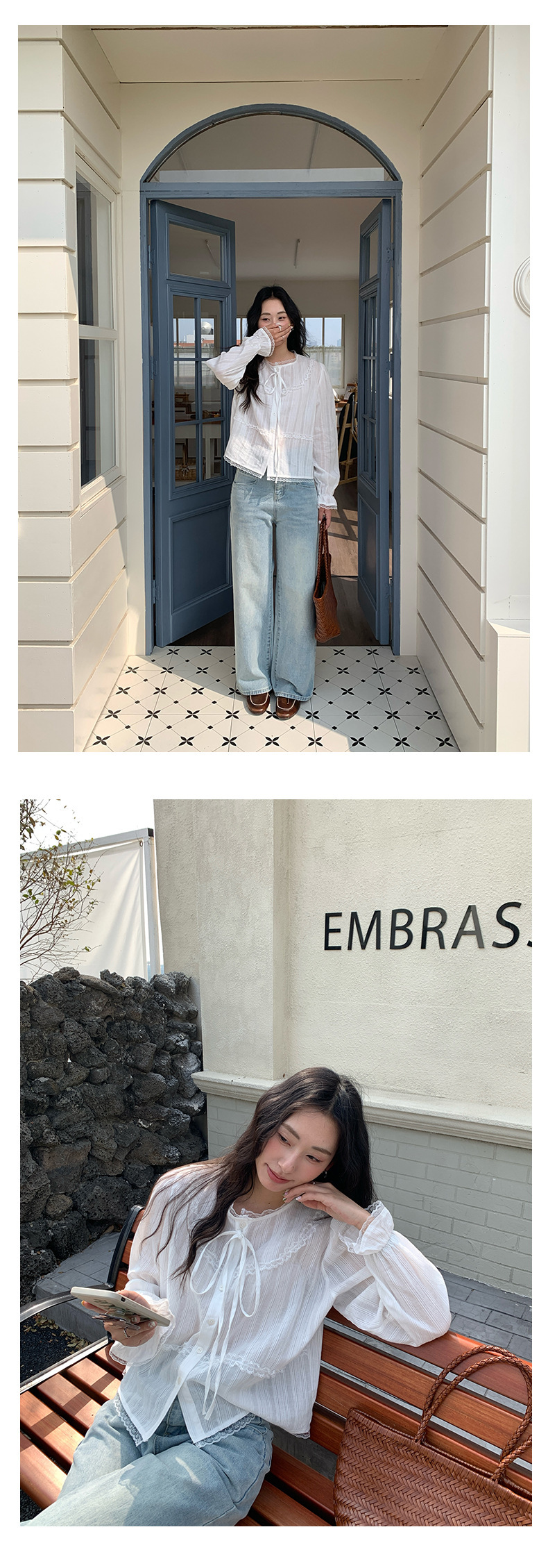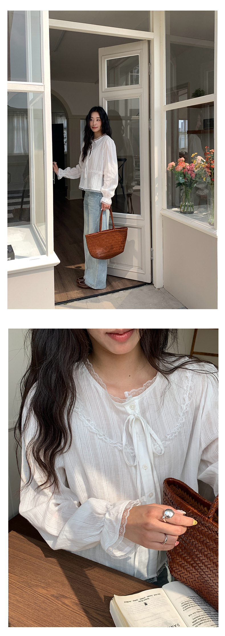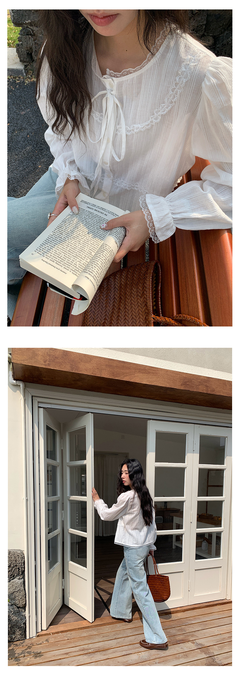 *o-ha-you*【FHZH1CH5010061】蕾絲花邊拼接繫帶雪紡襯衫2025春款甜美浪漫襯衫-如有需要請先諮詢