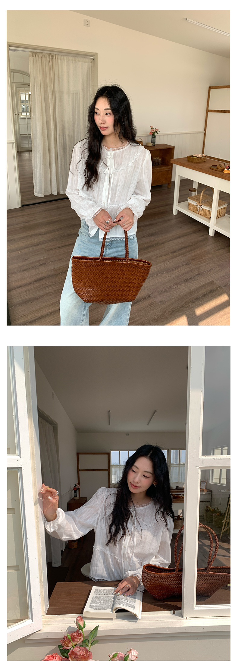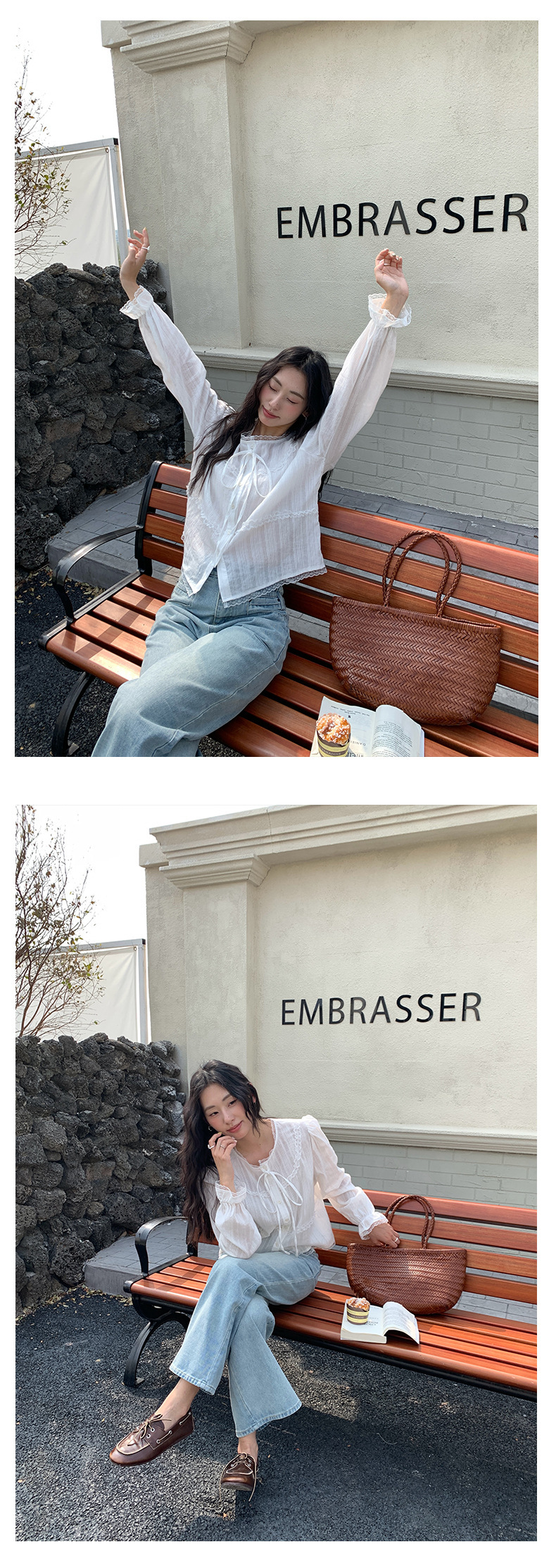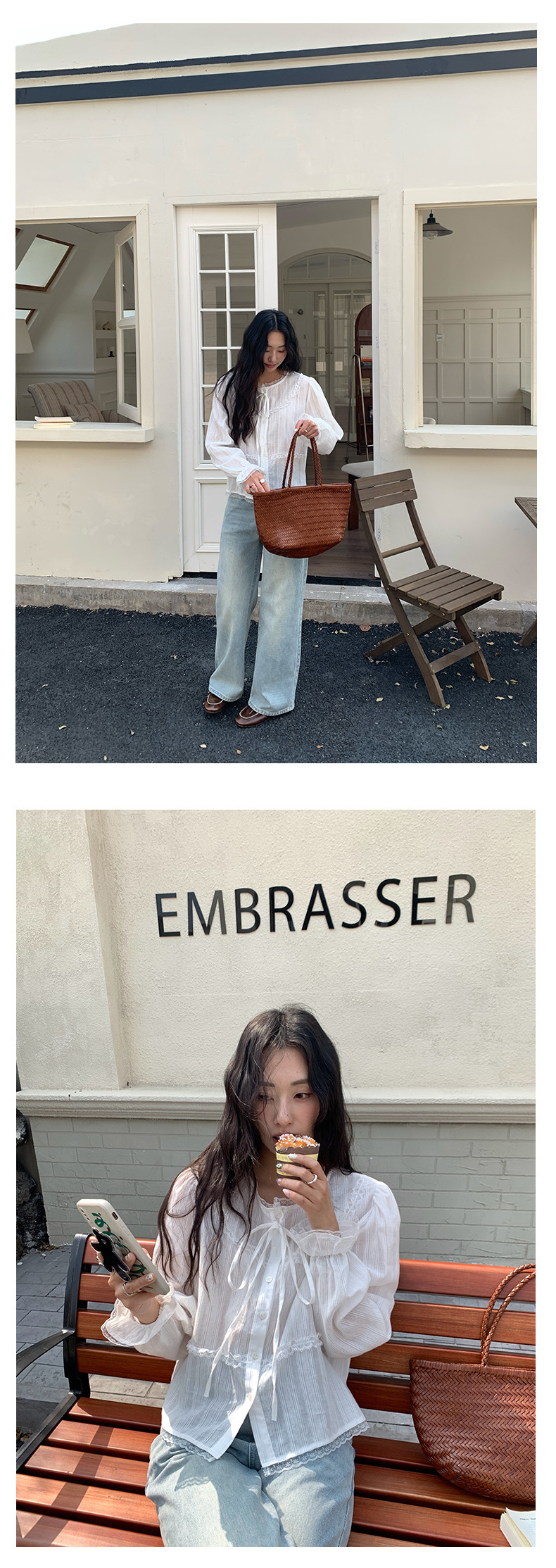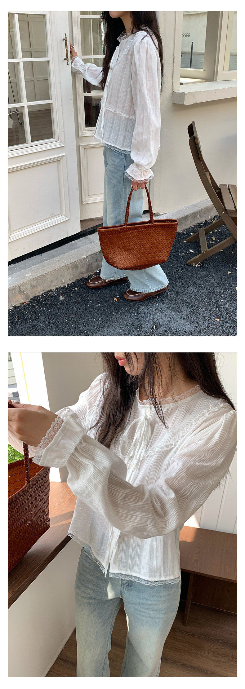 *o-ha-you*【FHZH1CH5010061】蕾絲花邊拼接繫帶雪紡襯衫2025春款甜美浪漫襯衫-如有需要請先諮詢