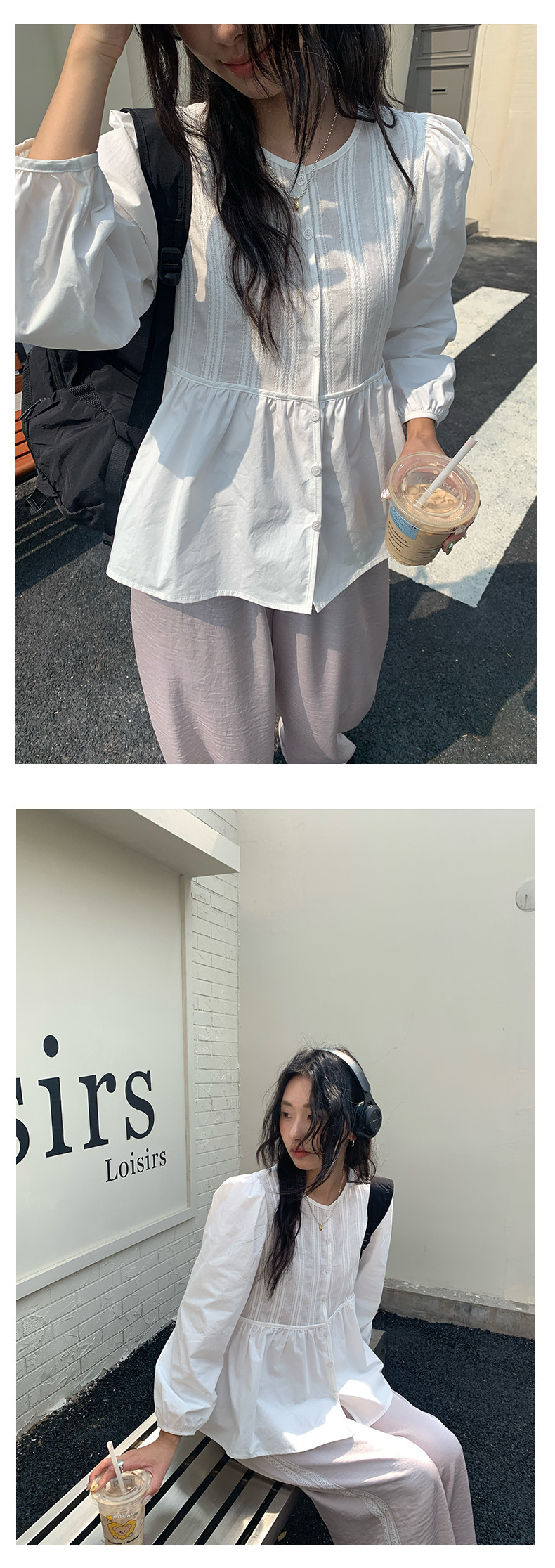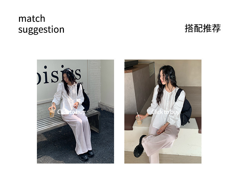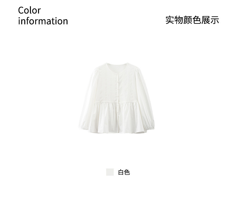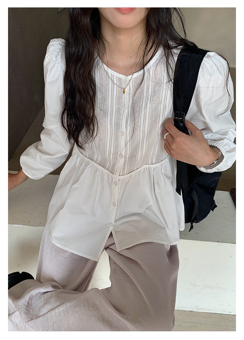 *o-ha-you*【FHZH1CH5010145】領口褶皺款燈籠袖白色襯衫2025春季甜美清新上衣-如有需要請先諮詢