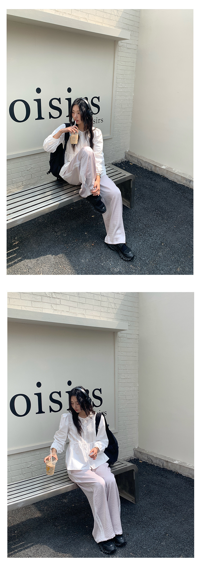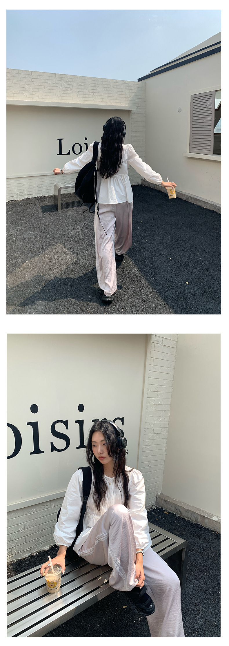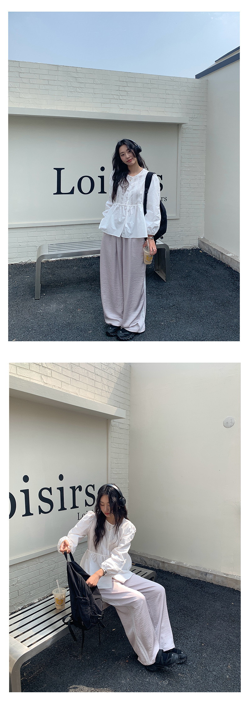 *o-ha-you*【FHZH1CH5010145】領口褶皺款燈籠袖白色襯衫2025春季甜美清新上衣-如有需要請先諮詢