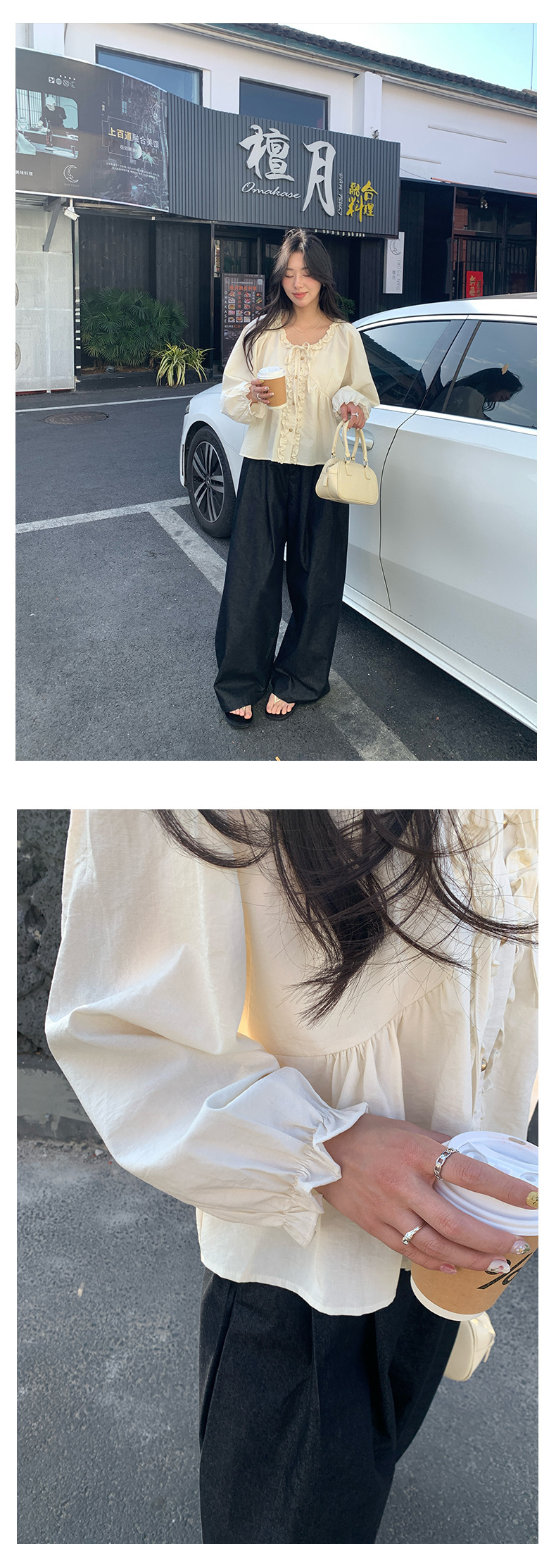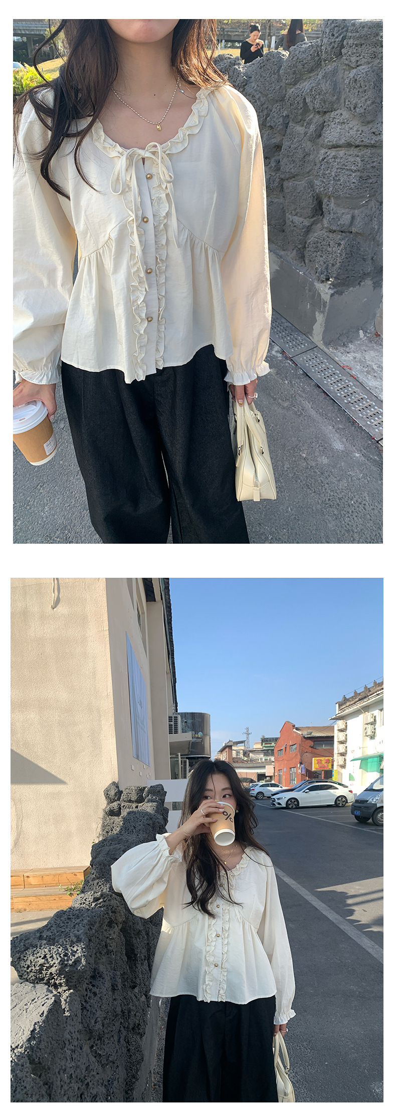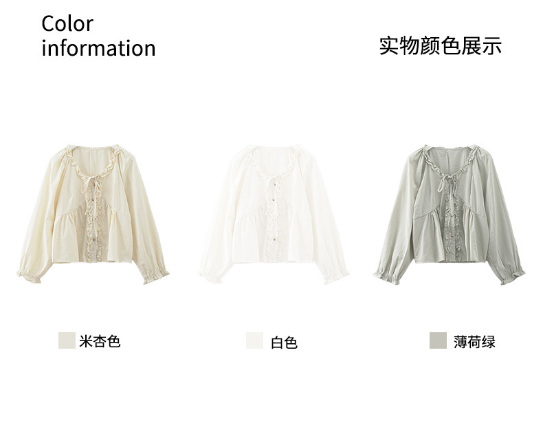 *o-ha-you*【FHZH1CH5010189】甜美風木耳花邊繫帶襯衫2025春季韓版休閒小開襟衫-3色-如有需要請先諮詢