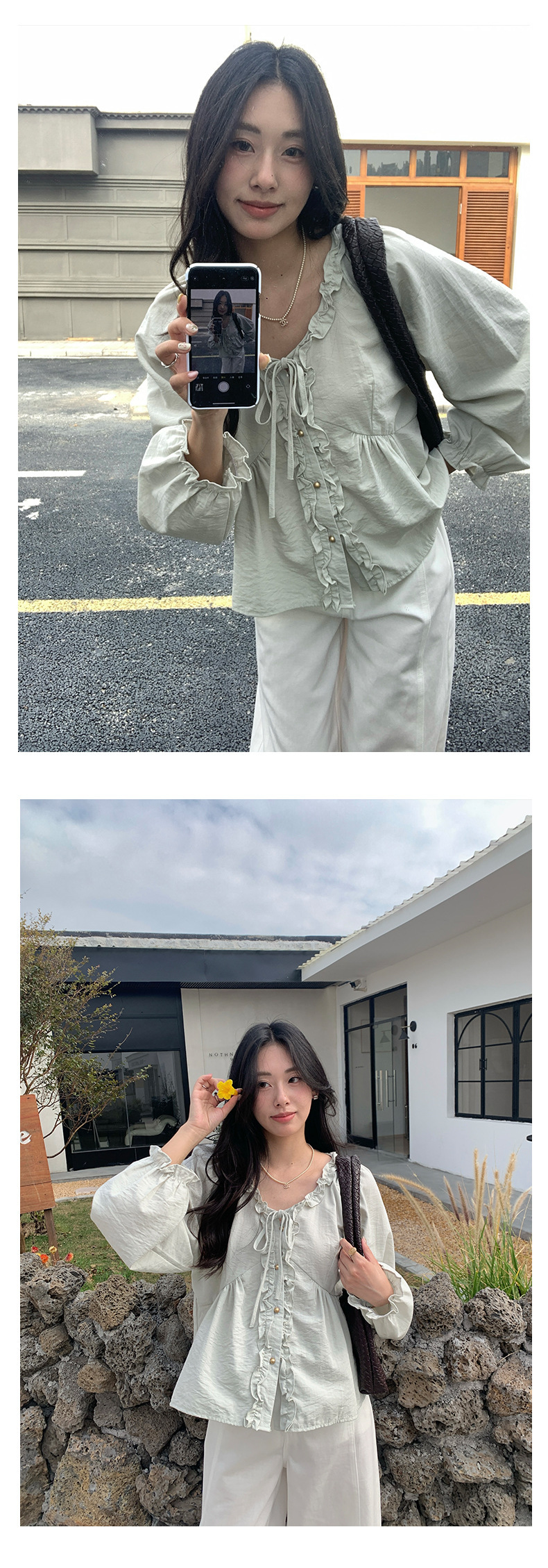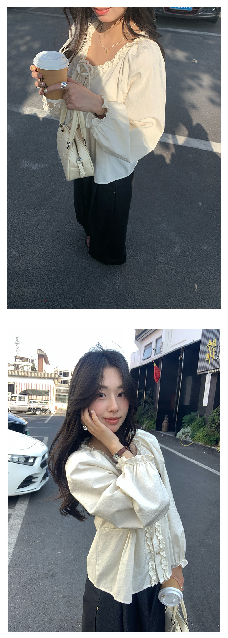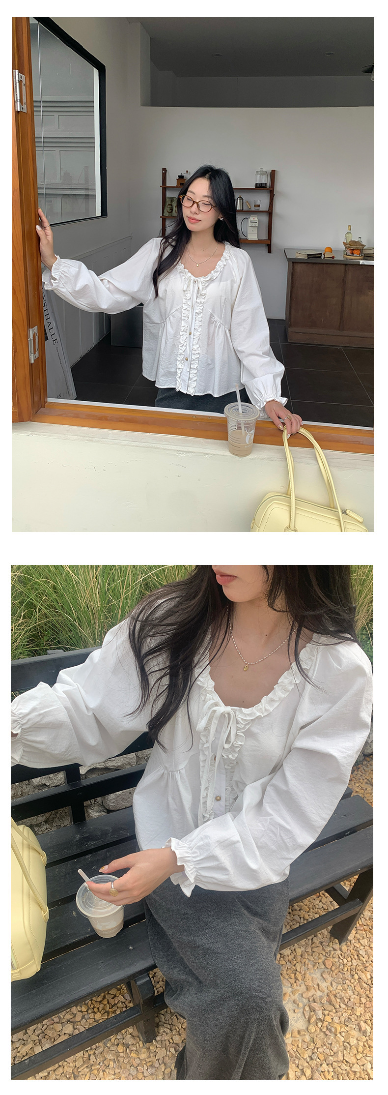 *o-ha-you*【FHZH1CH5010189】甜美風木耳花邊繫帶襯衫2025春季韓版休閒小開襟衫-3色-如有需要請先諮詢