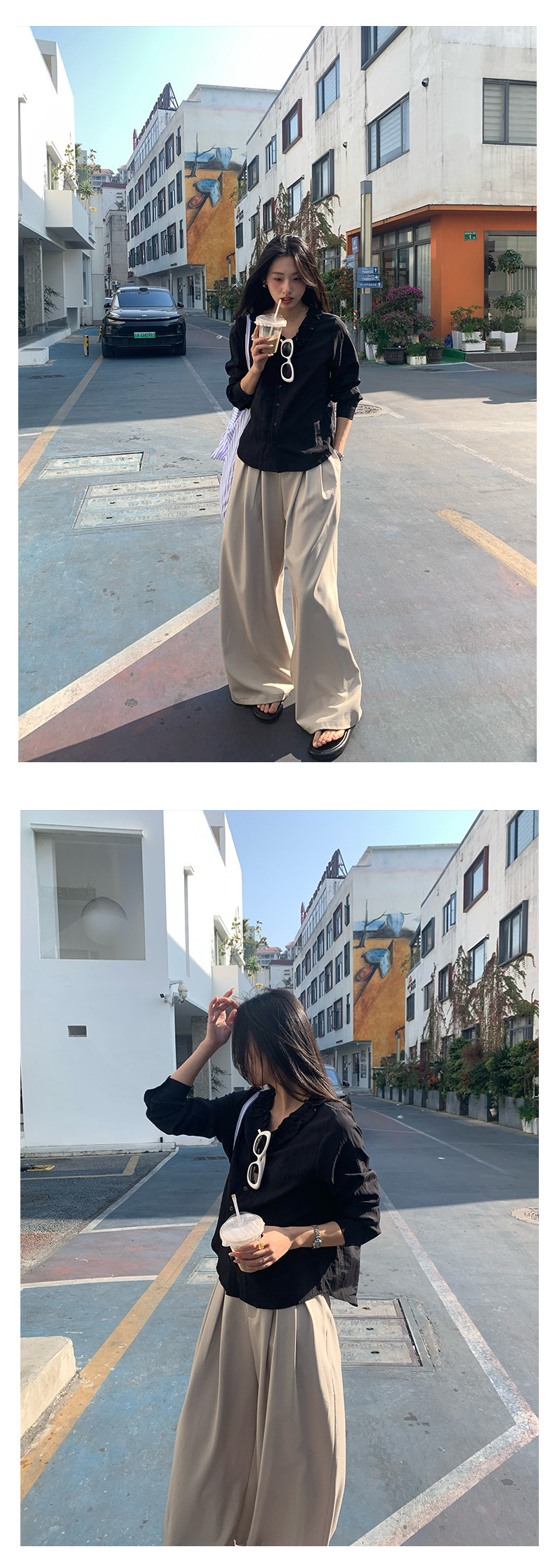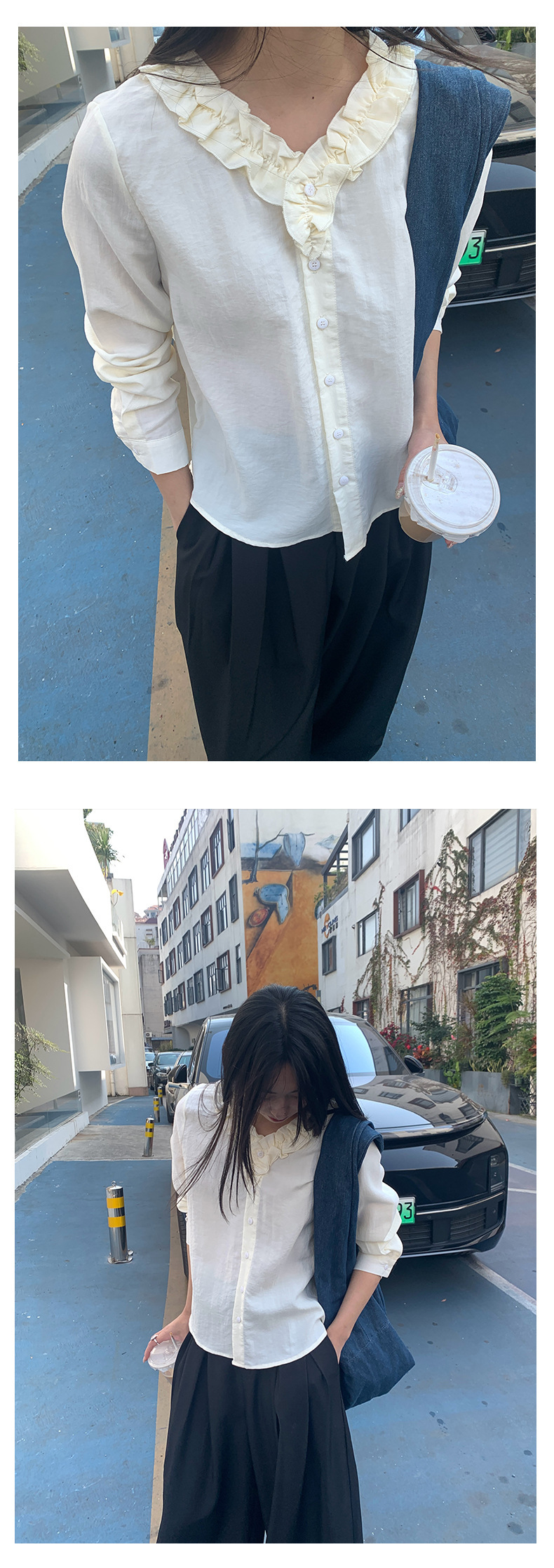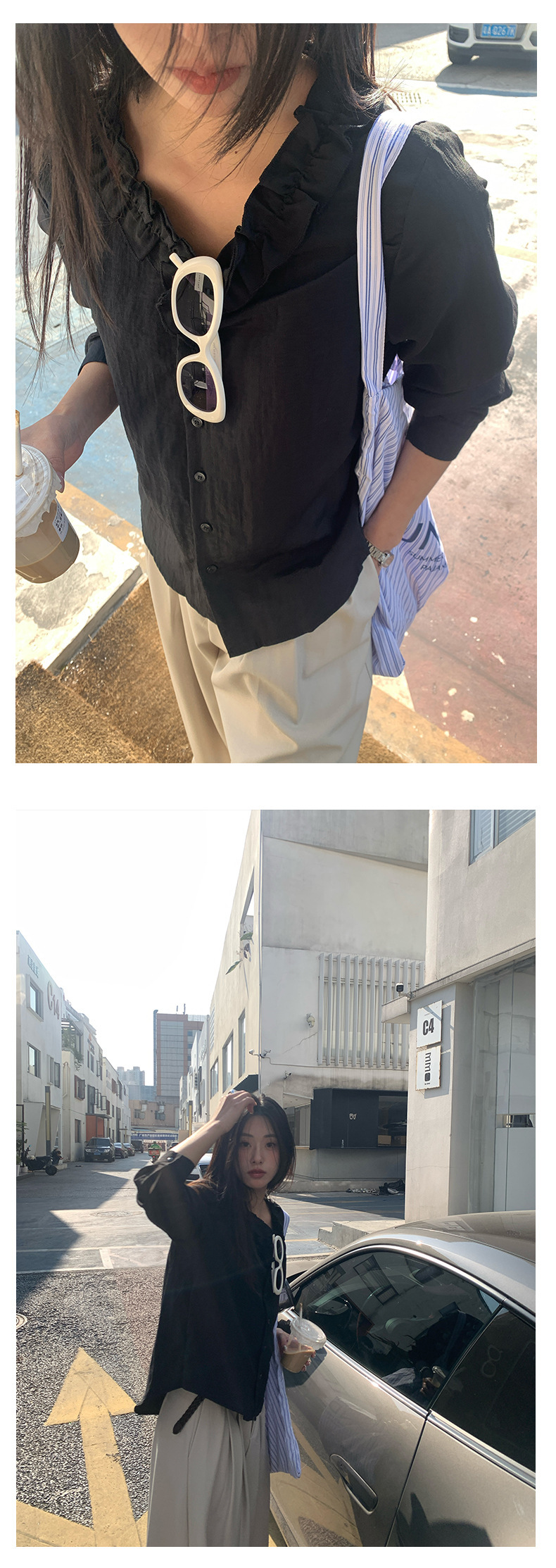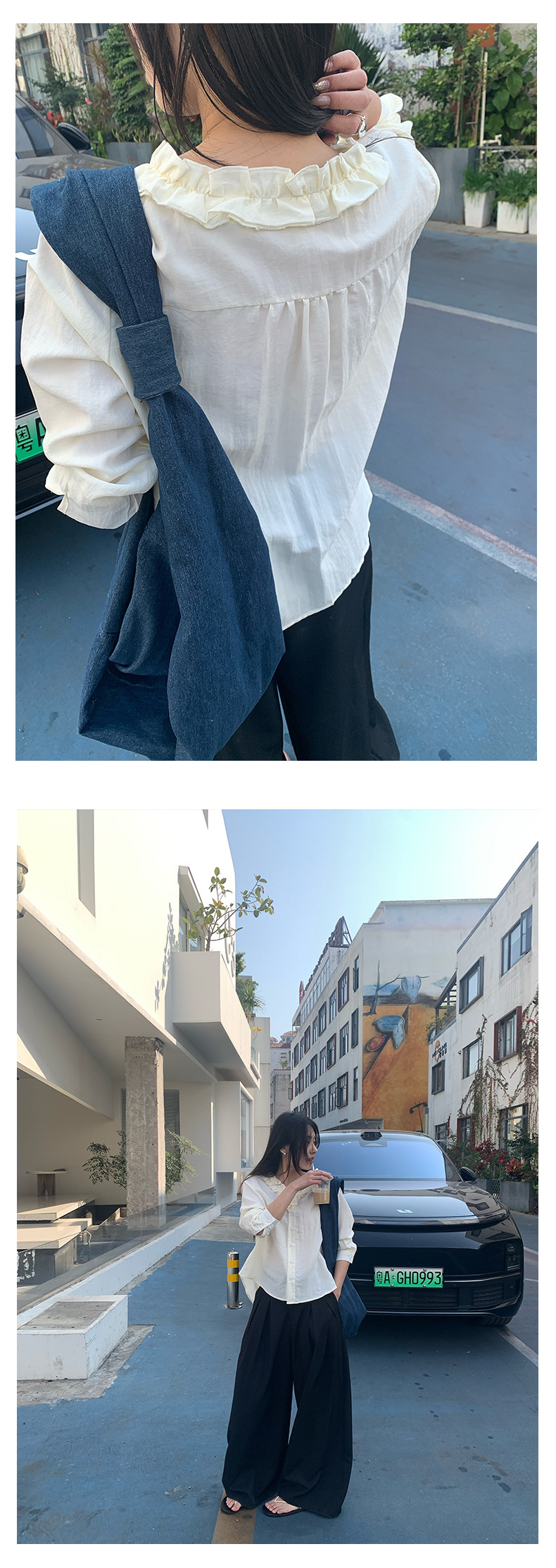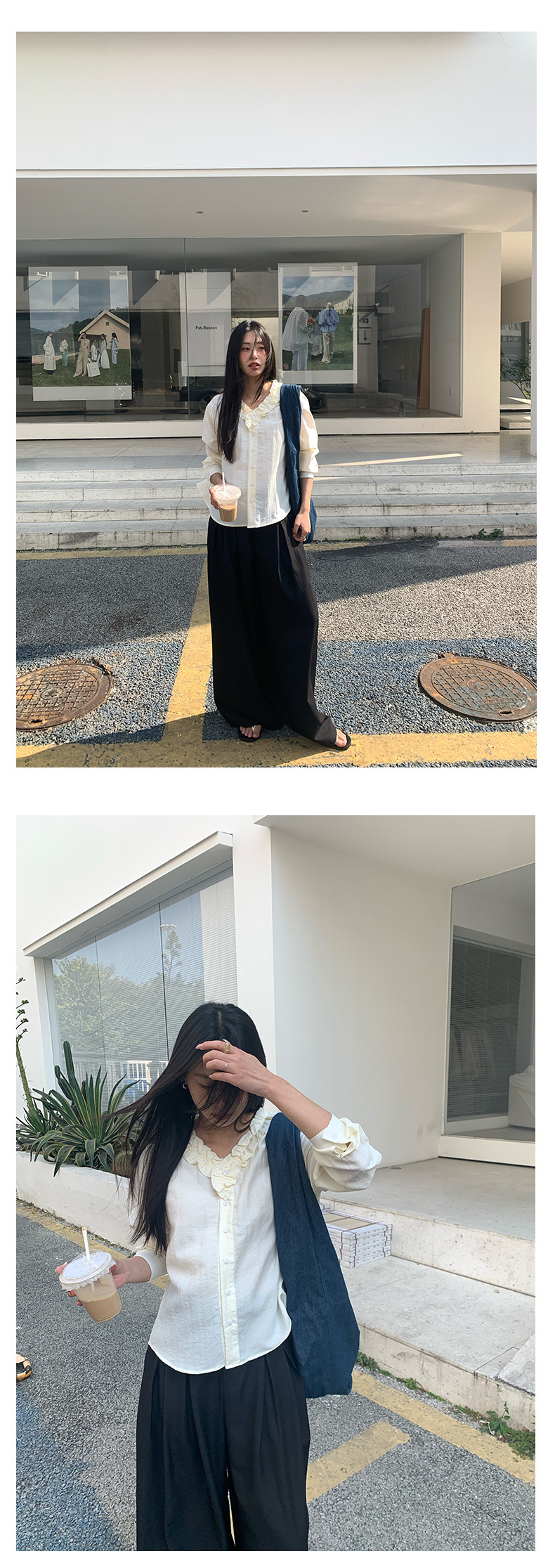 *o-ha-you*【FHZH1CH5010193】法式小清新蕾絲V領長袖襯衫2025春韓版襯衫開襟衫-3色-如有需要請先諮詢