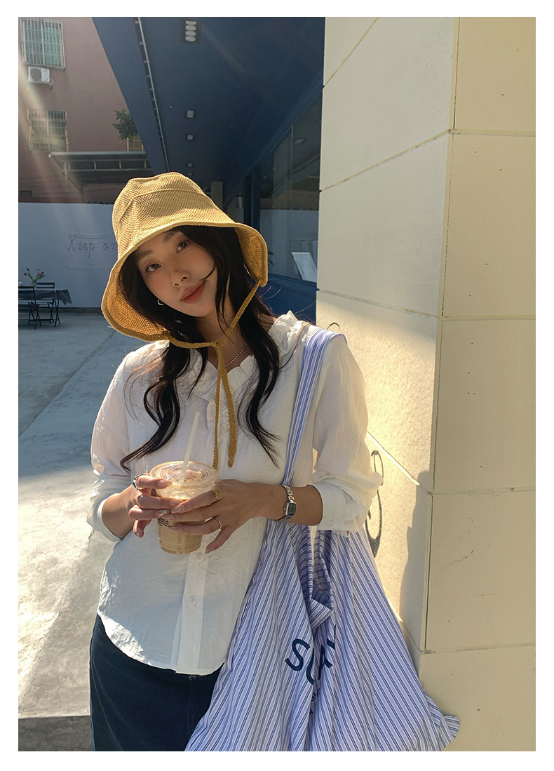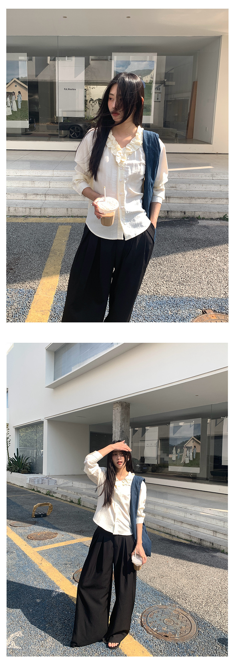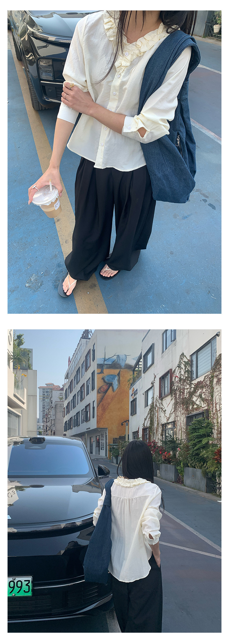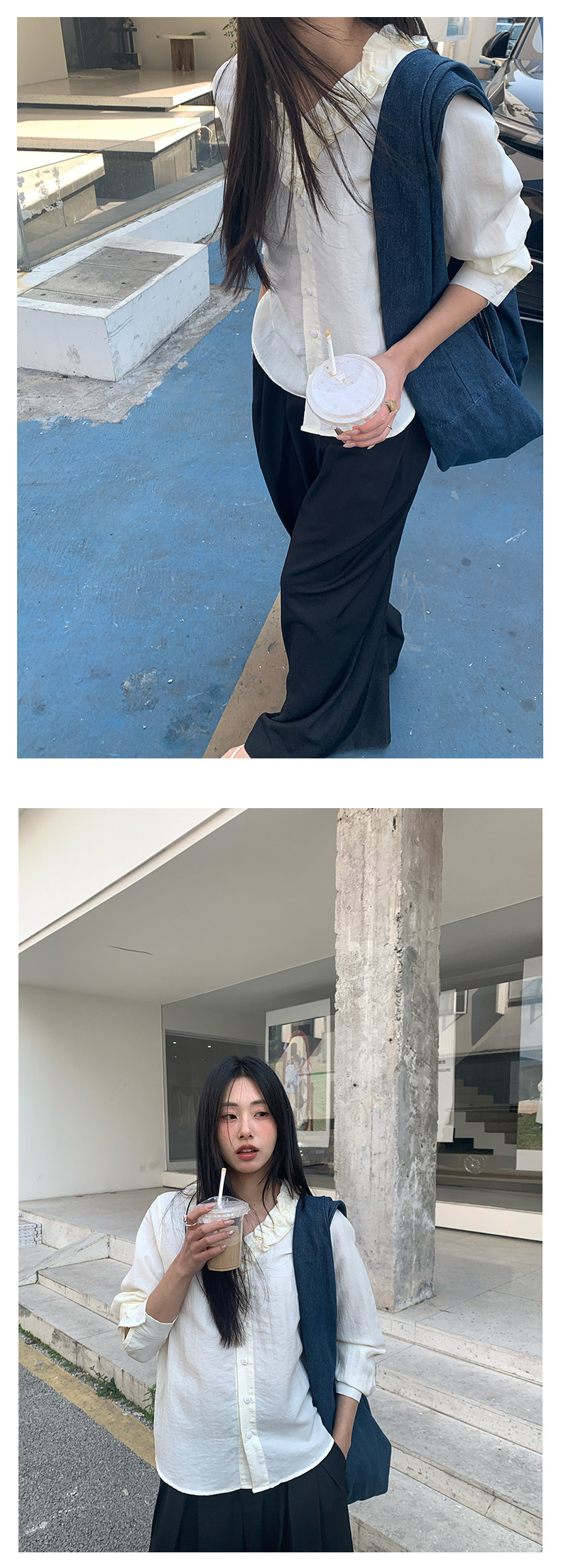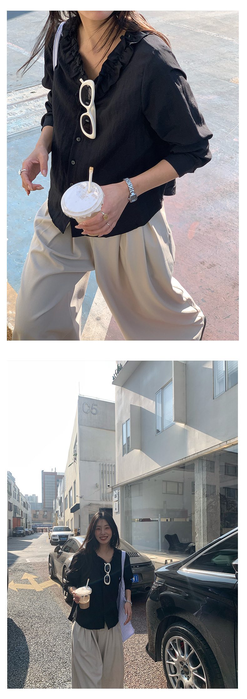 *o-ha-you*【FHZH1CH5010193】法式小清新蕾絲V領長袖襯衫2025春韓版襯衫開襟衫-3色-如有需要請先諮詢