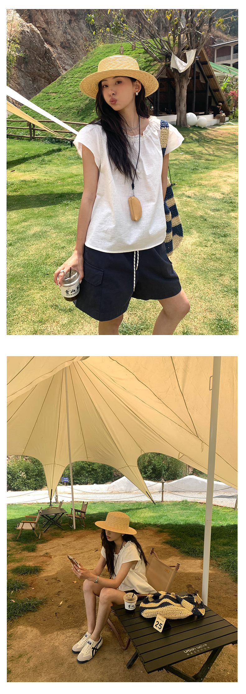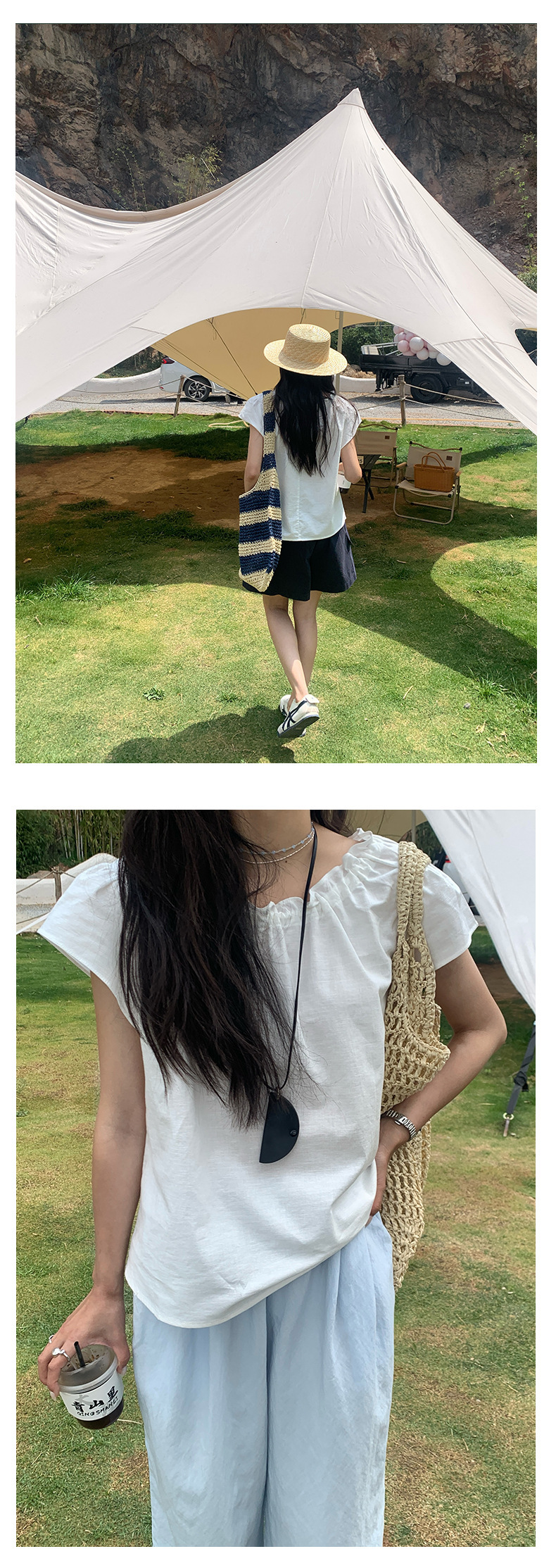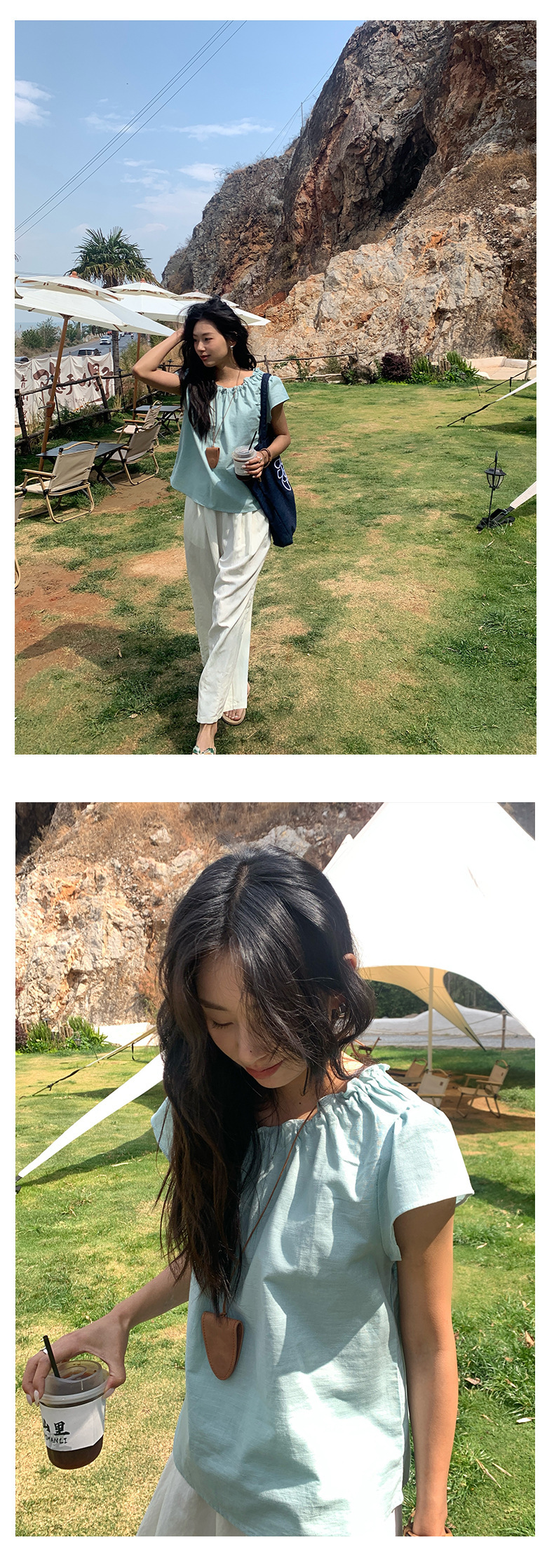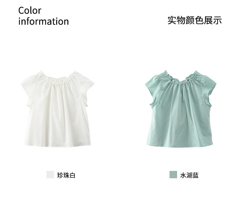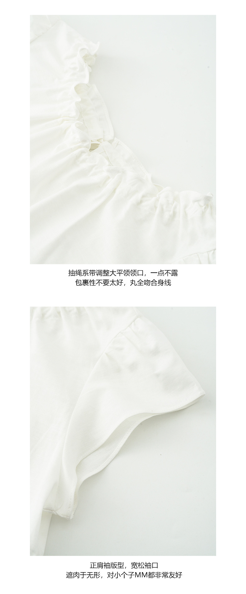 *o-ha-you*【FHZH1CH5020369】荷葉邊領口精緻繫帶寬鬆版短袖上衣2025夏款甜美清新-2色-如有需要請先諮詢