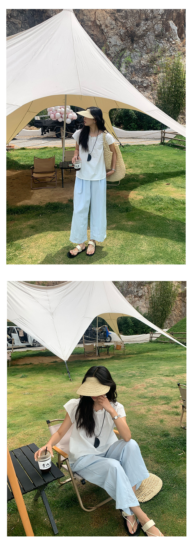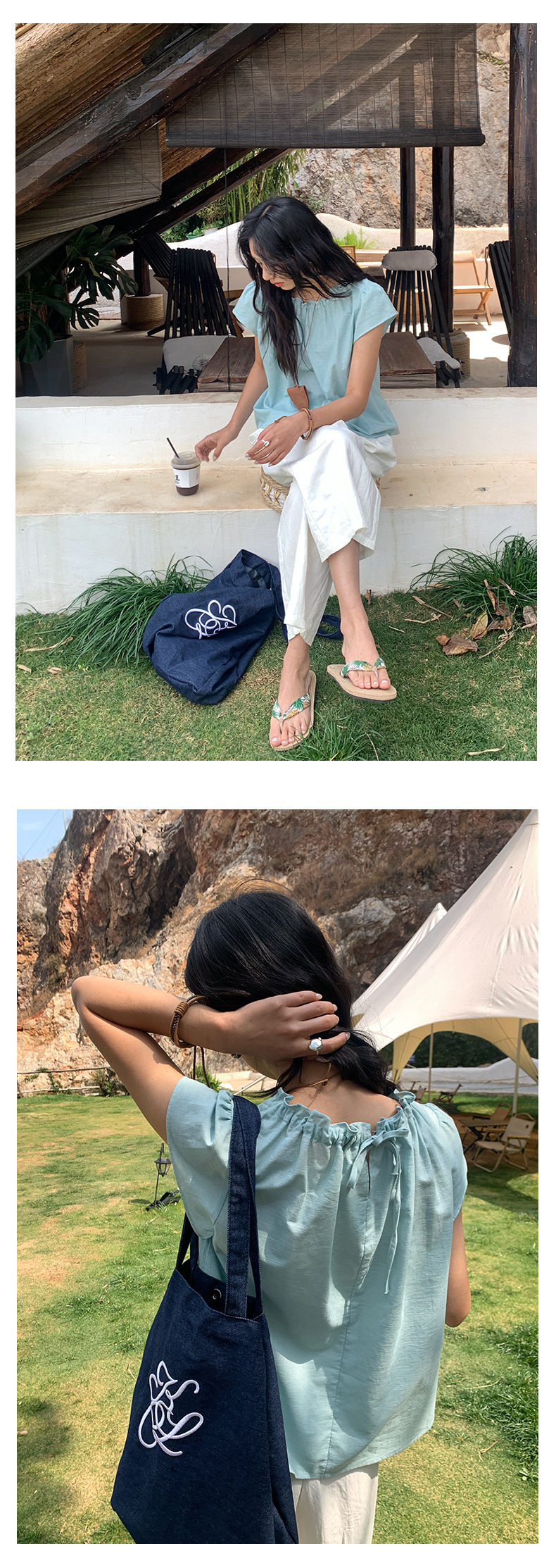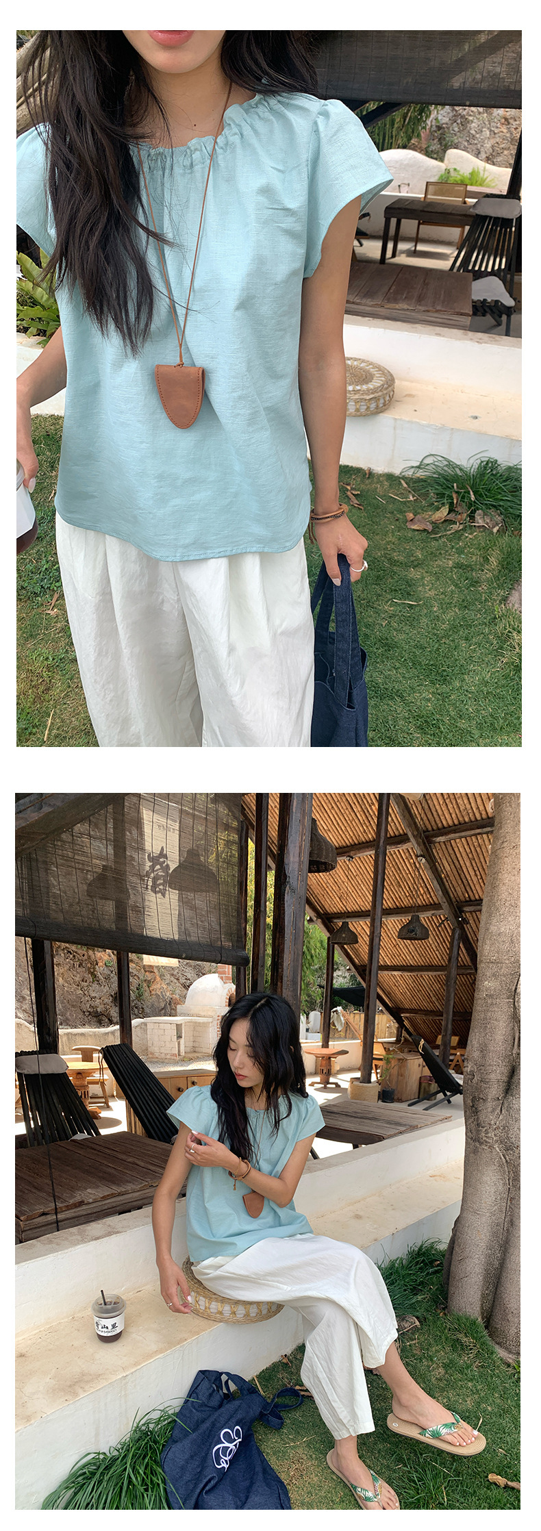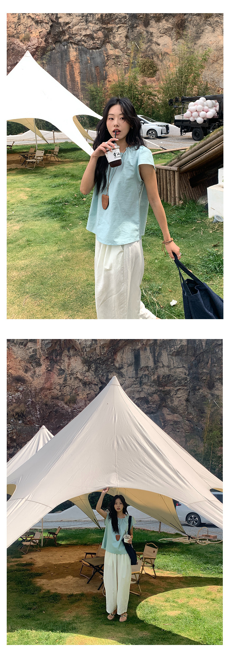 *o-ha-you*【FHZH1CH5020369】荷葉邊領口精緻繫帶寬鬆版短袖上衣2025夏款甜美清新-2色-如有需要請先諮詢
