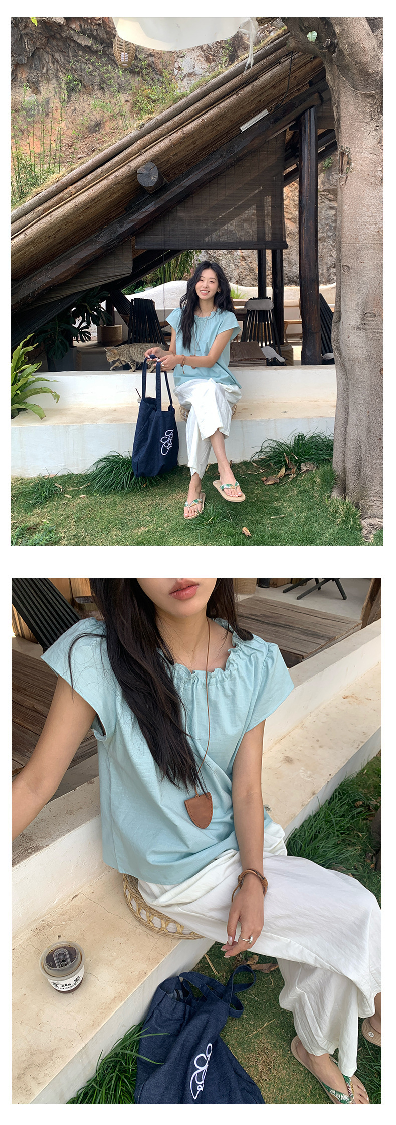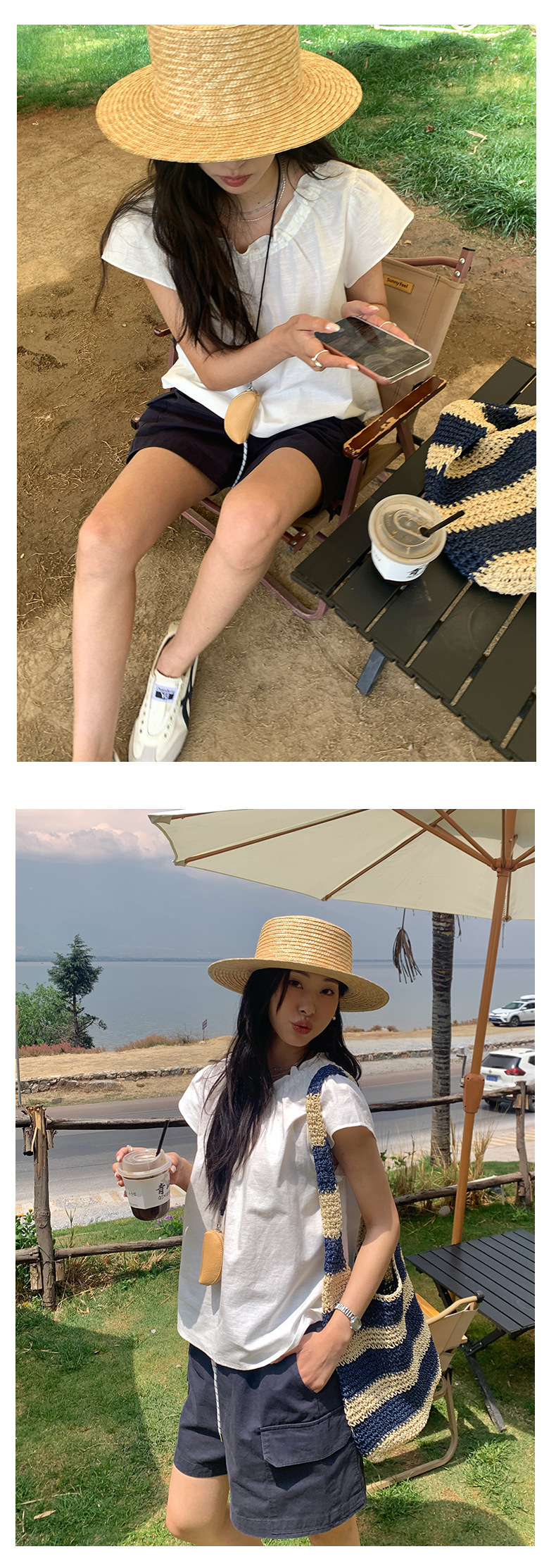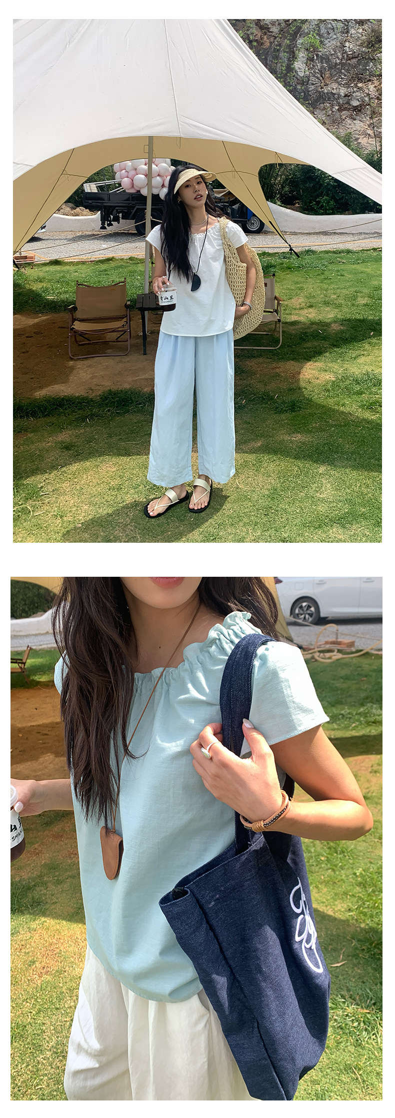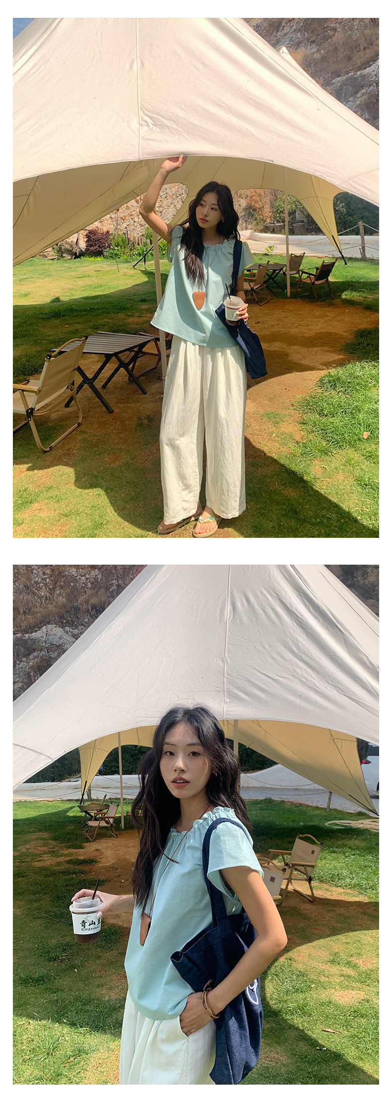 *o-ha-you*【FHZH1CH5020369】荷葉邊領口精緻繫帶寬鬆版短袖上衣2025夏款甜美清新-2色-如有需要請先諮詢