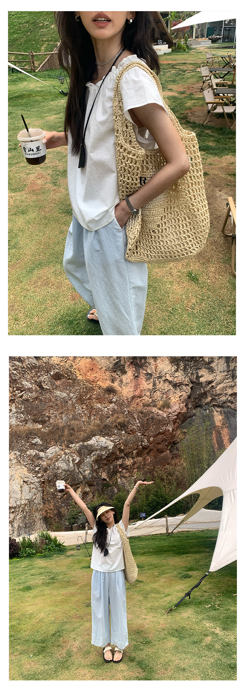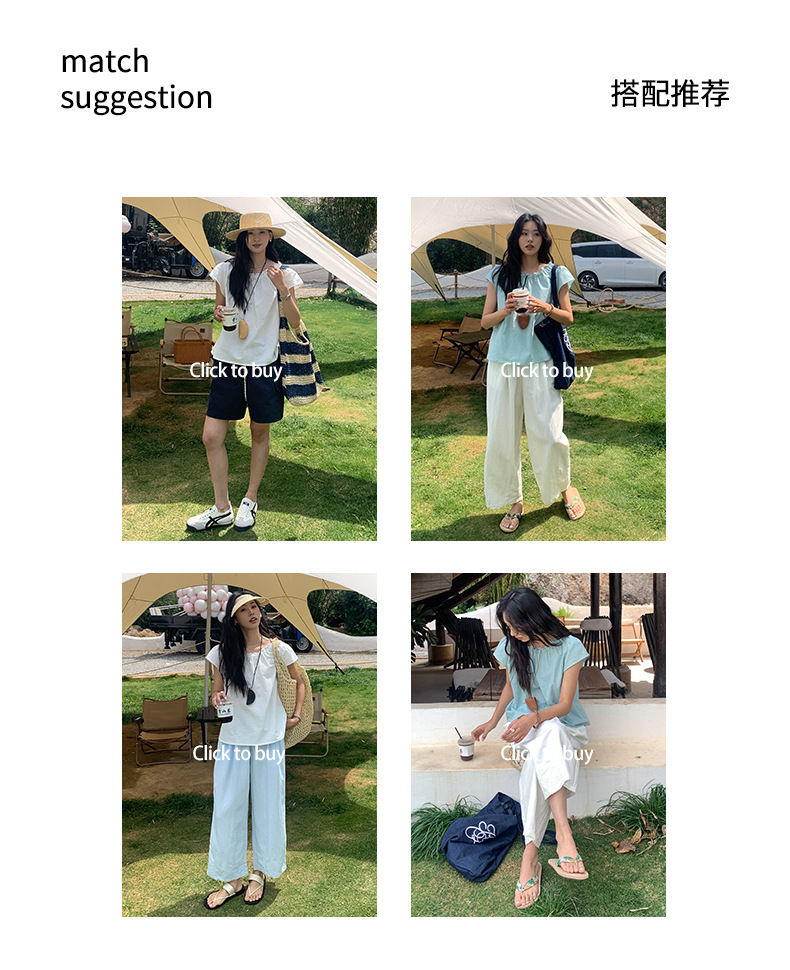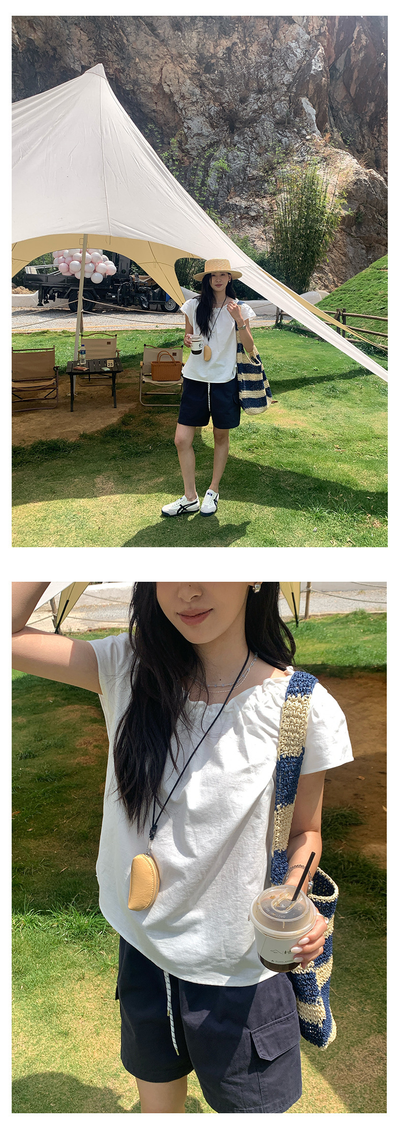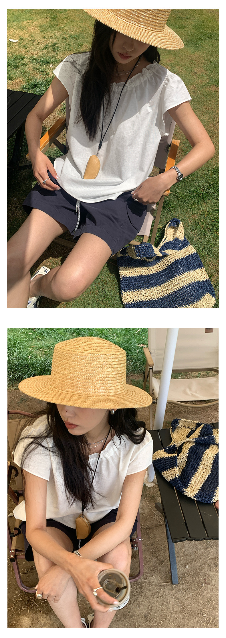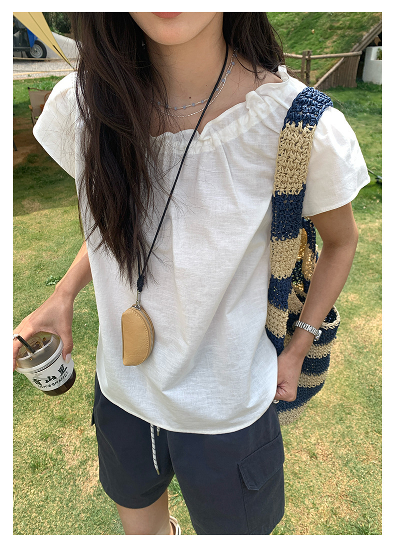 *o-ha-you*【FHZH1CH5020369】荷葉邊領口精緻繫帶寬鬆版短袖上衣2025夏款甜美清新-2色-如有需要請先諮詢