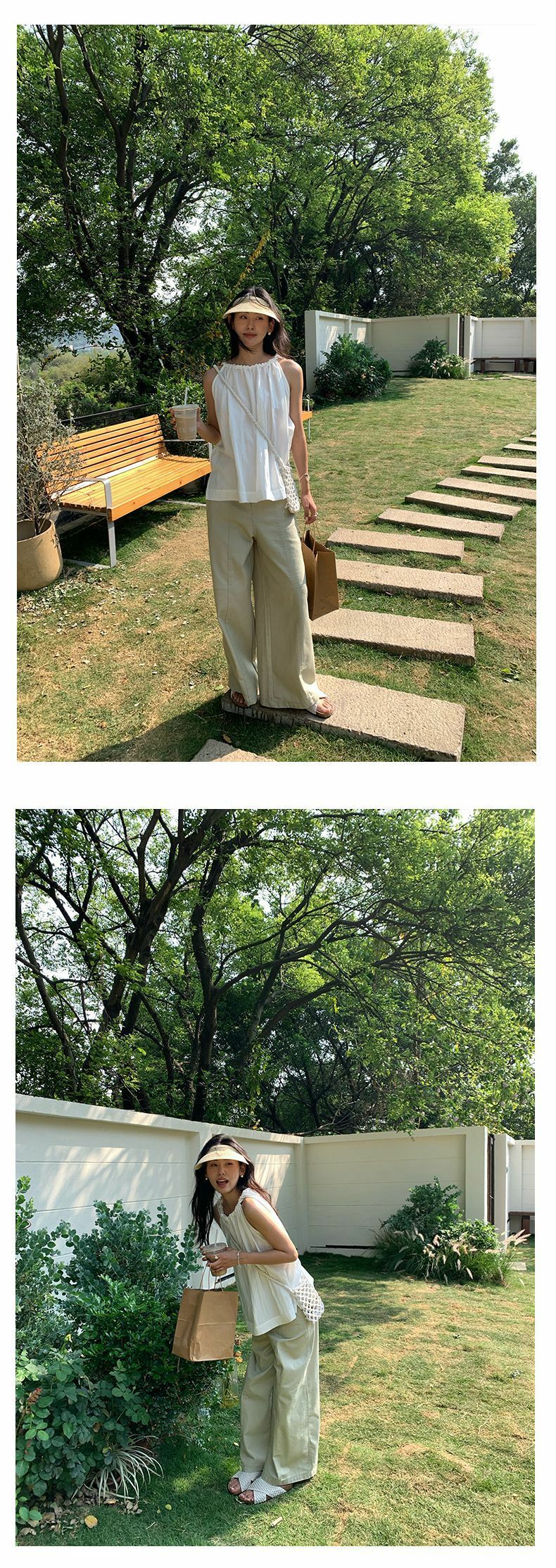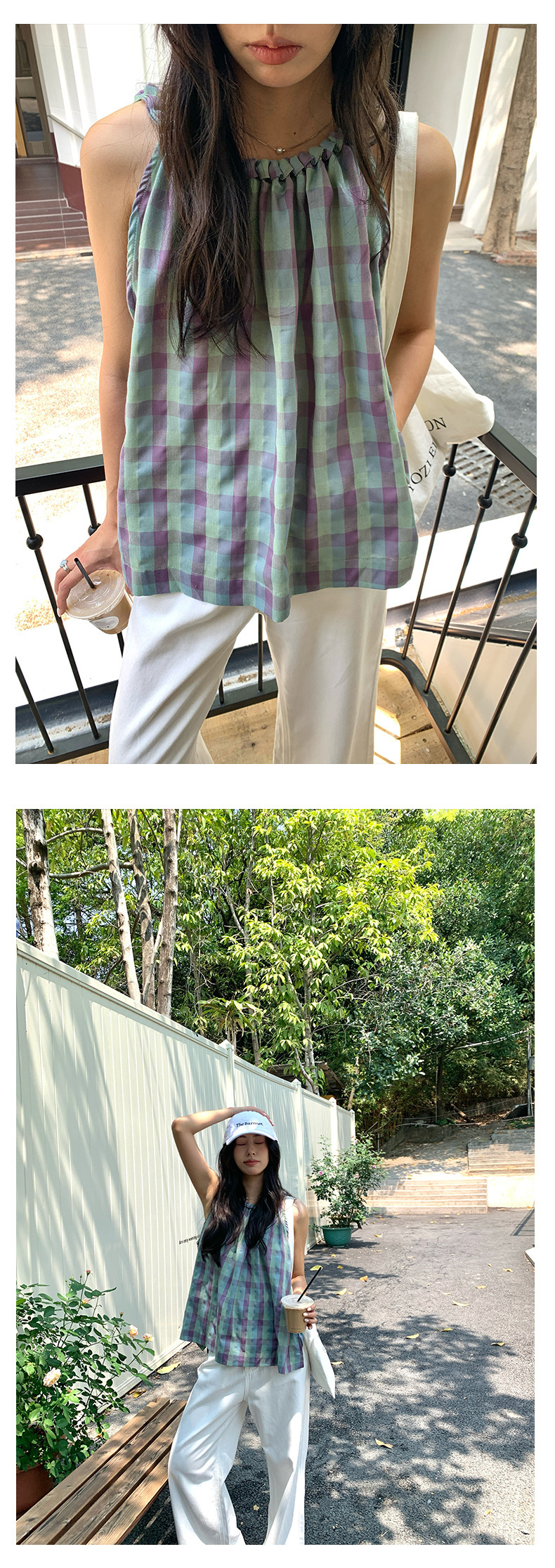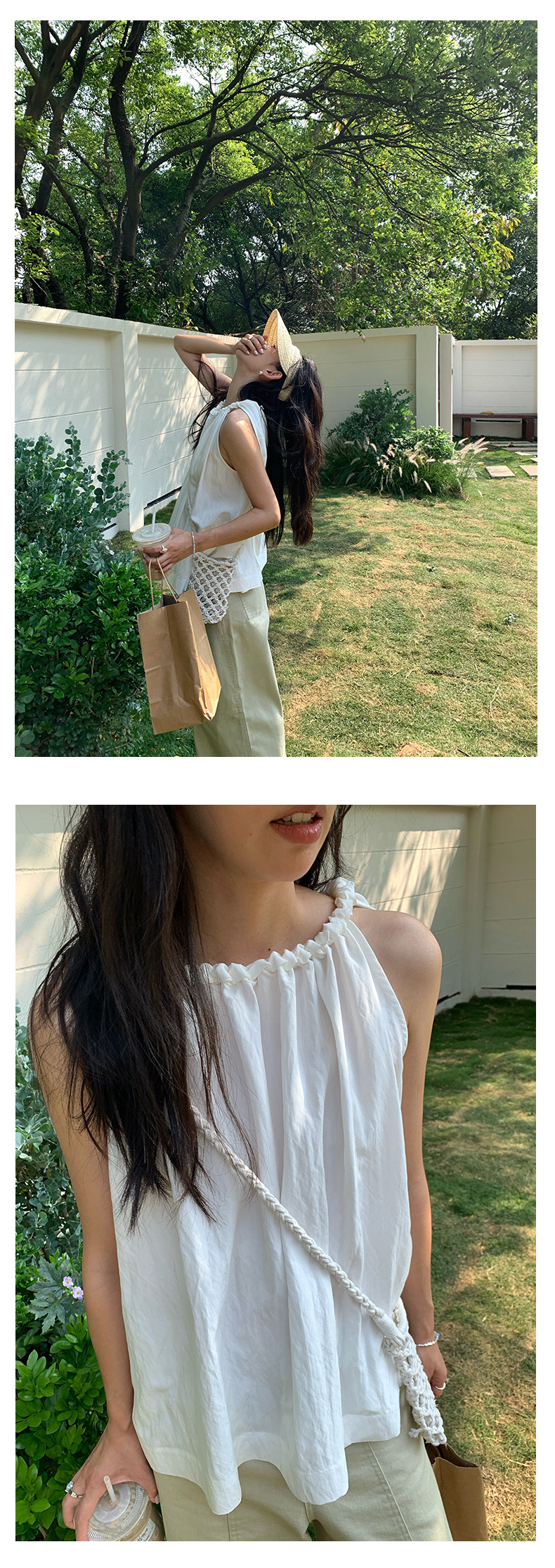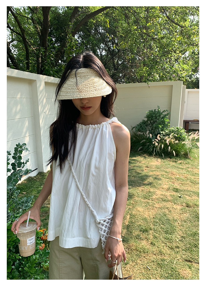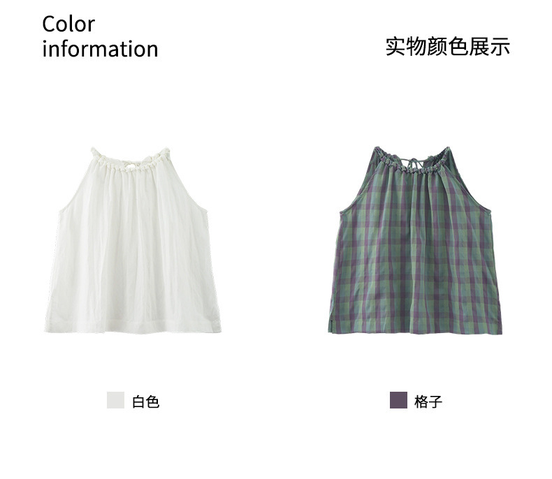 *o-ha-you*【FHZH1CH5020405】領口褶皺後背繫帶寬鬆無袖襯衫2025夏款清新甜美上衣背心-2色-如有需要請先諮詢