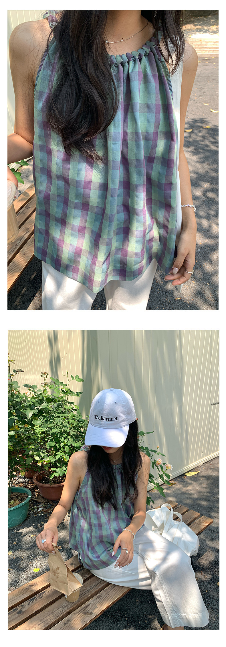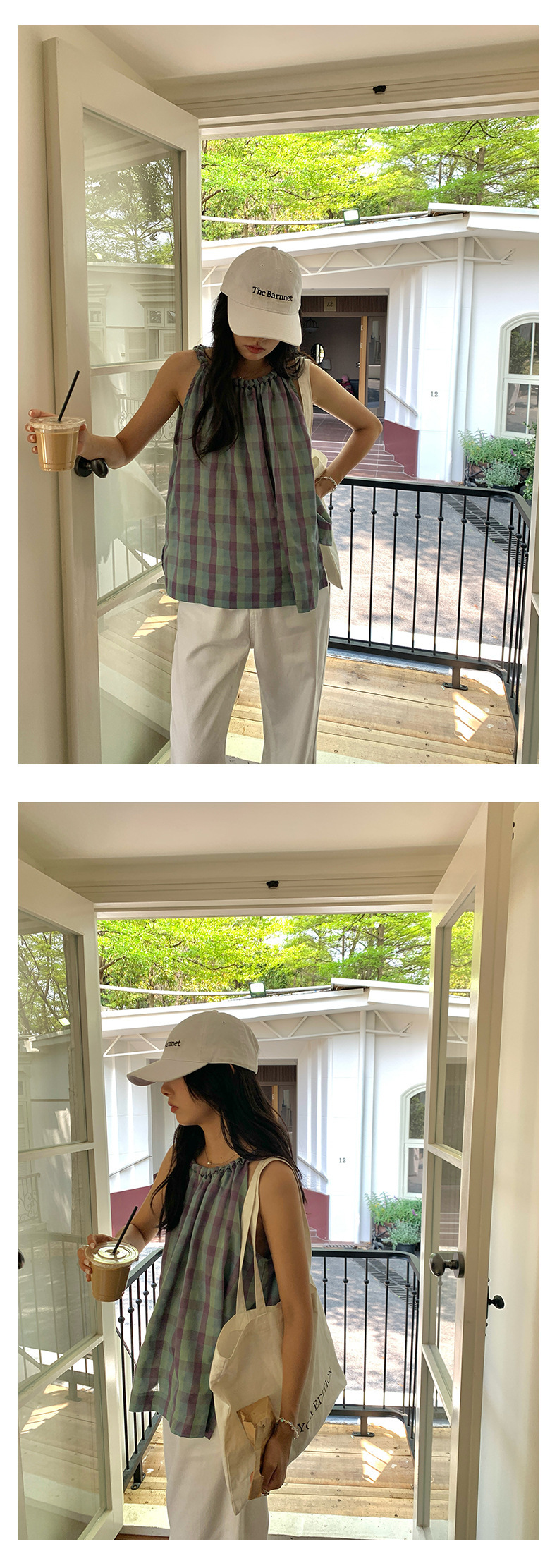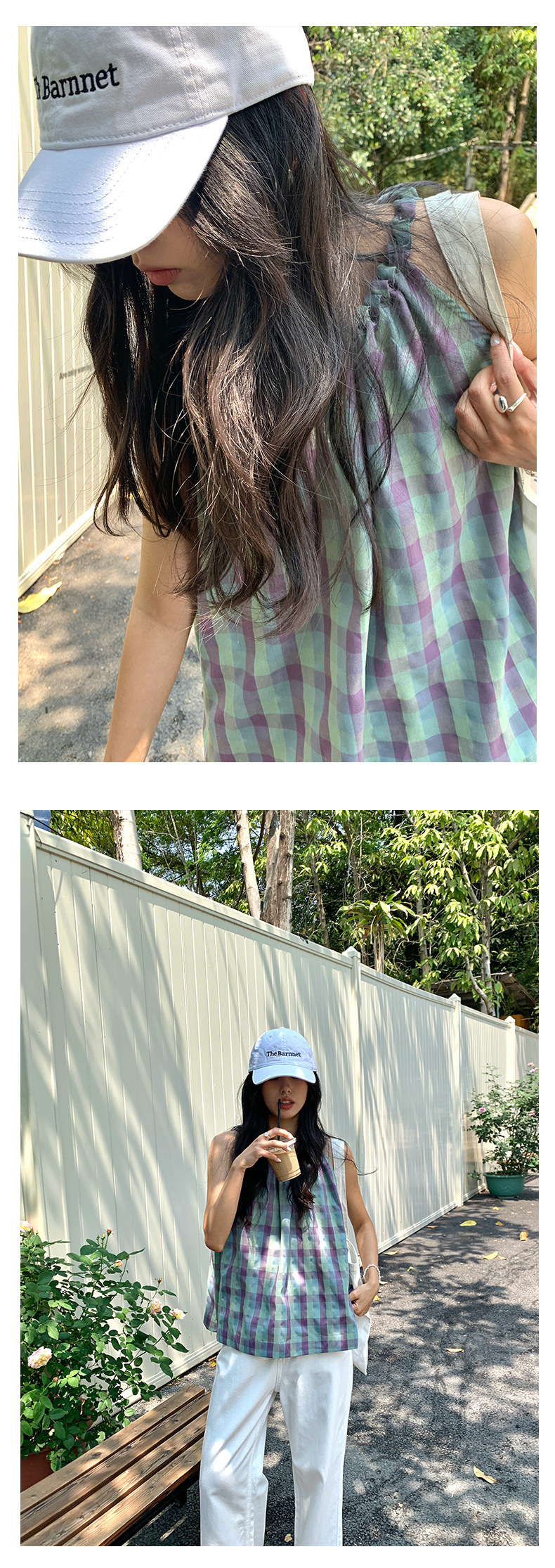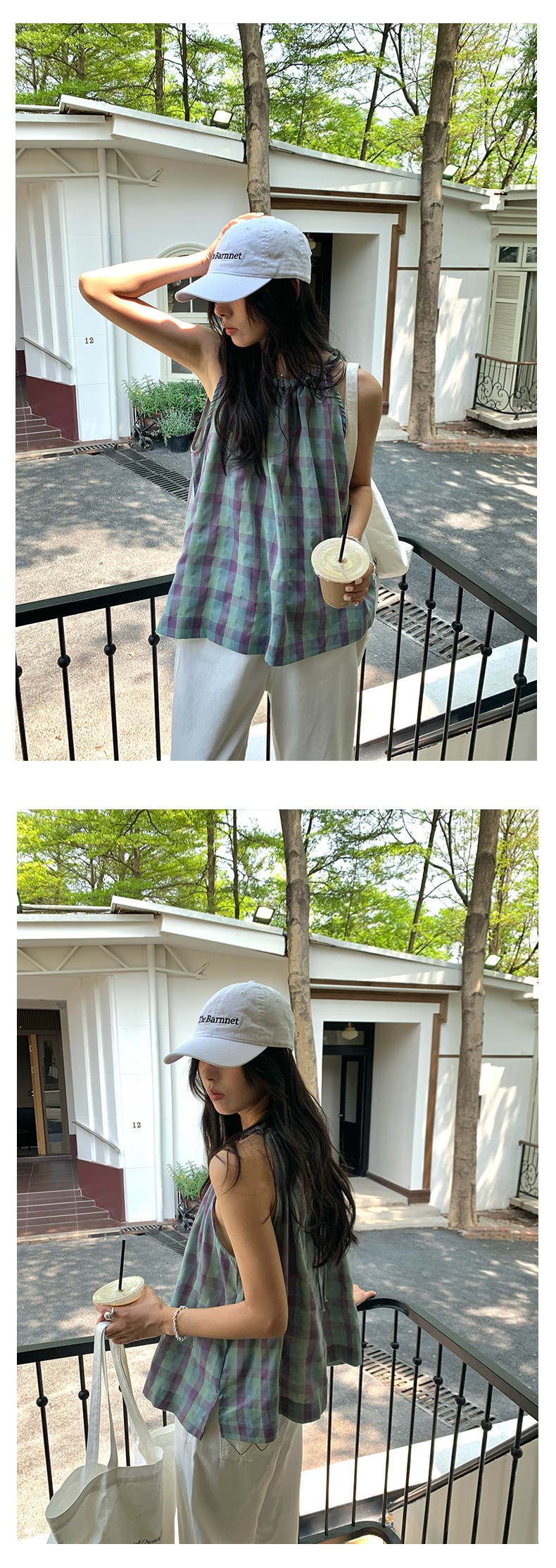 *o-ha-you*【FHZH1CH5020405】領口褶皺後背繫帶寬鬆無袖襯衫2025夏款清新甜美上衣背心-2色-如有需要請先諮詢