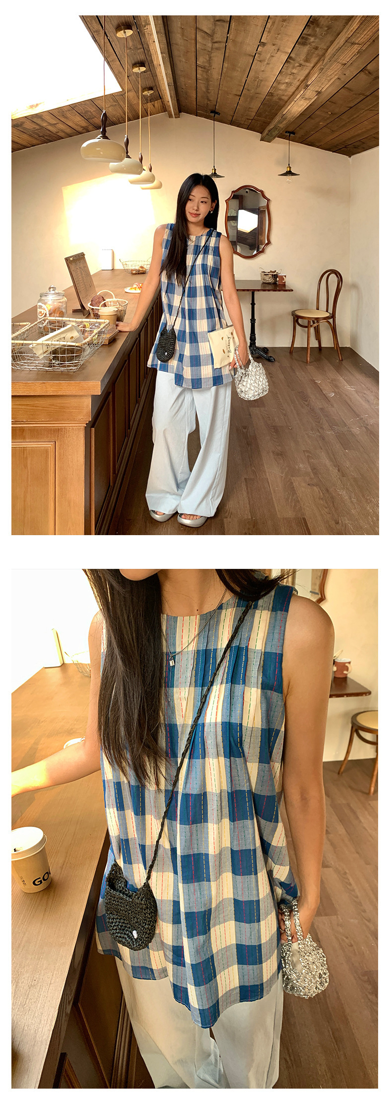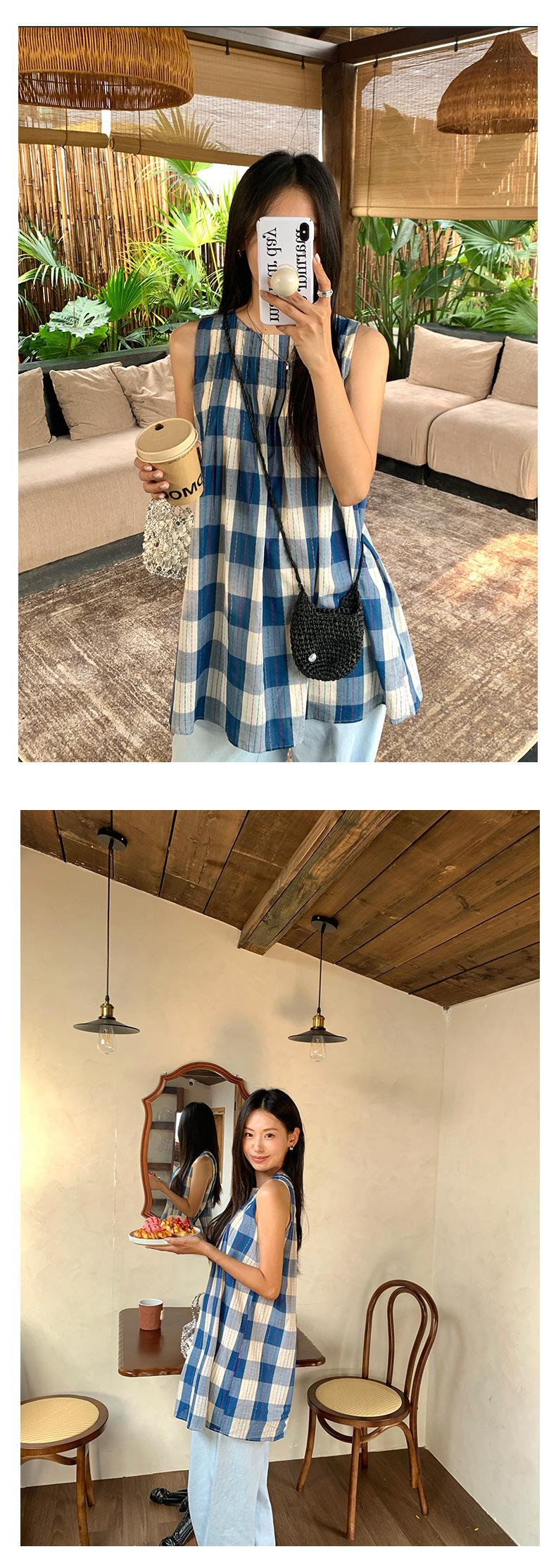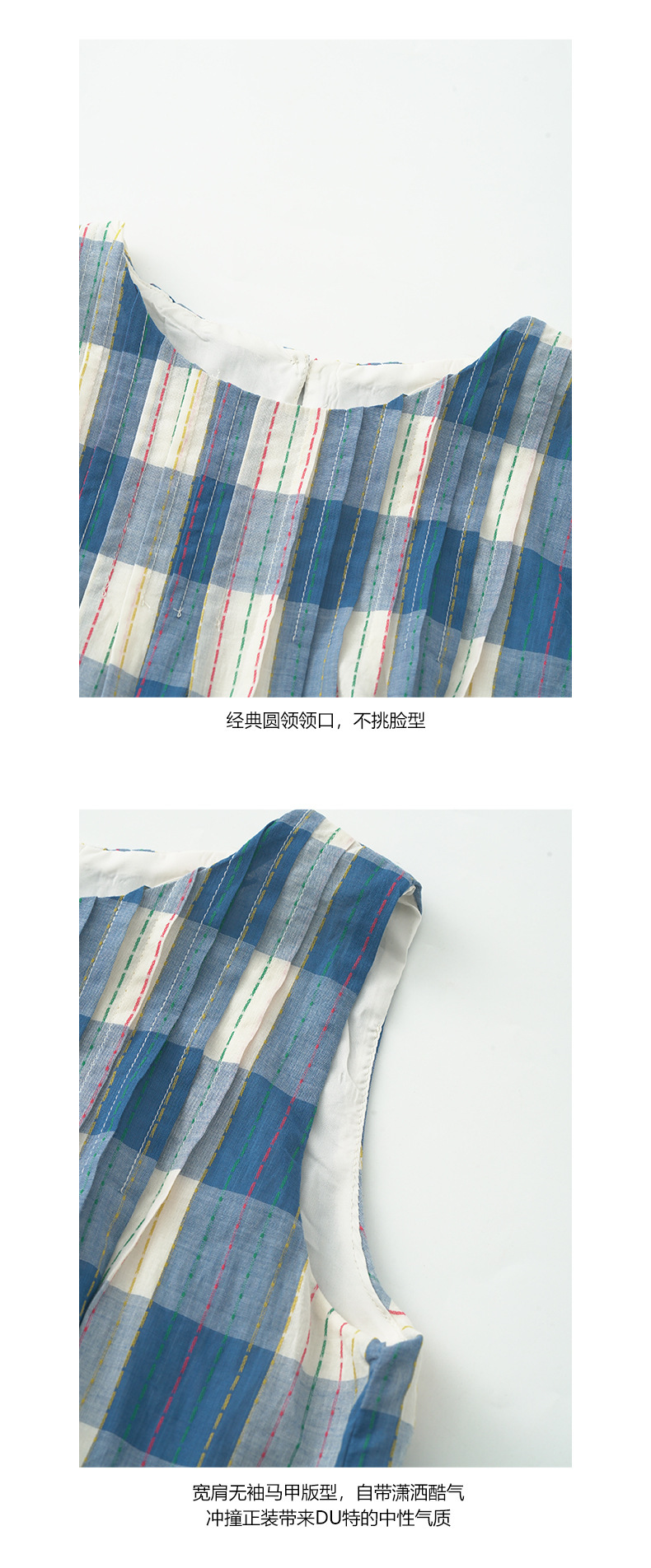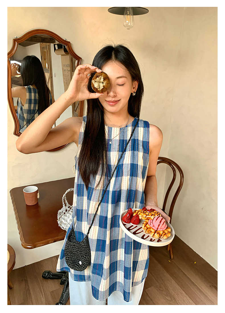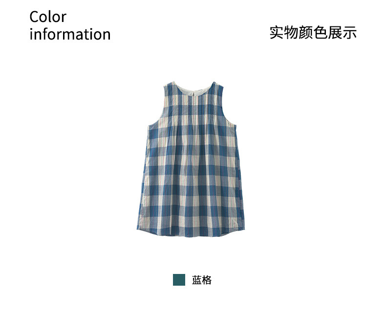 *o-ha-you*【FHZH1CH5020410】韓系背心裙時尚拼接格子裙打褶復古藍格紋色織連衣裙洋裝
