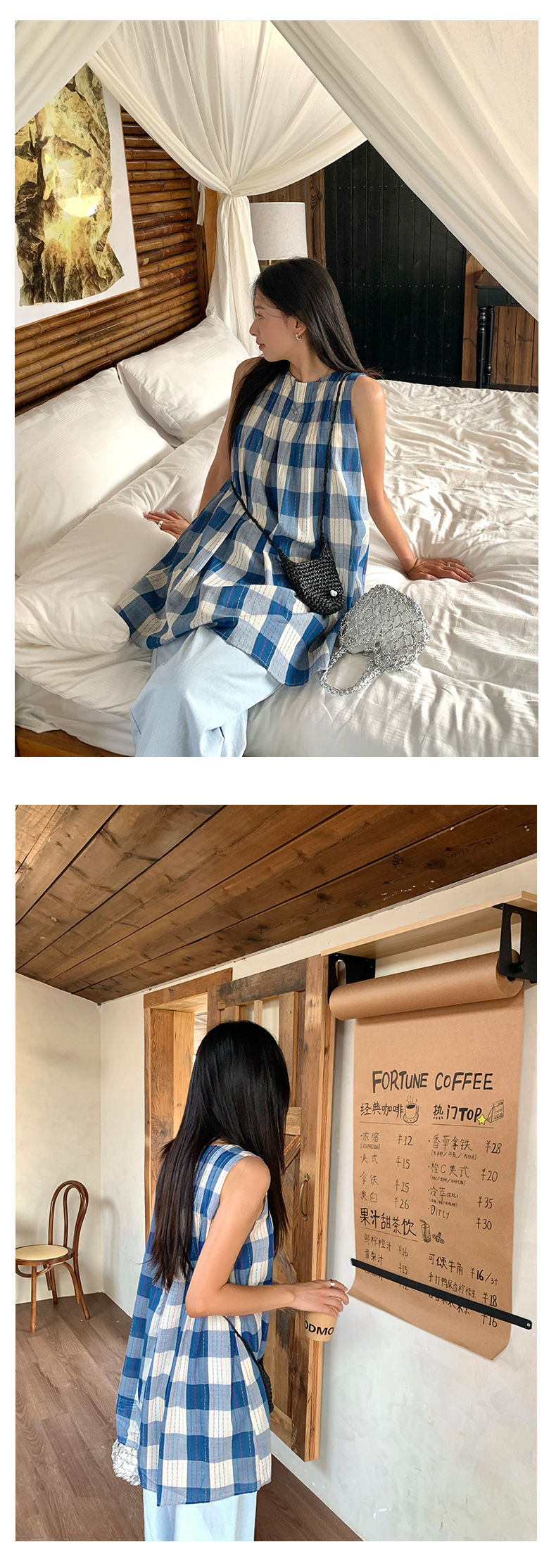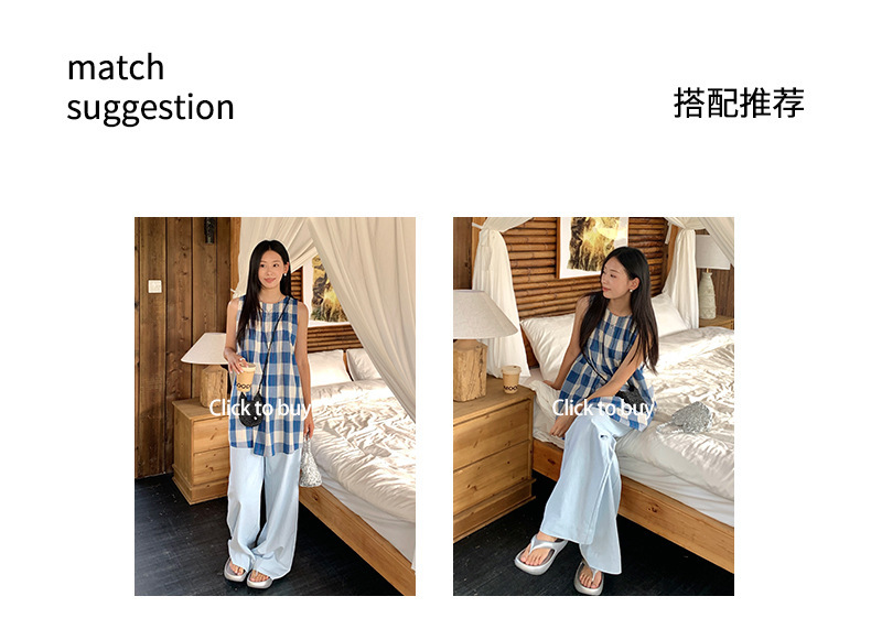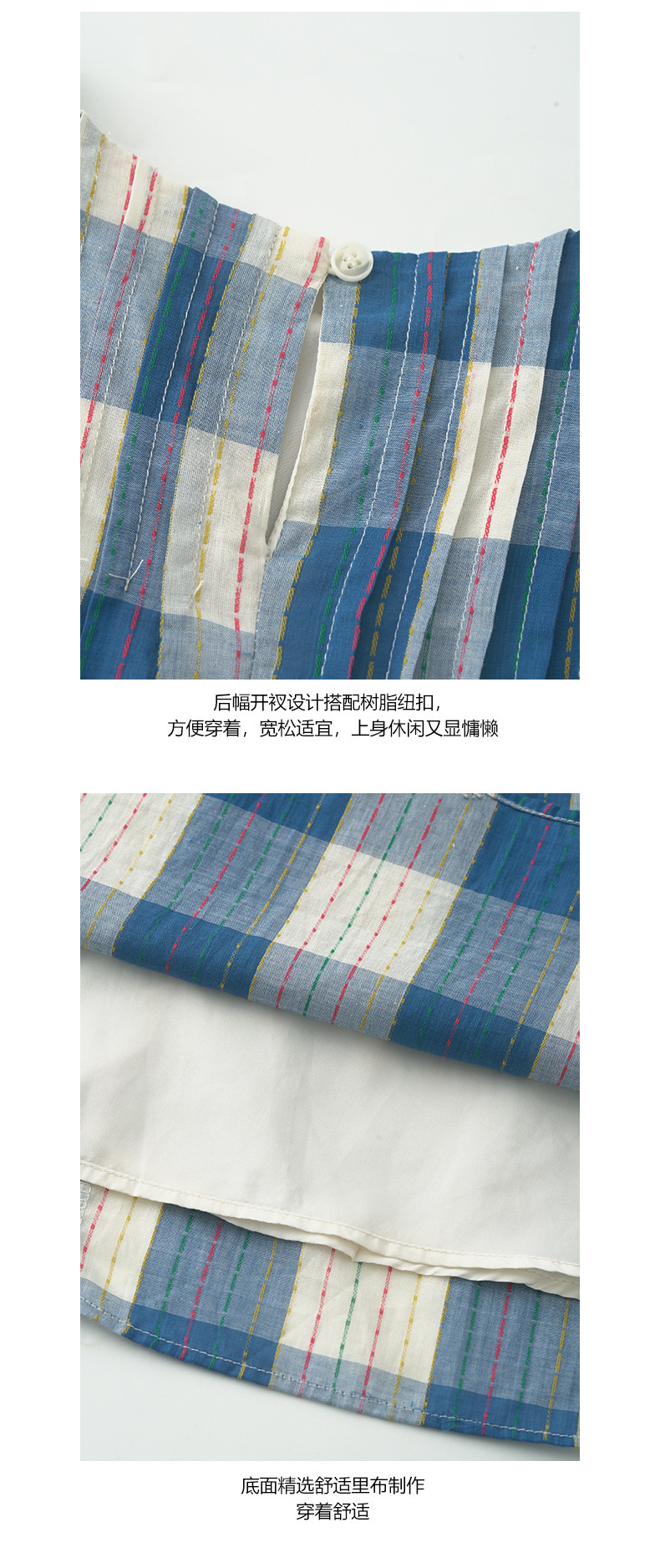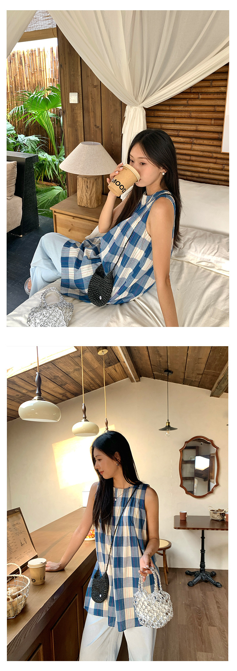 *o-ha-you*【FHZH1CH5020410】韓系背心裙時尚拼接格子裙打褶復古藍格紋色織連衣裙洋裝