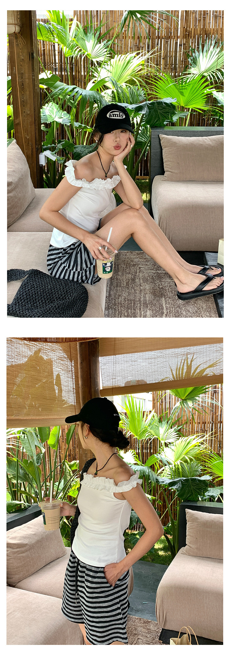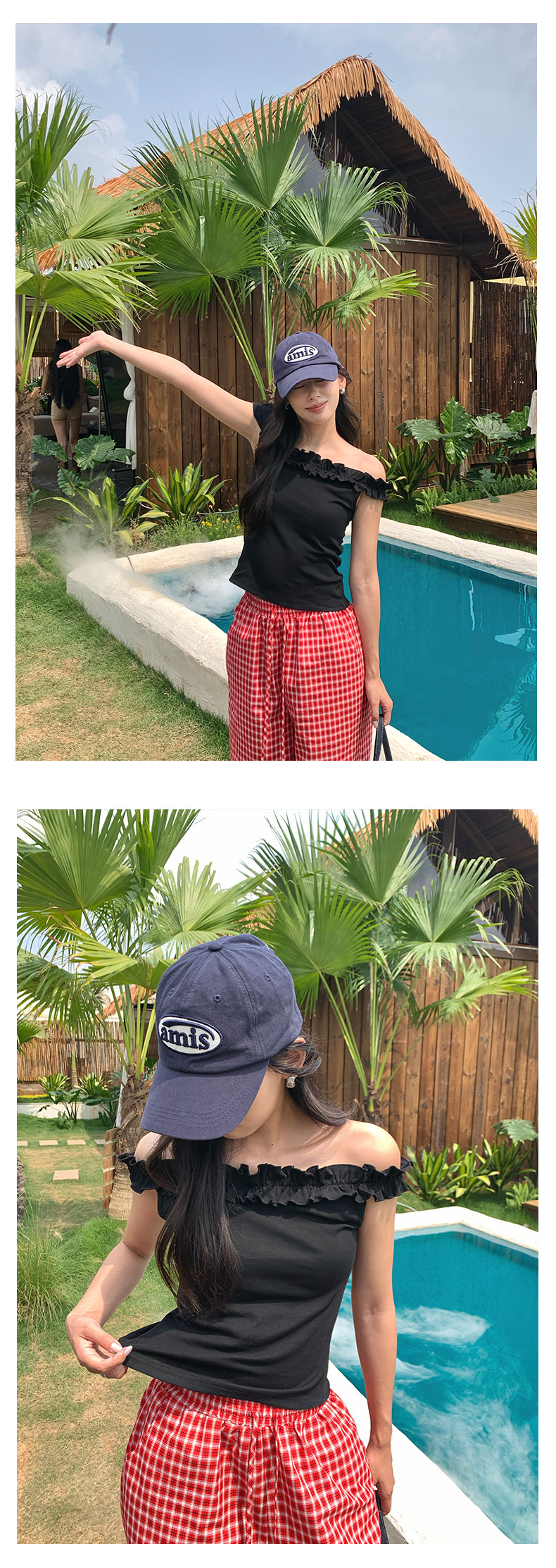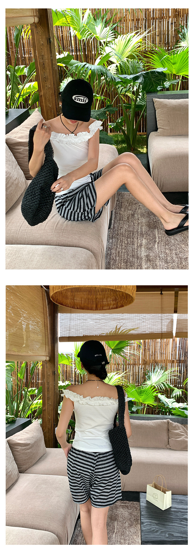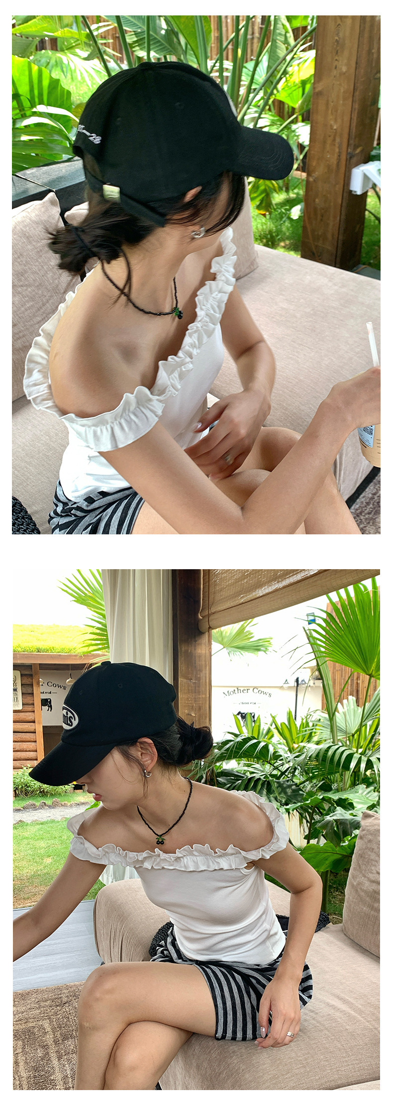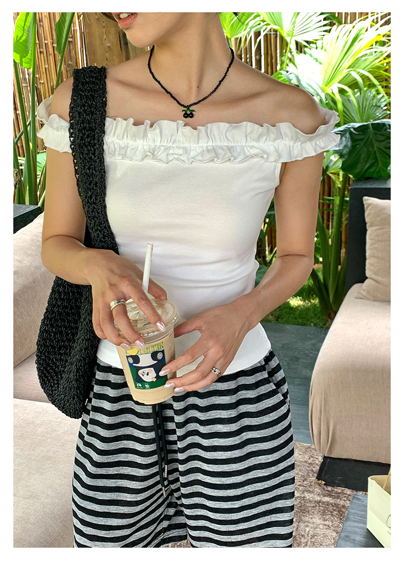 *o-ha-you*【FHZH1CH5020530】韓系純欲風一字肩木耳邊背心辣妹修身顯瘦外穿吊帶-3色