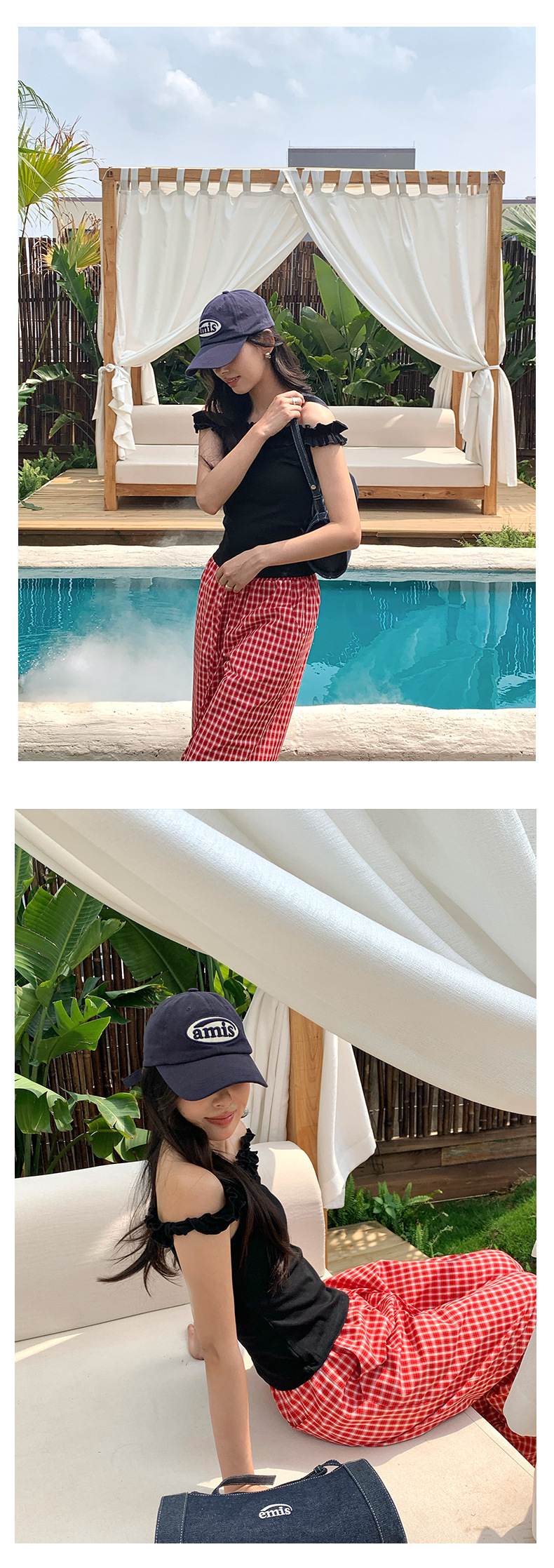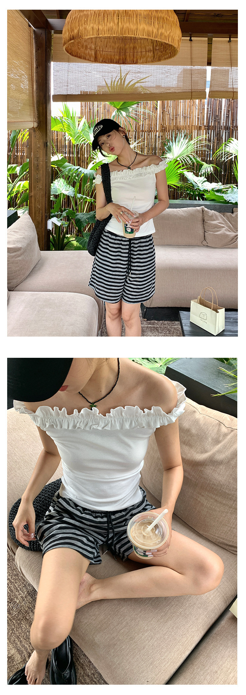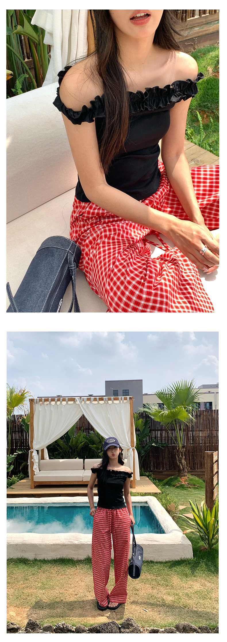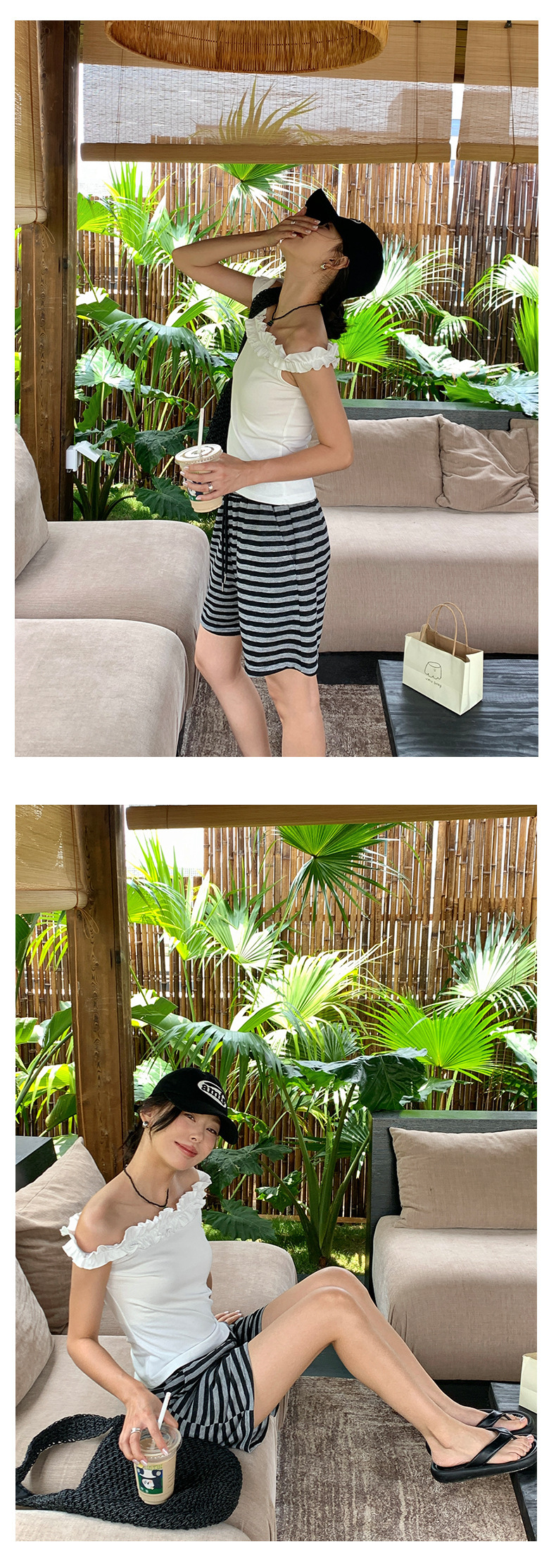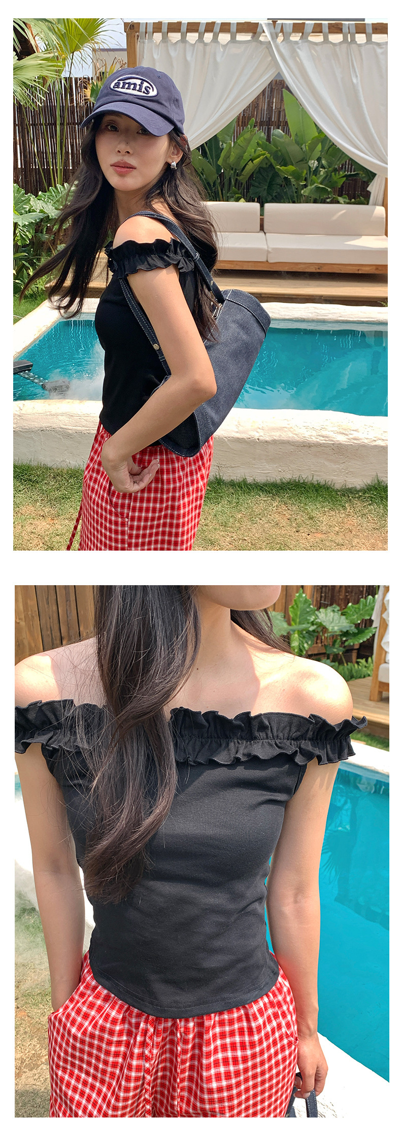 *o-ha-you*【FHZH1CH5020530】韓系純欲風一字肩木耳邊背心辣妹修身顯瘦外穿吊帶-3色