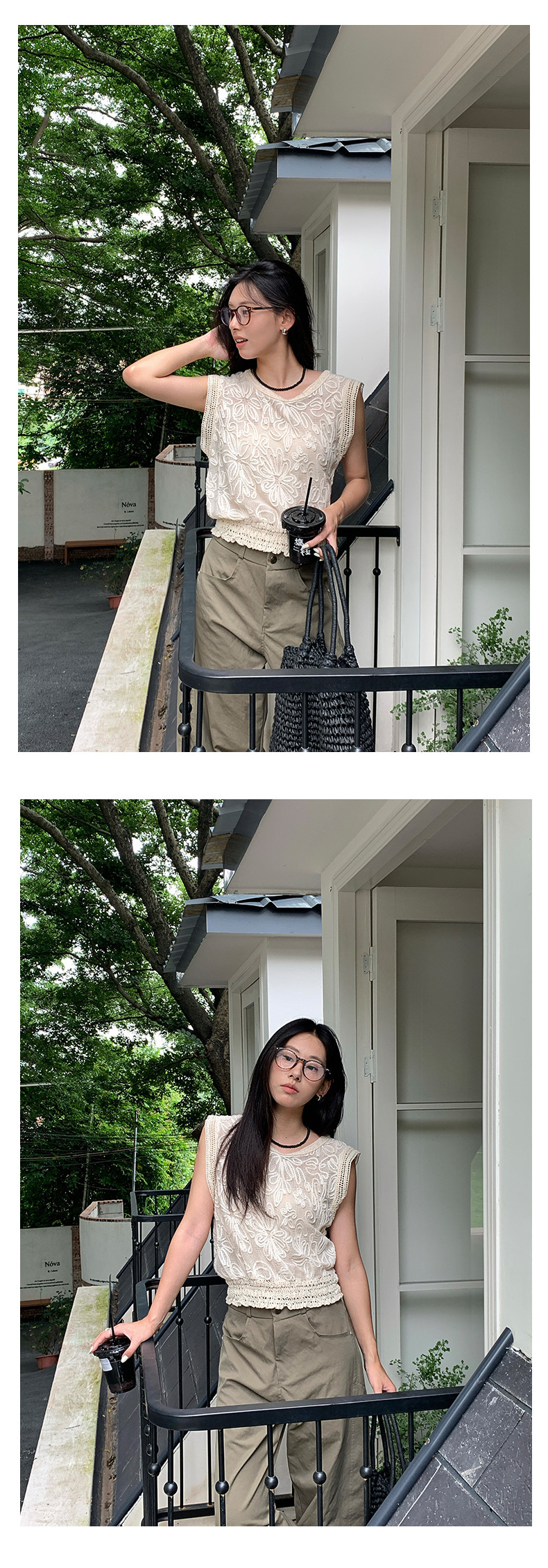 *o-ha-you*【FHZH1CH5020695】韓版戀夏風穿搭ins部落客設計感小眾蕾絲拼接背心上衣