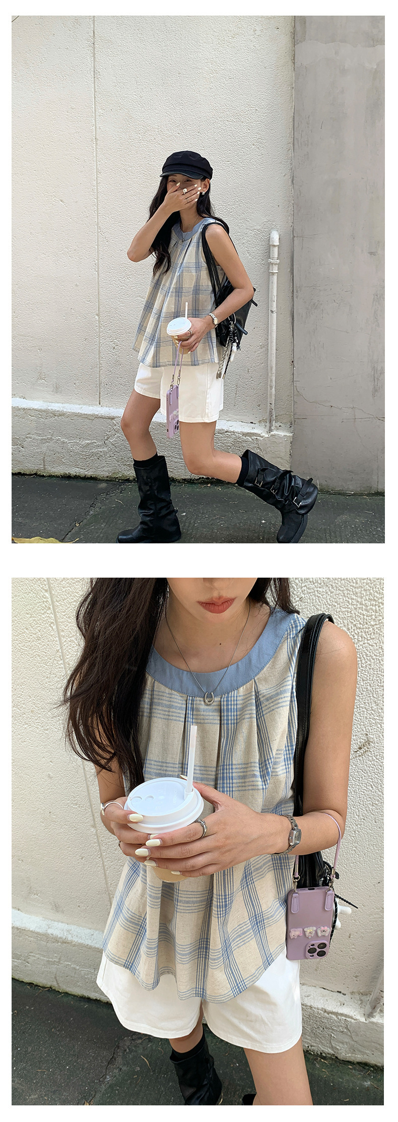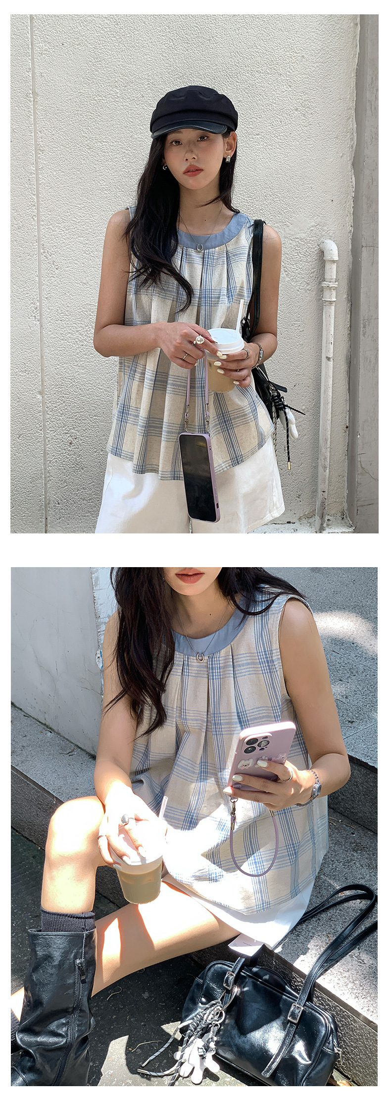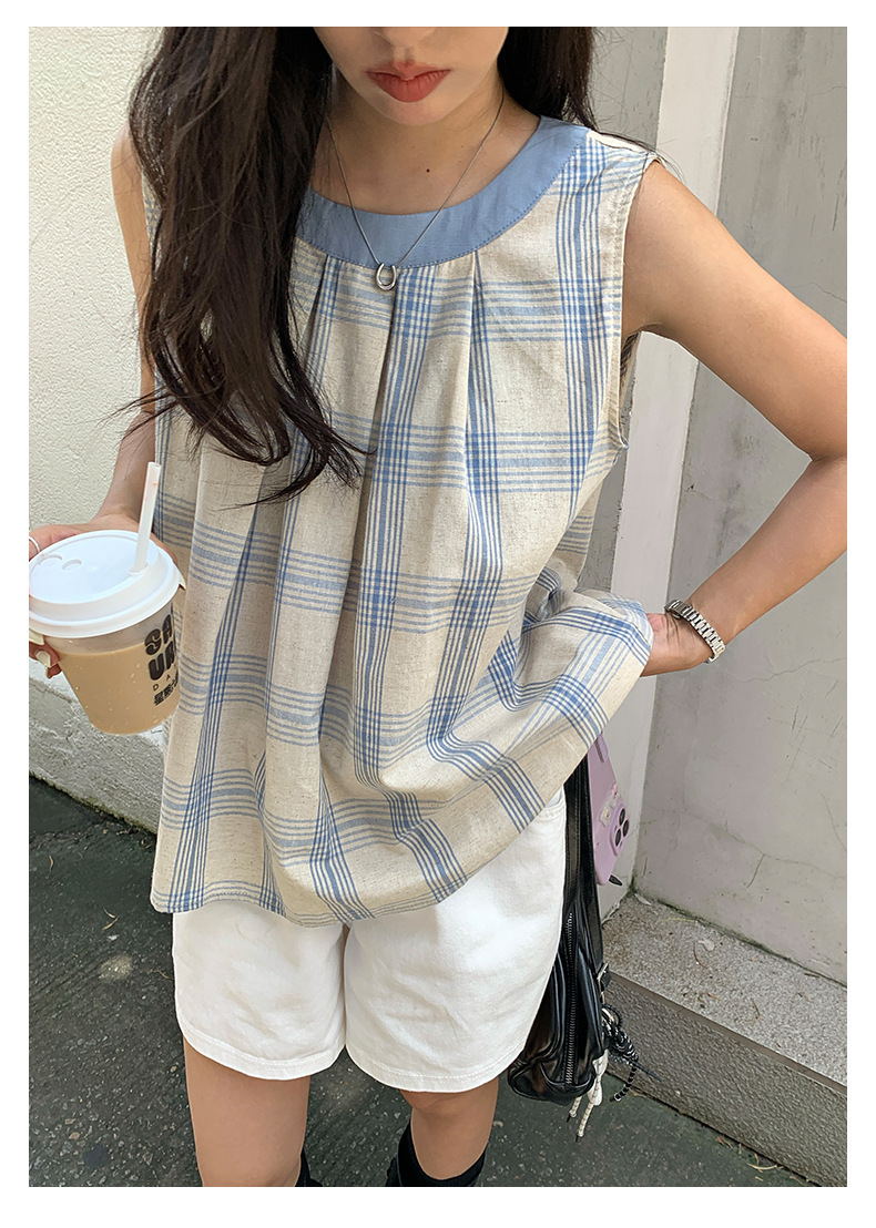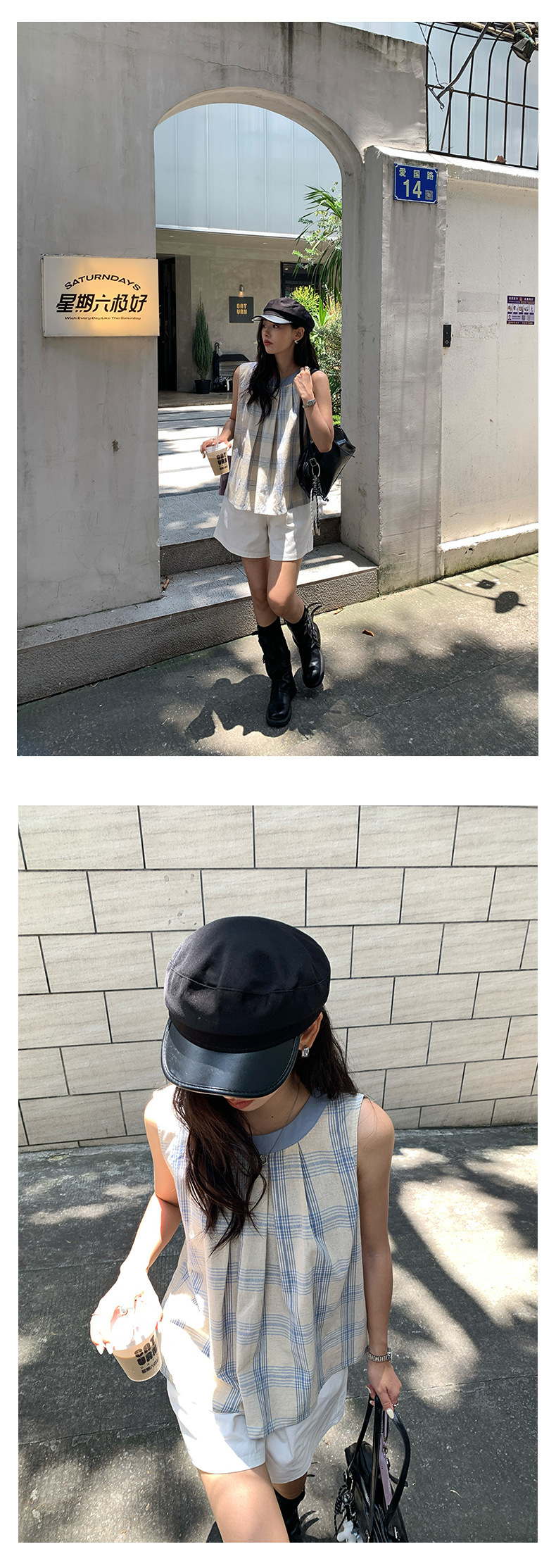 *o-ha-you*【FHZH1CH5020756】韓版鹽系格紋撞色掛脖背心高級感氣質百搭無袖上衣