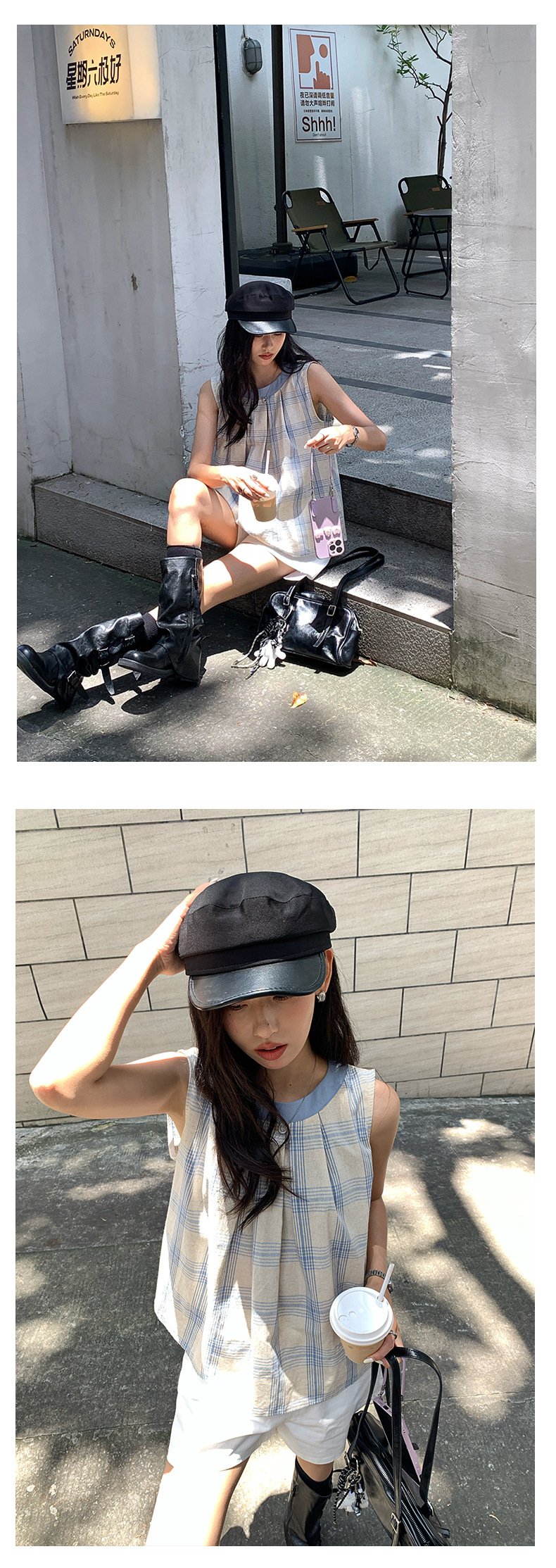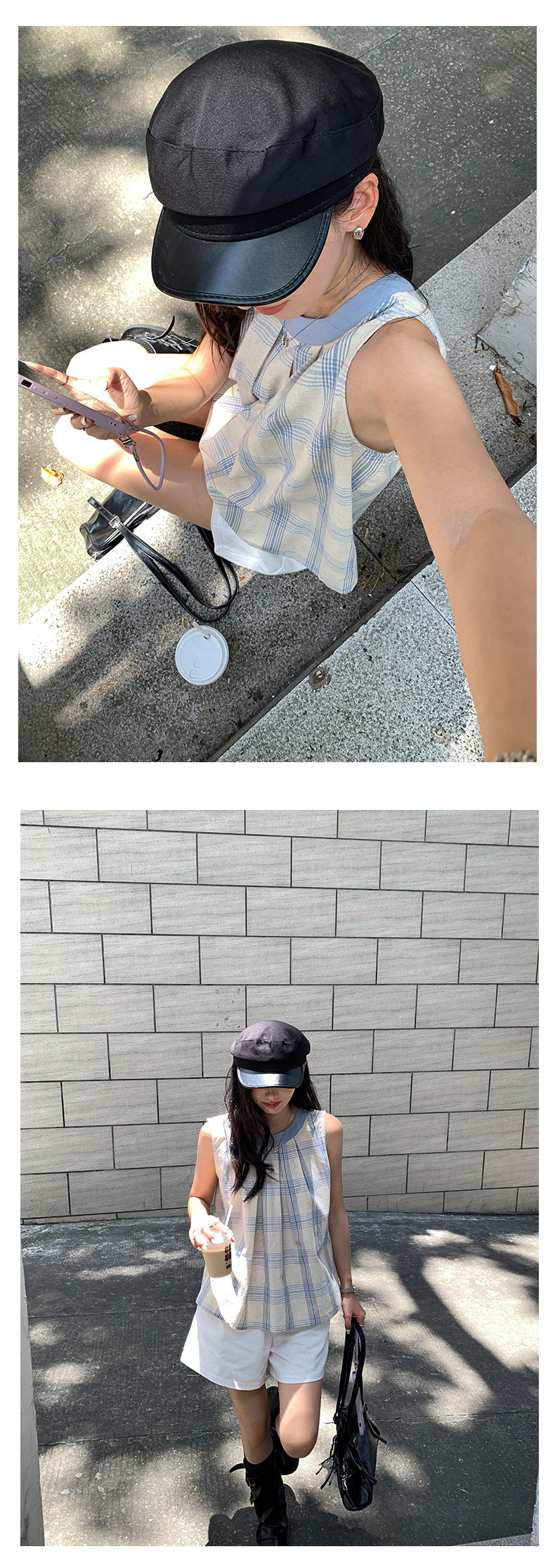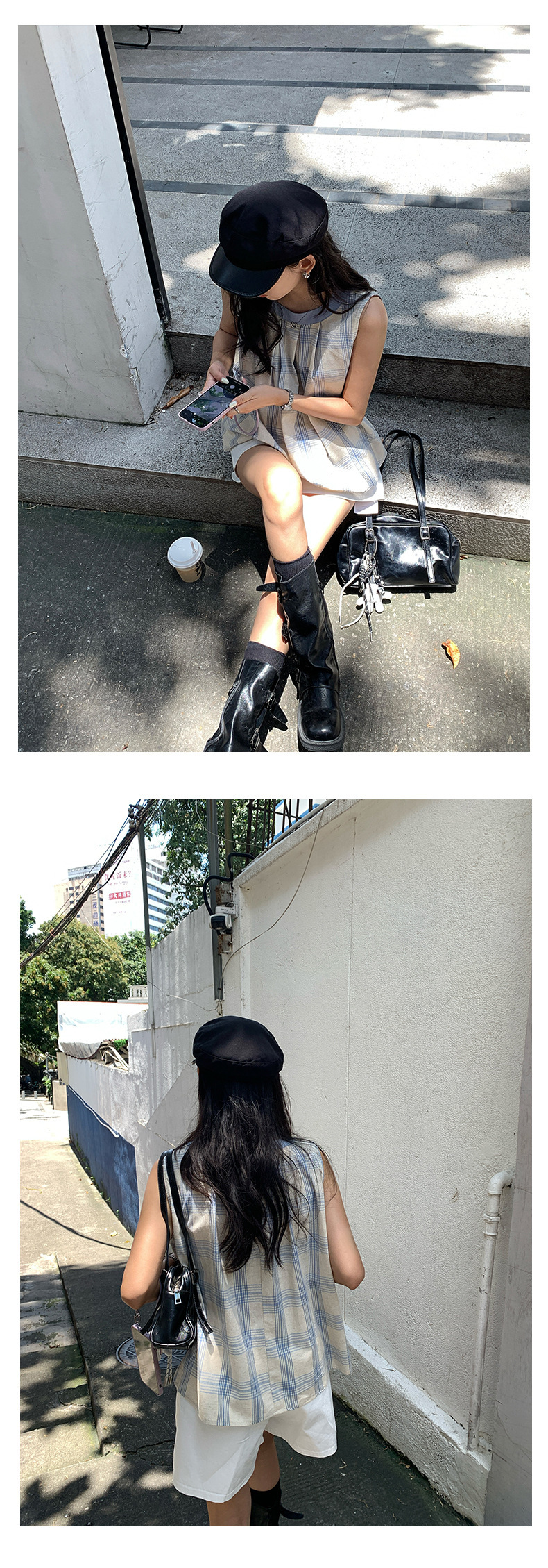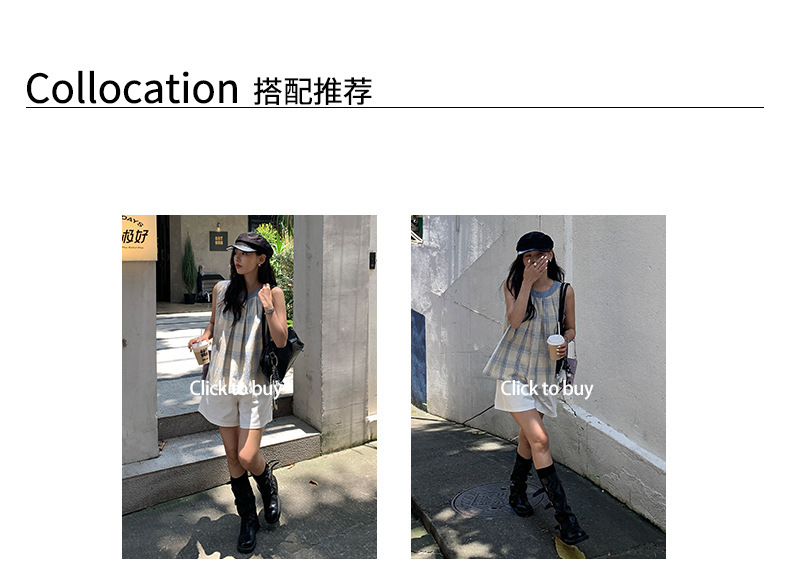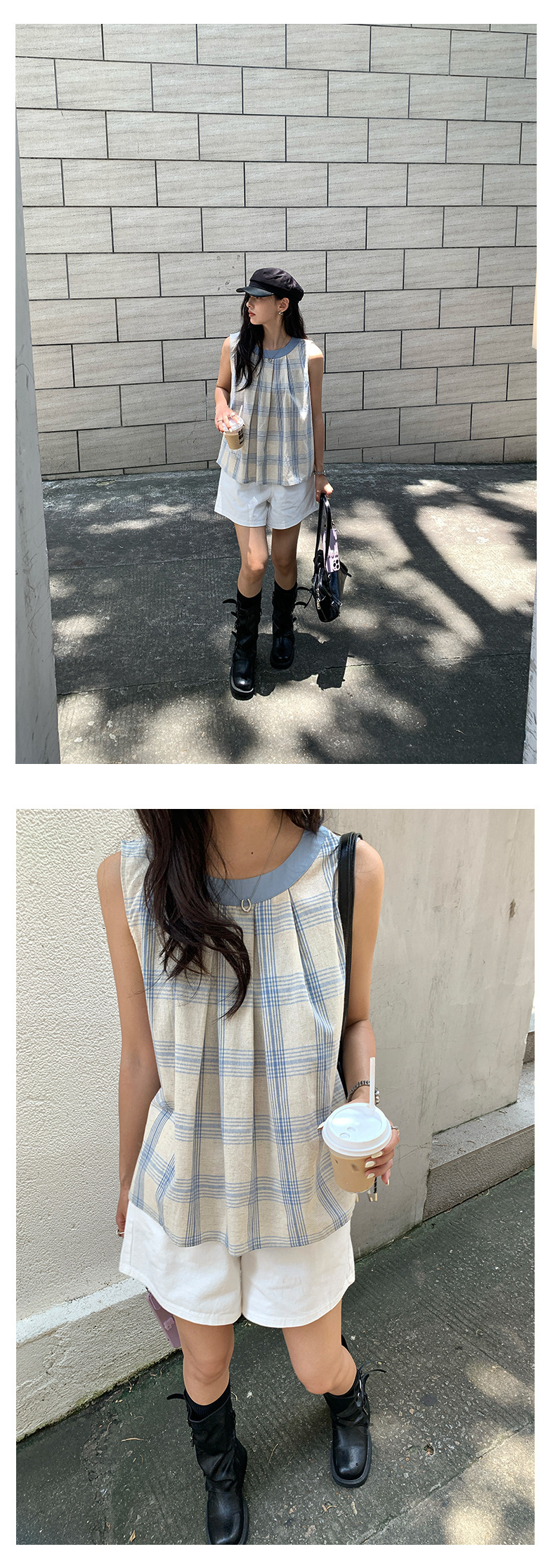 *o-ha-you*【FHZH1CH5020756】韓版鹽系格紋撞色掛脖背心高級感氣質百搭無袖上衣