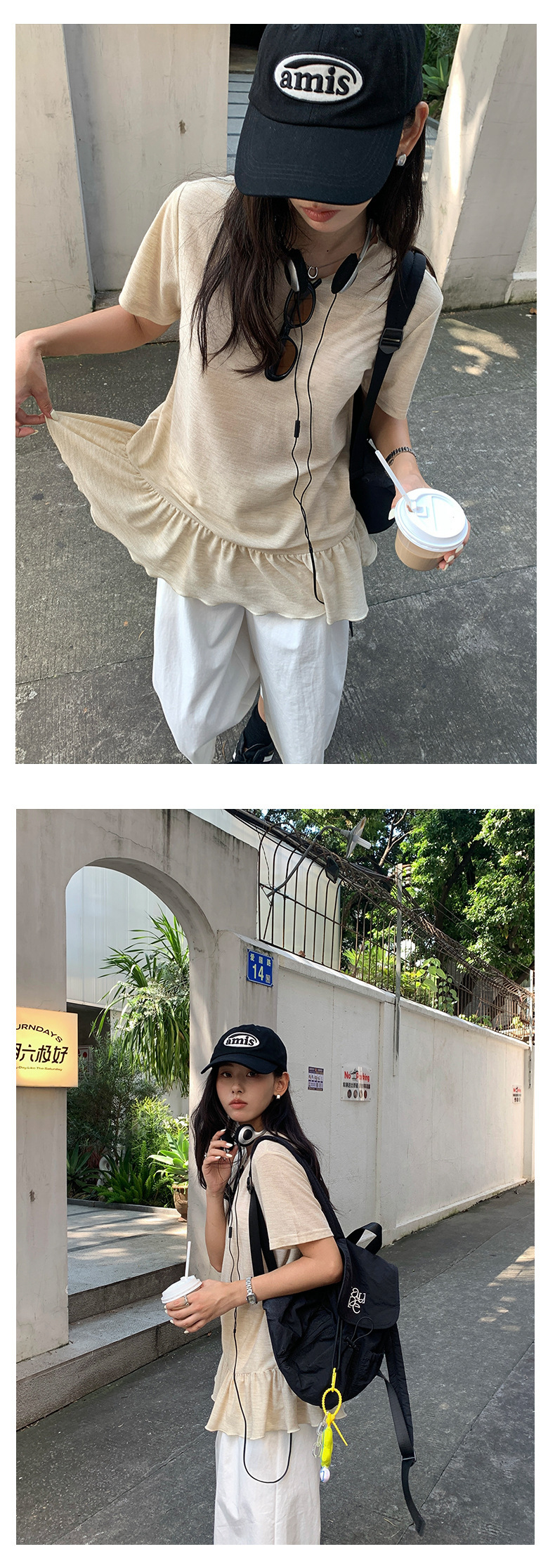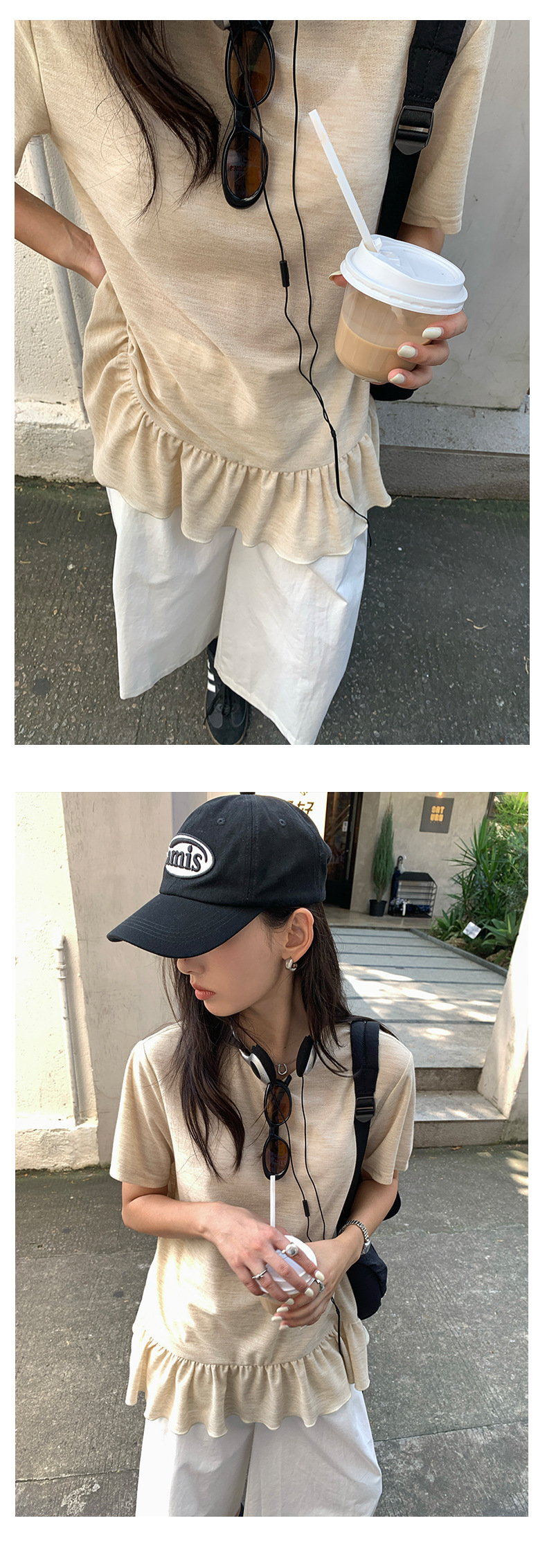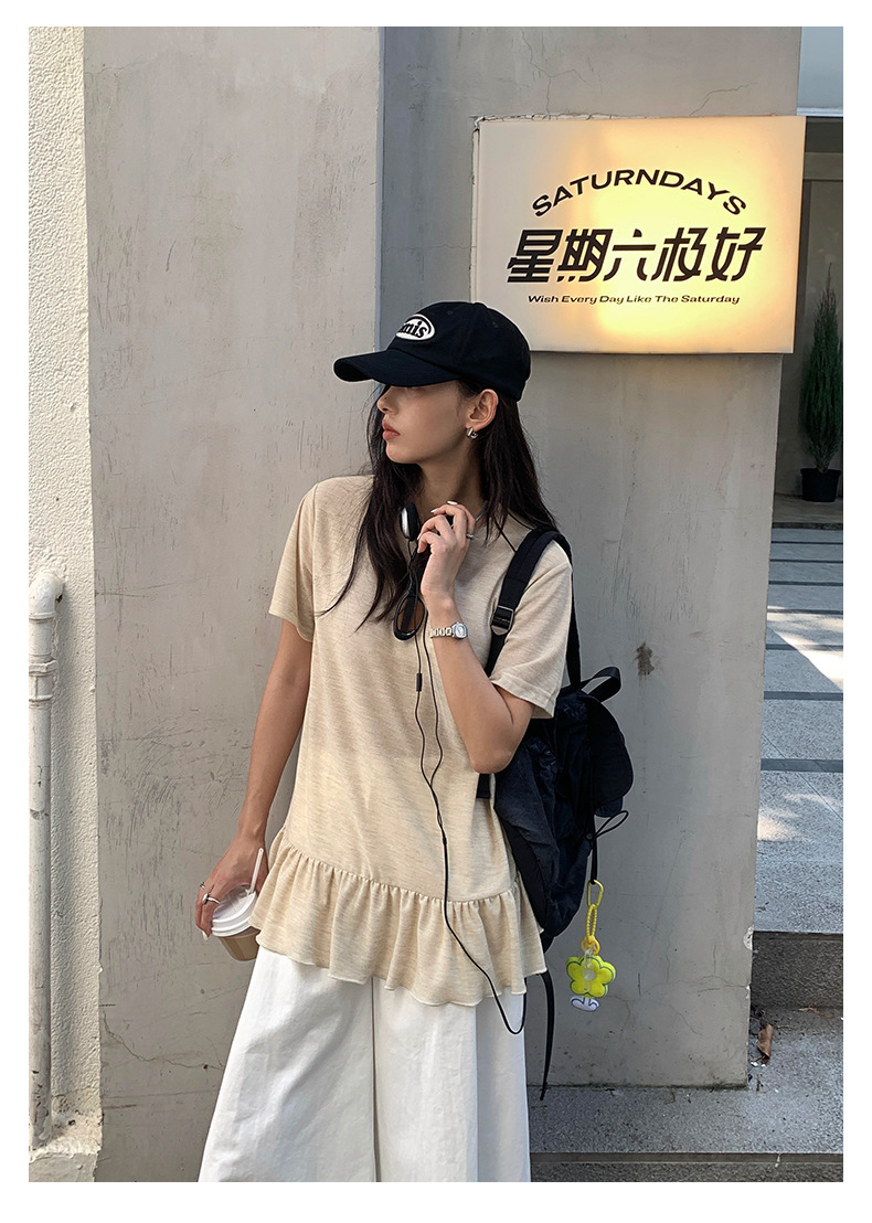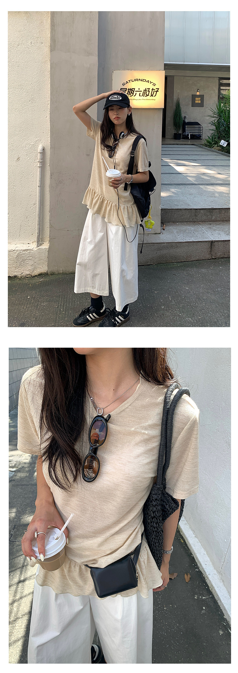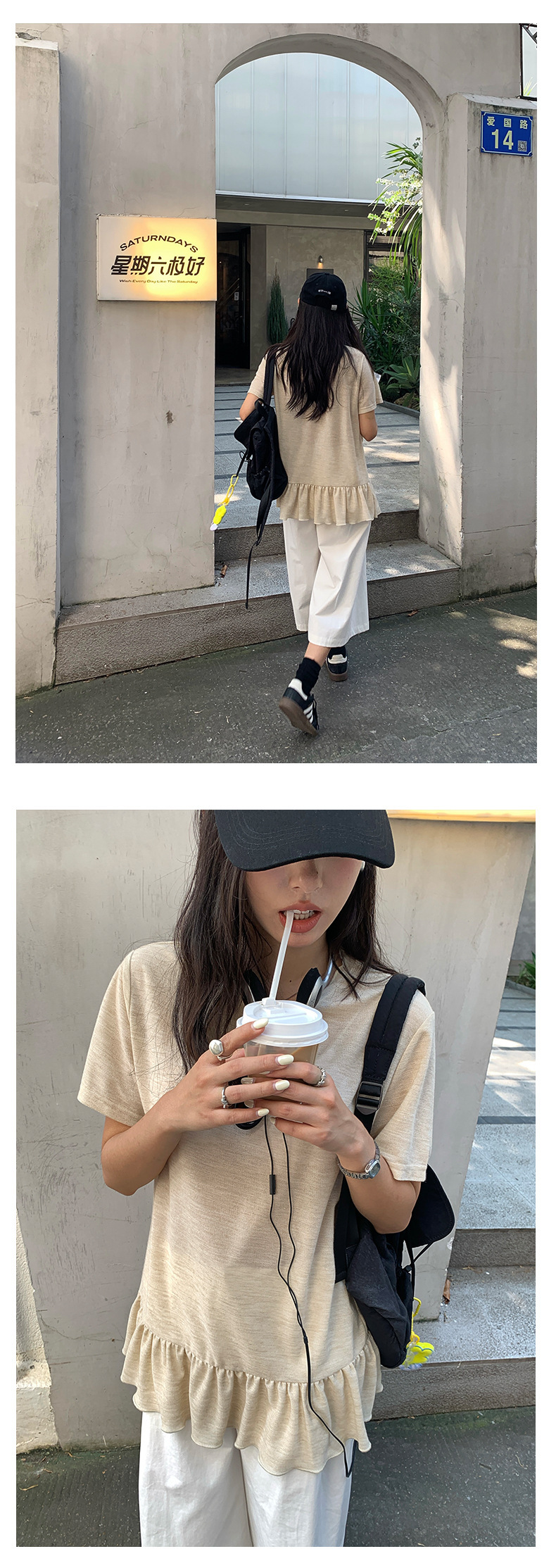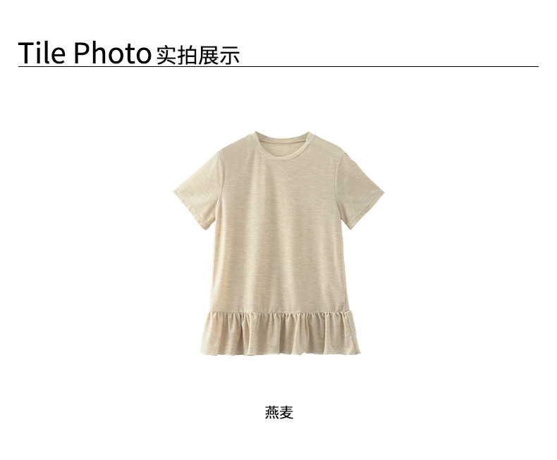 *o-ha-you*【FHZH1CY5020740】韓版燕麥色休閒T恤設計款寬鬆顯瘦木耳邊下擺上衣