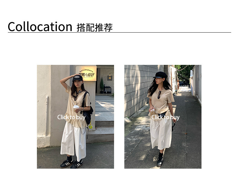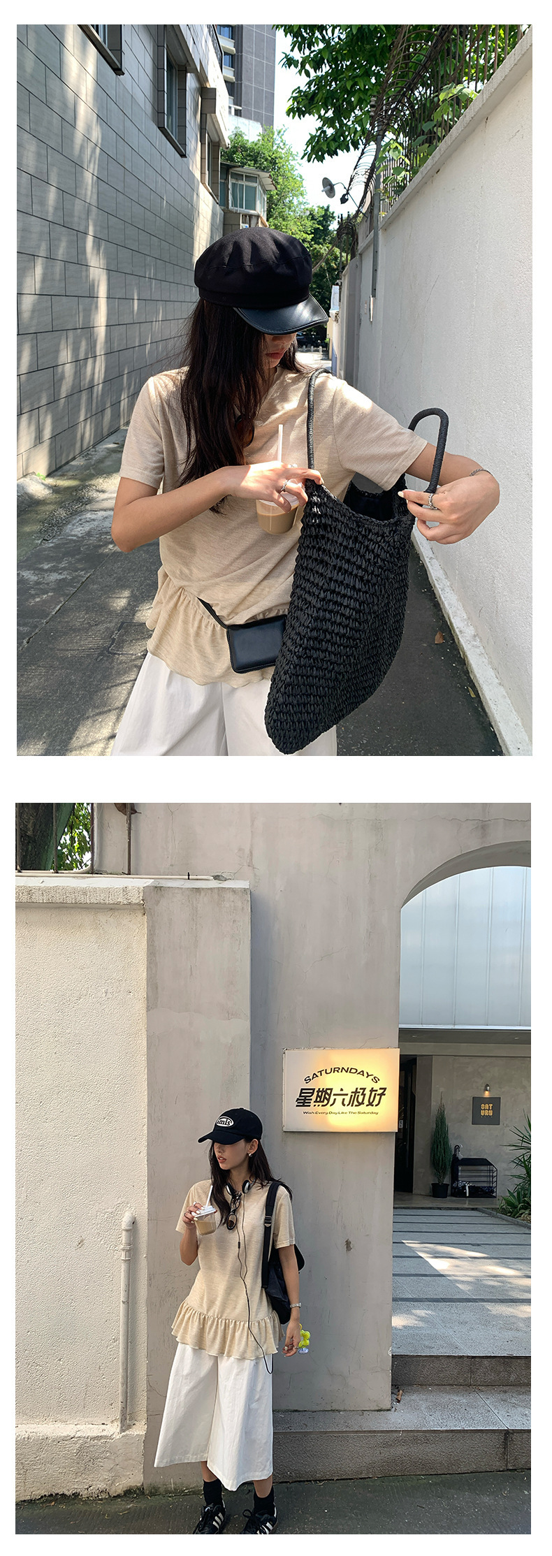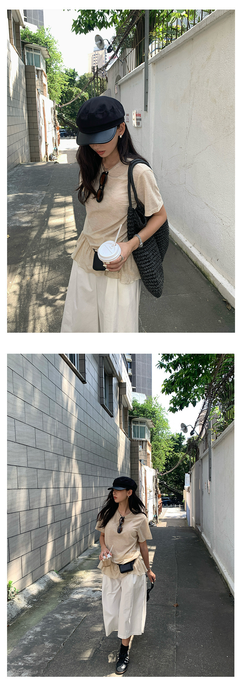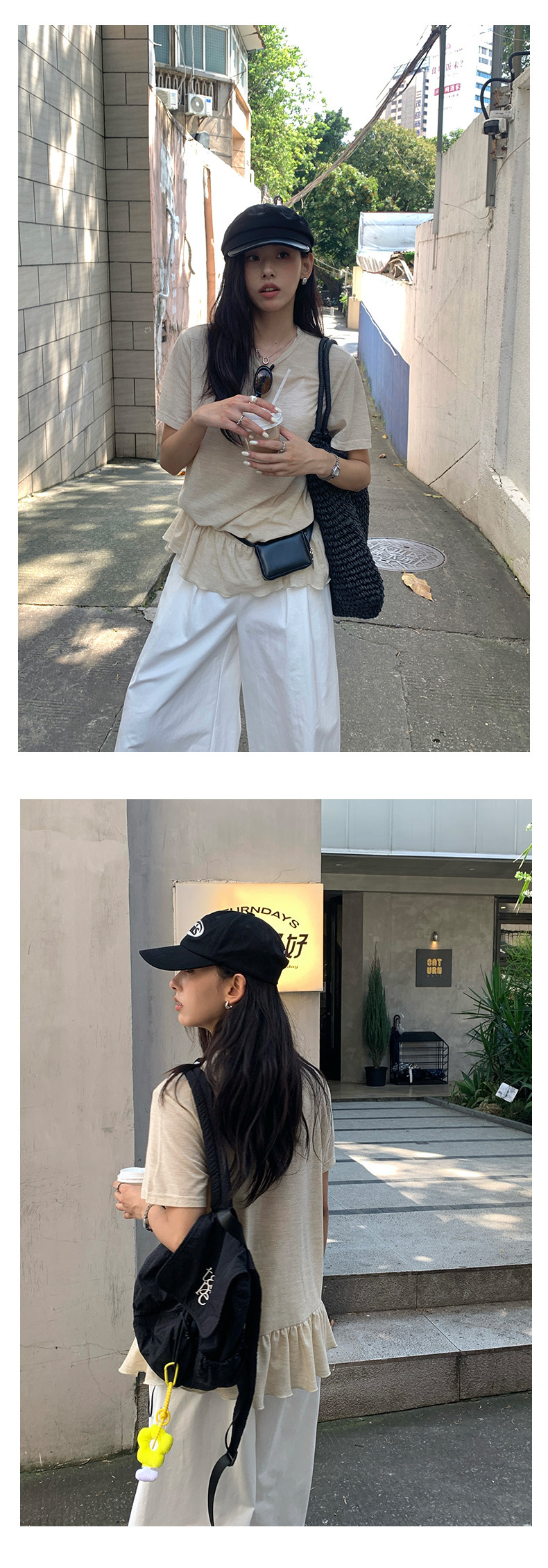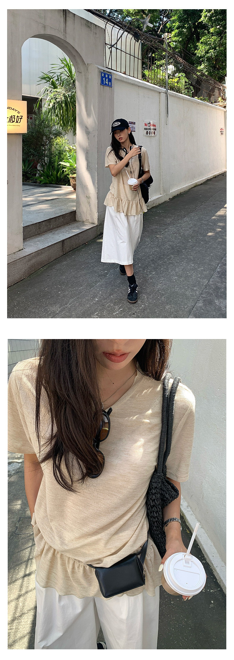 *o-ha-you*【FHZH1CY5020740】韓版燕麥色休閒T恤設計款寬鬆顯瘦木耳邊下擺上衣