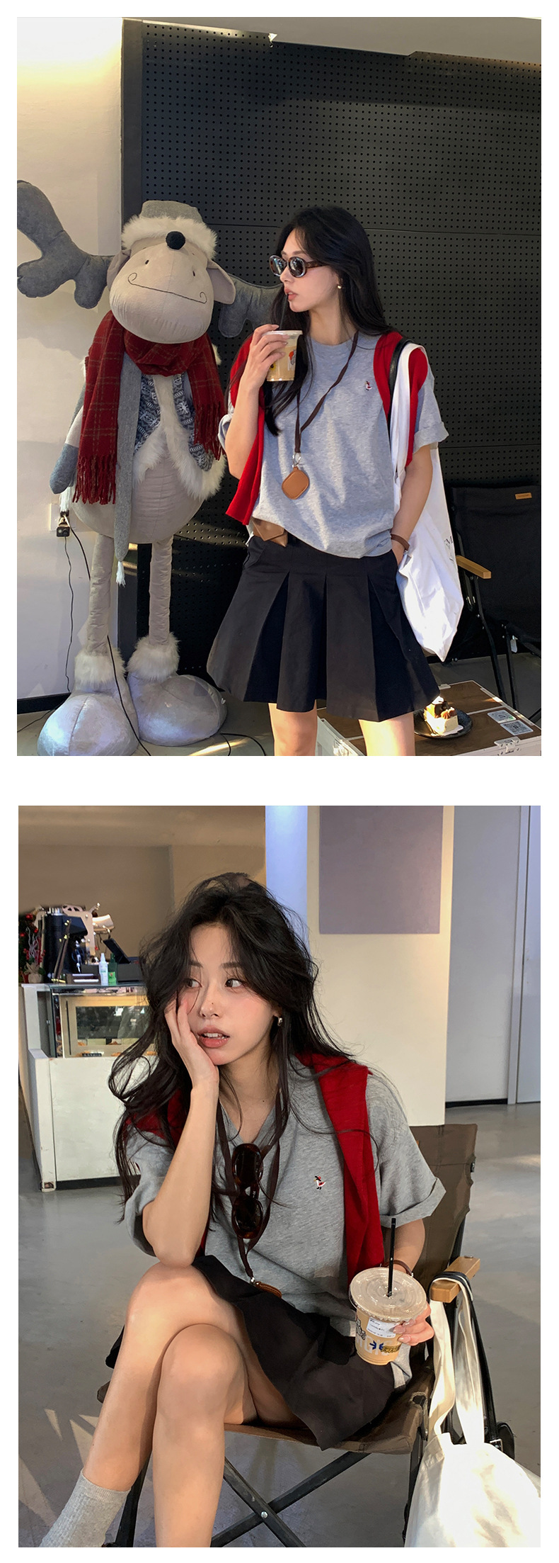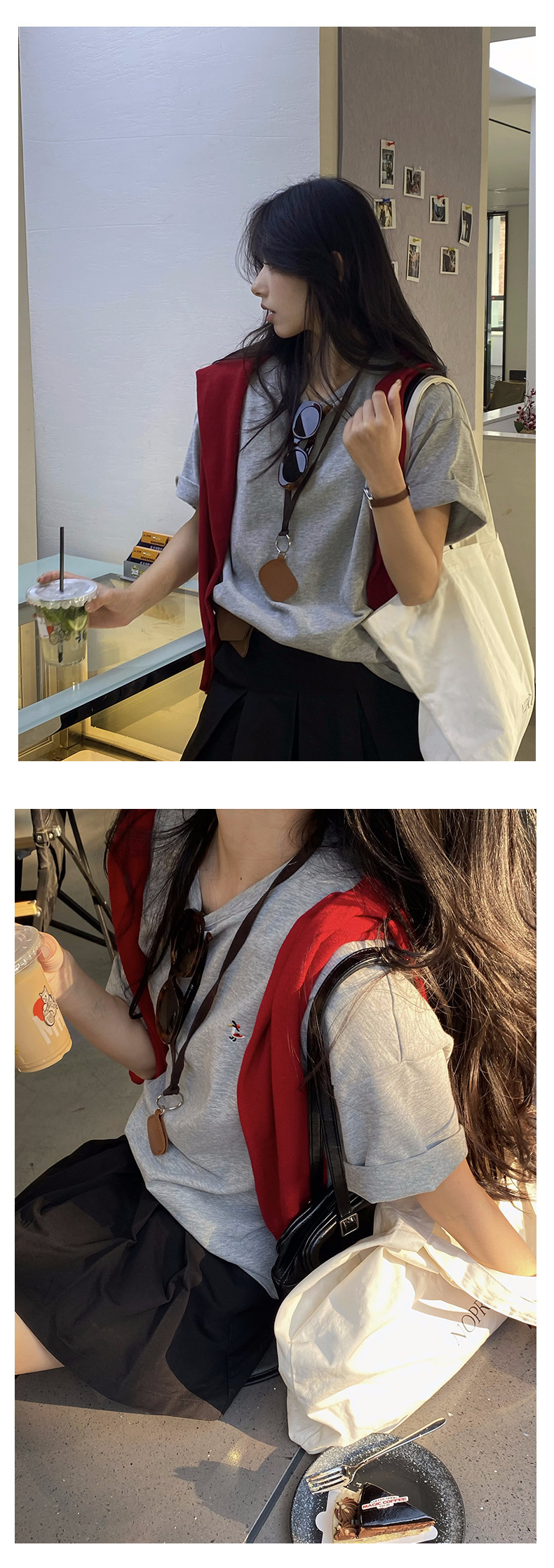 *o-ha-you*【FHZH1DA5010012】簡約小刺繡圓領短袖T恤2025春韓版寬鬆休閒上衣-2色-如有需要請先諮詢