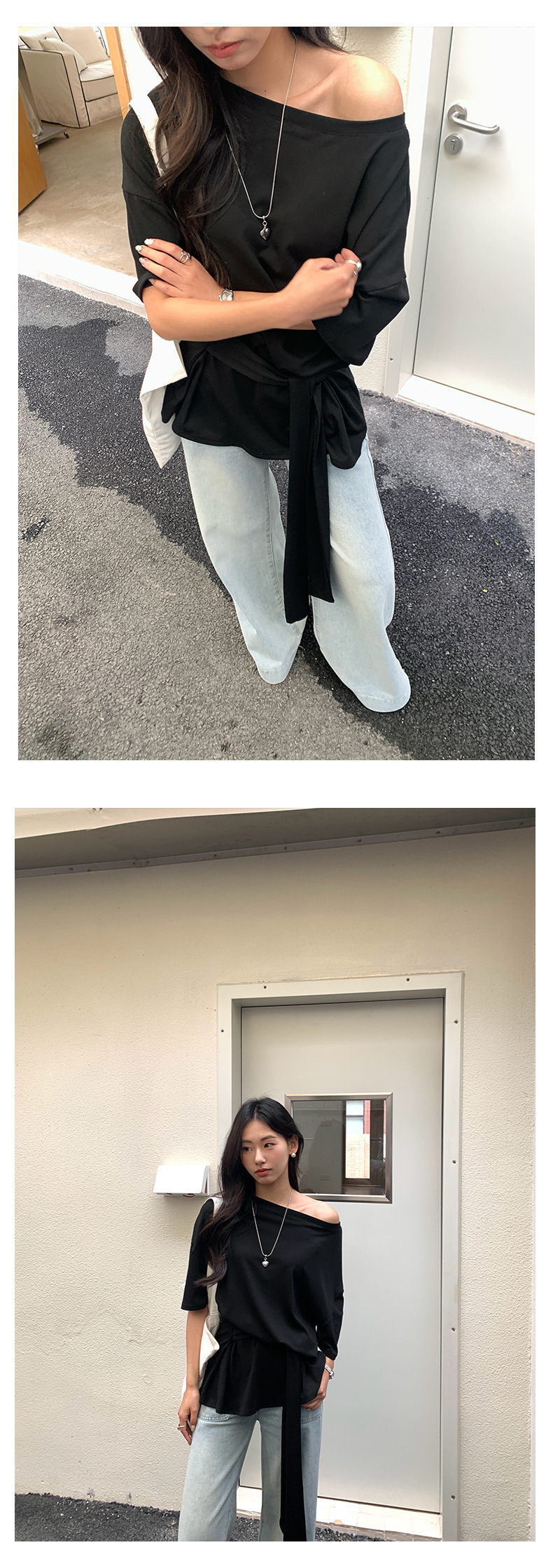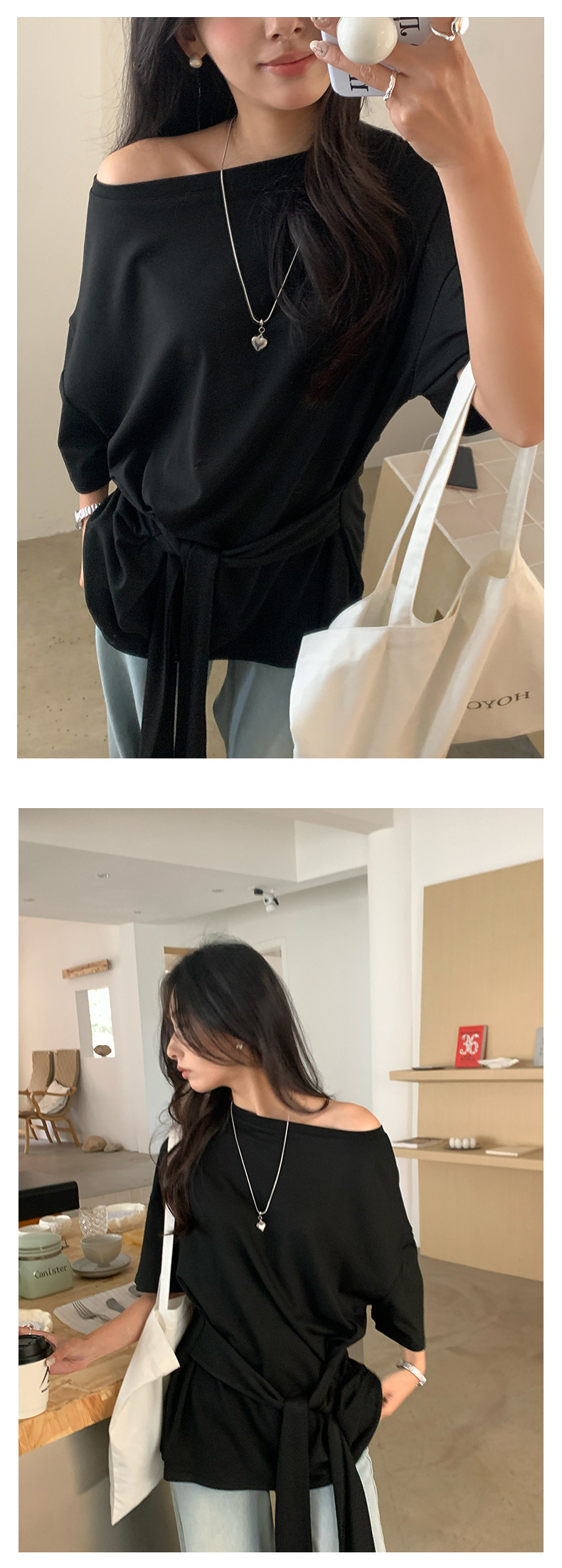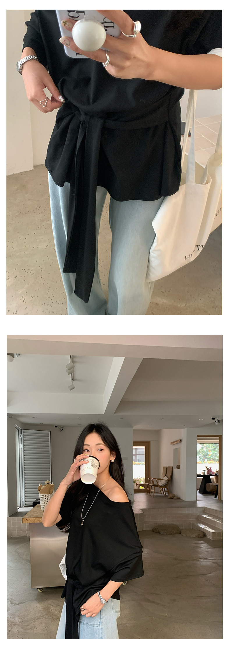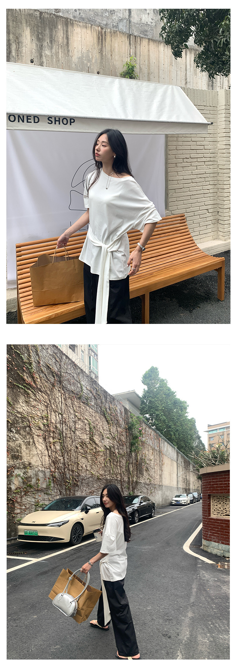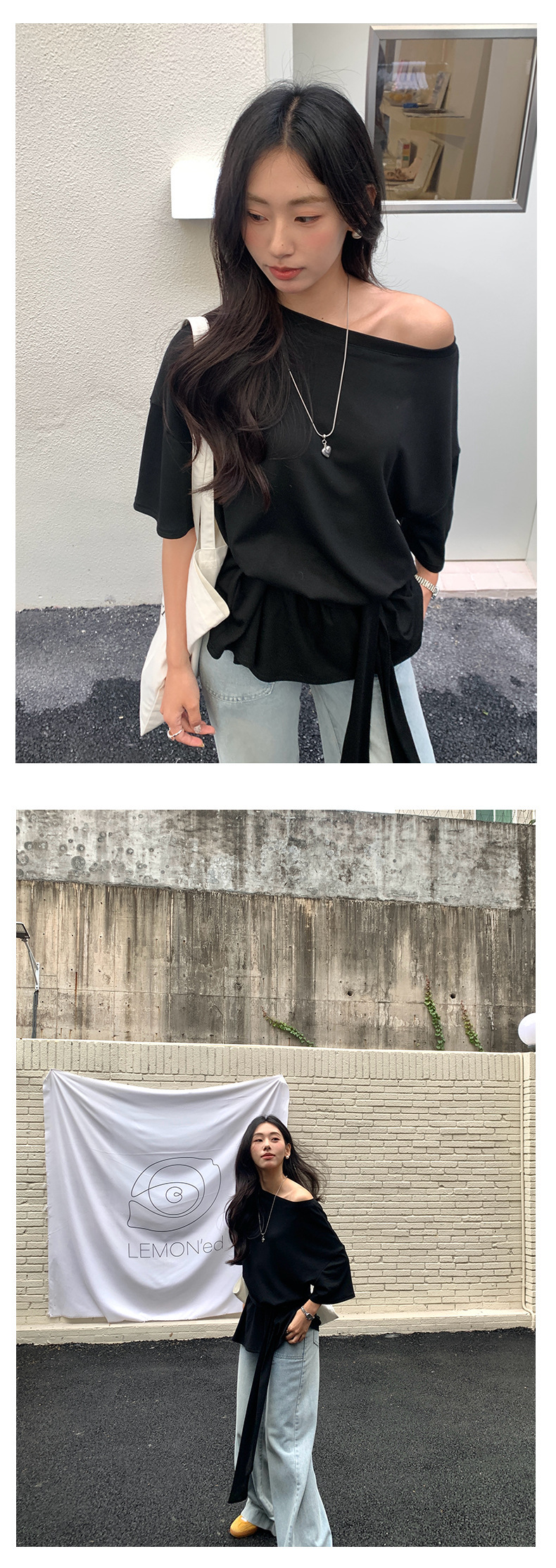*o-ha-you*【FHZH1DA5010227】繫帶不規則剪裁斜肩短袖女2025春夏時尚個性百搭上衣-2色-如有需要請先諮詢