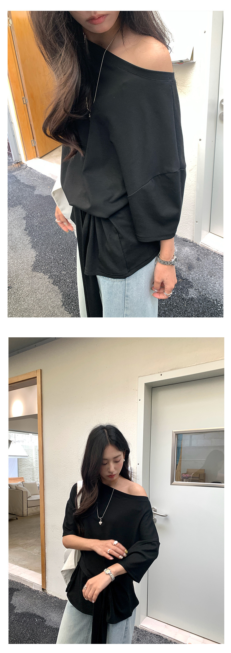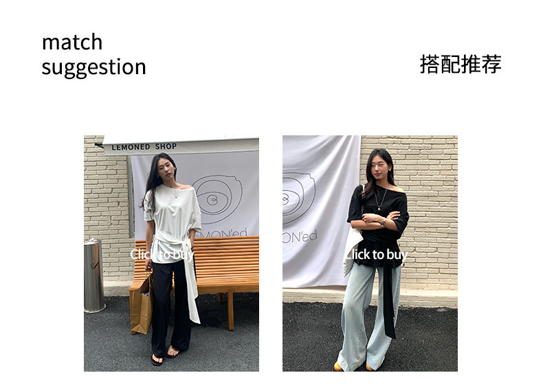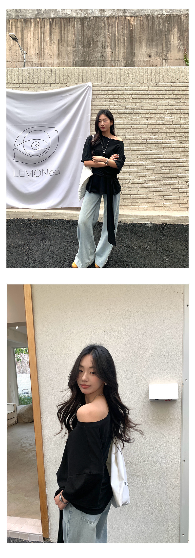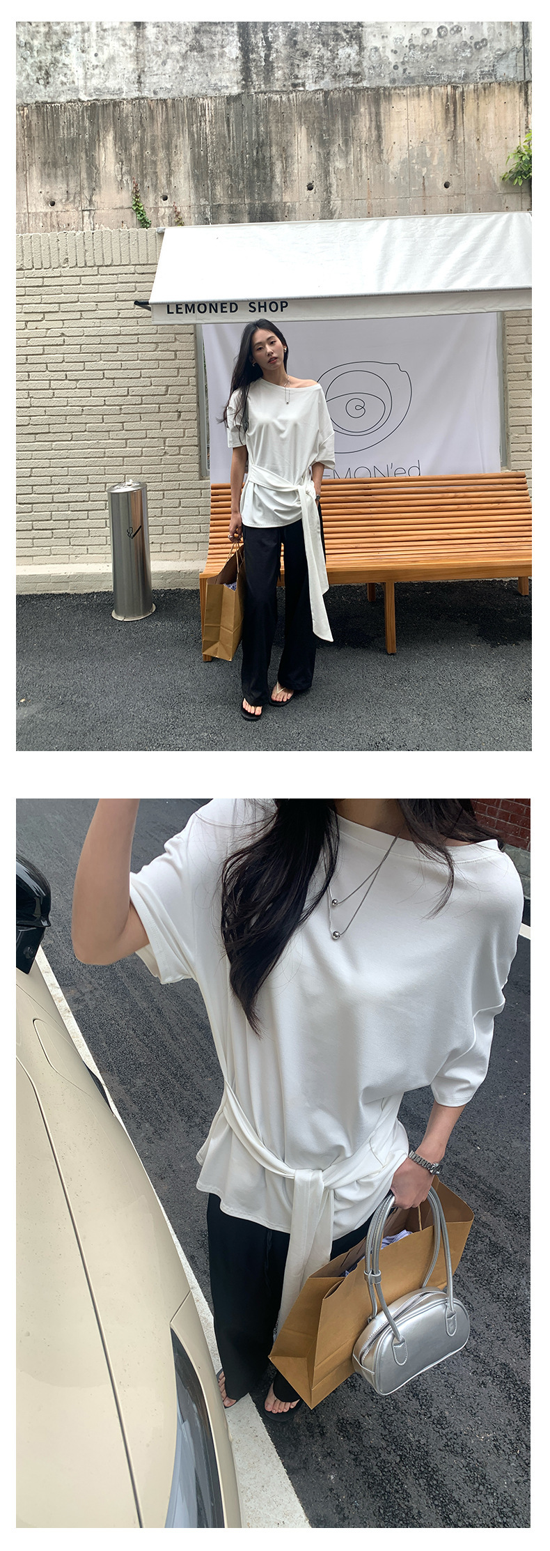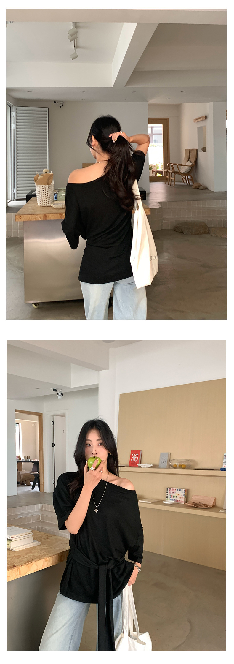 *o-ha-you*【FHZH1DA5010227】繫帶不規則剪裁斜肩短袖女2025春夏時尚個性百搭上衣-2色-如有需要請先諮詢
