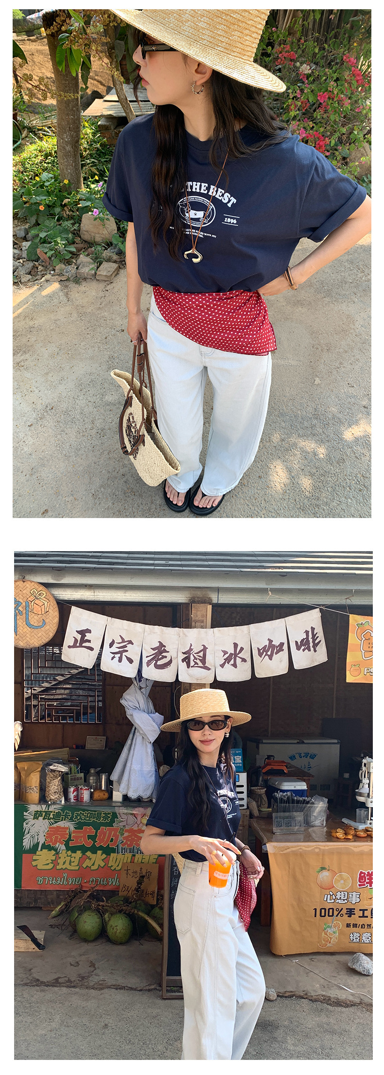*o-ha-you*【FHZH1DA5020183】純棉圓領印花寬鬆短袖T恤2025夏款簡約百搭時尚上衣-4色-如有需要請先諮詢