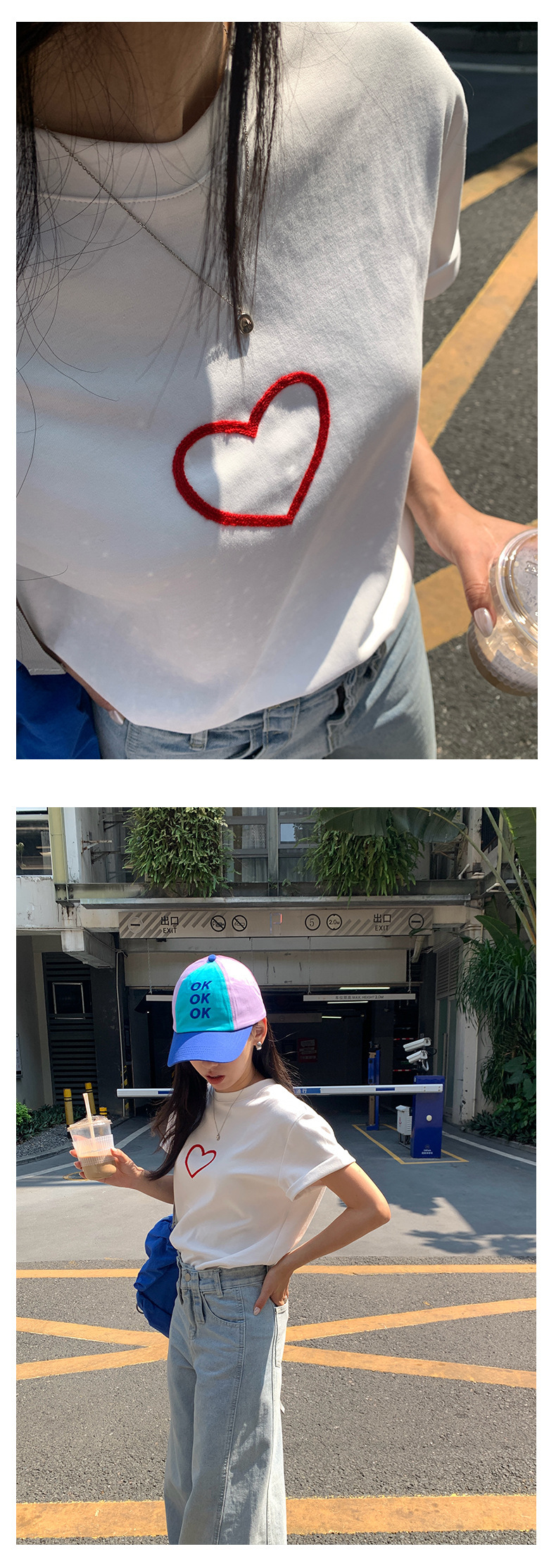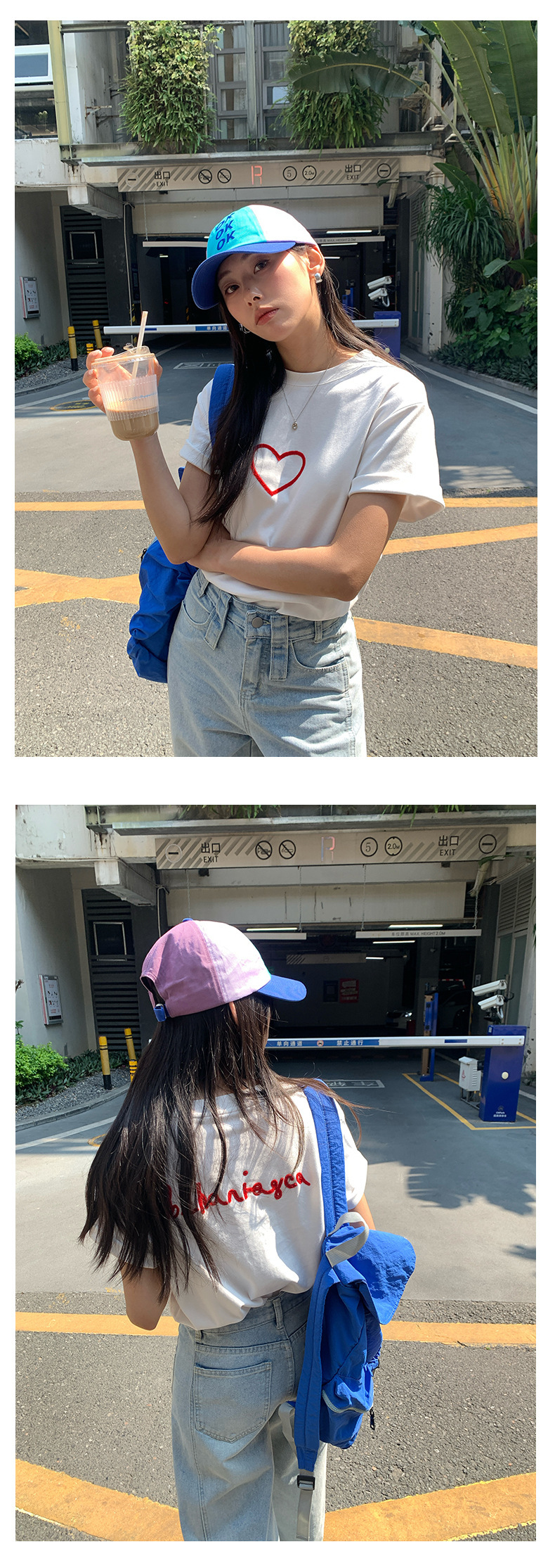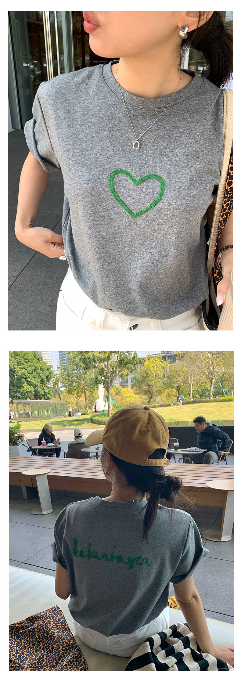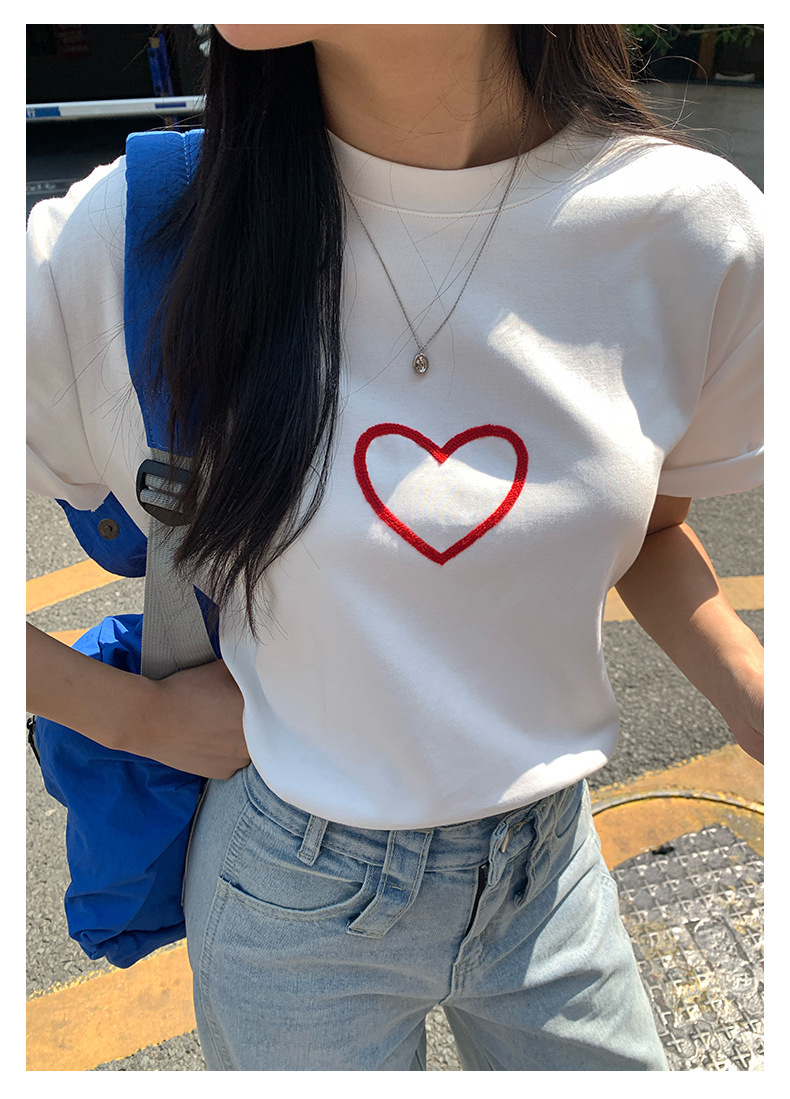 *o-ha-you*【FHZH1DA5020235】立體愛心刺繡後字母繡寬鬆短袖2025夏款個性甜美上衣-2色-如有需要請先諮詢