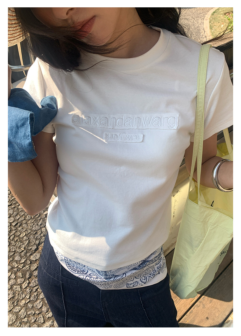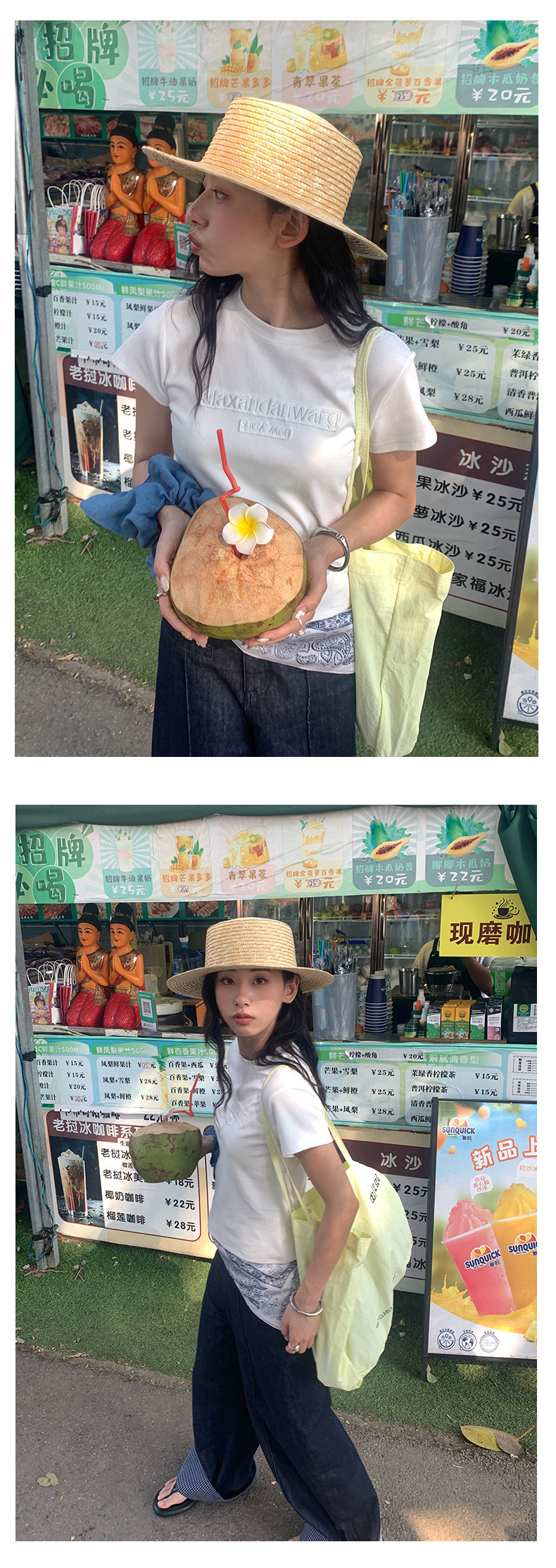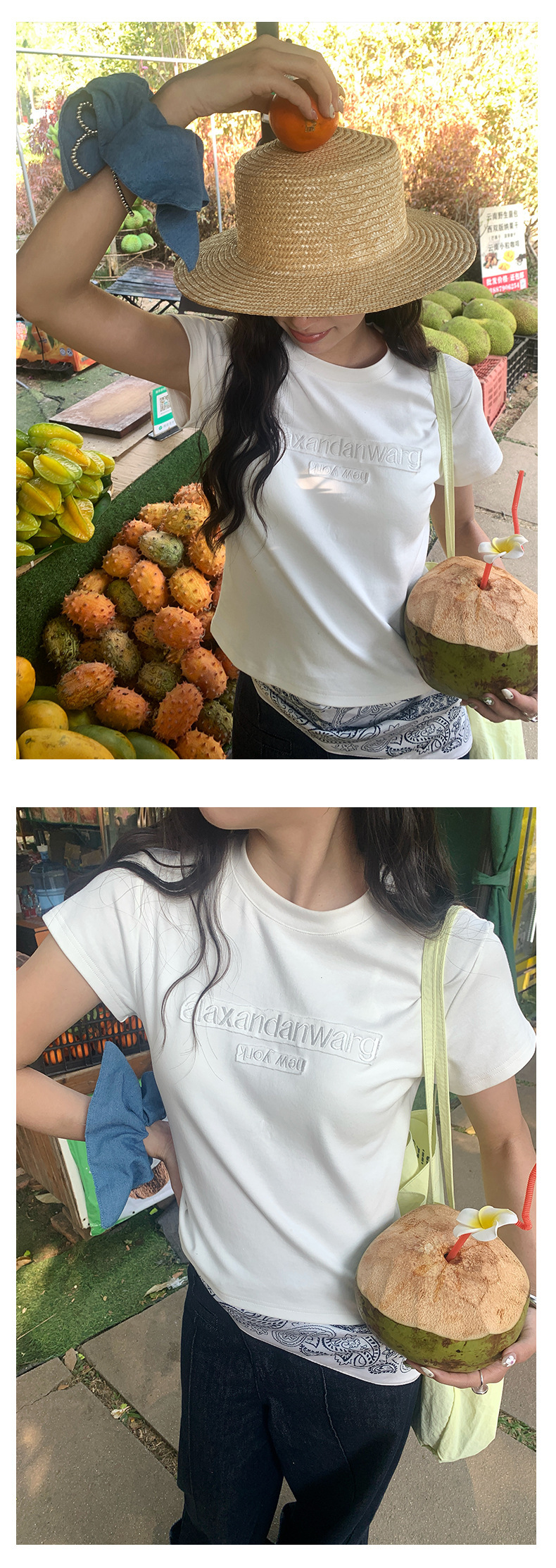 *o-ha-you*【FHZH1DA5020238】純棉圓領字母刺繡短袖T恤2025夏季款簡約時尚百搭款-2色-如有需要請先諮詢