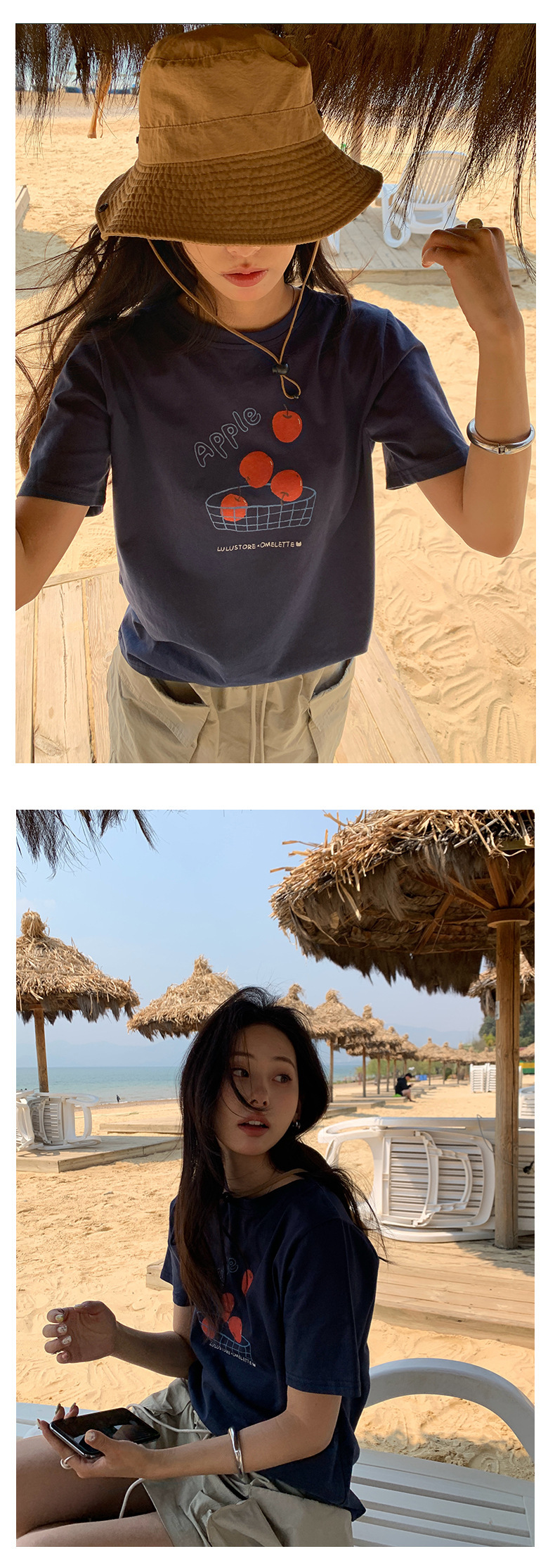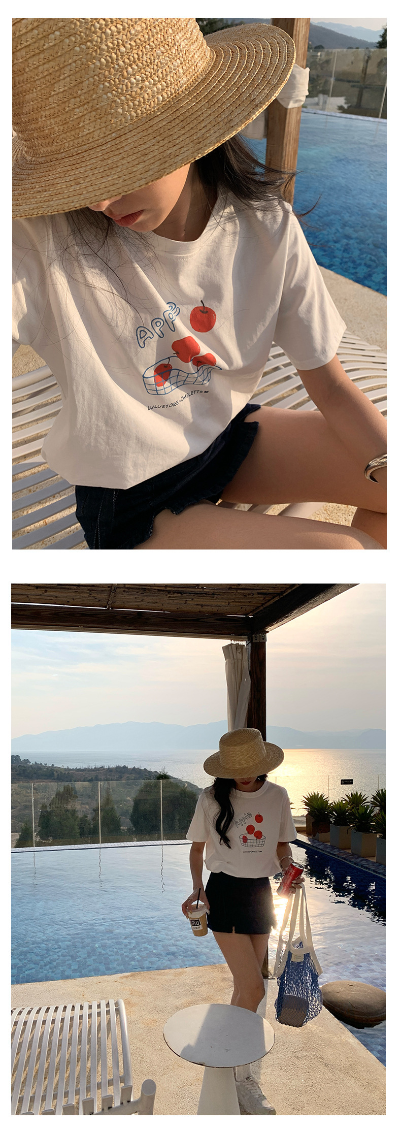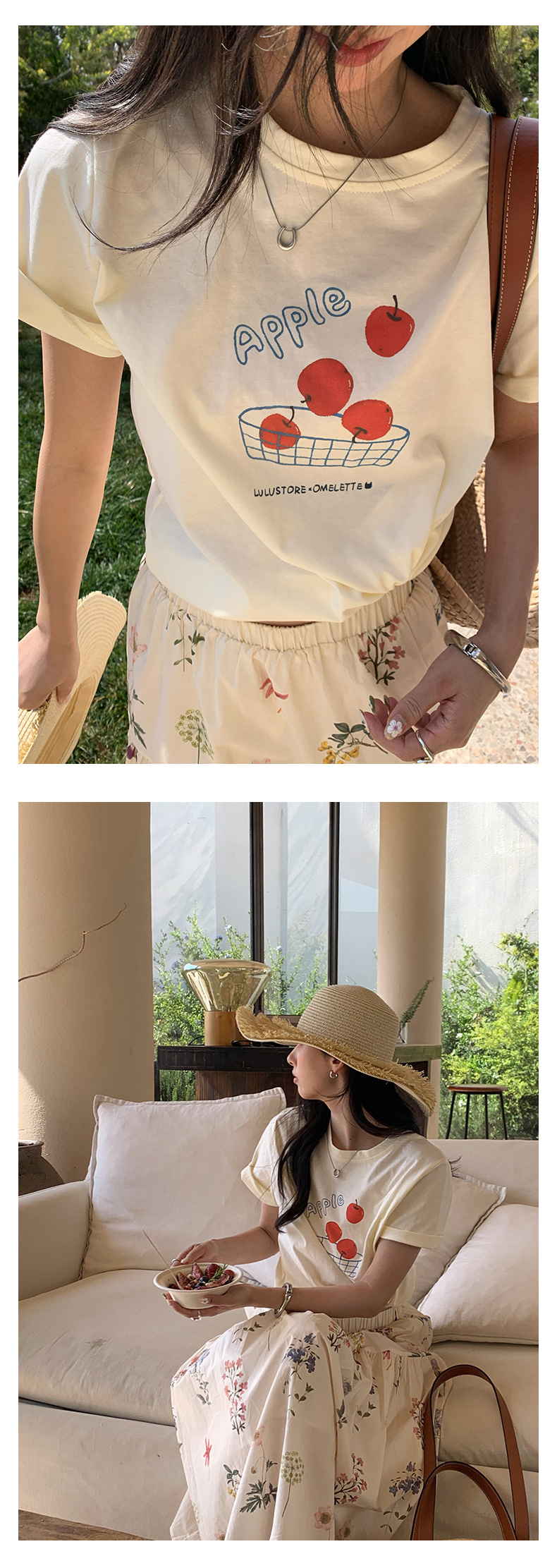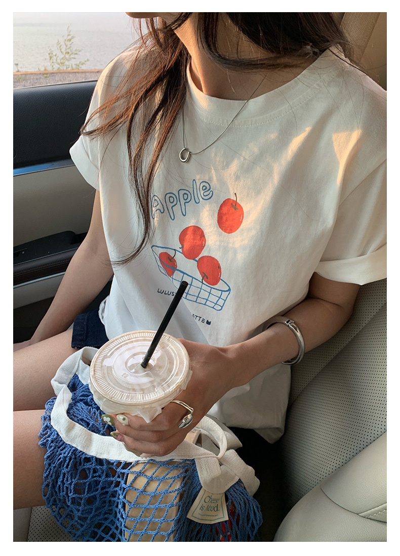 *o-ha-you*【FHZH1DA5020277】蘋果圖案印花圓領短袖T恤2025夏款清新可愛上衣-3色-如有需要請先諮詢