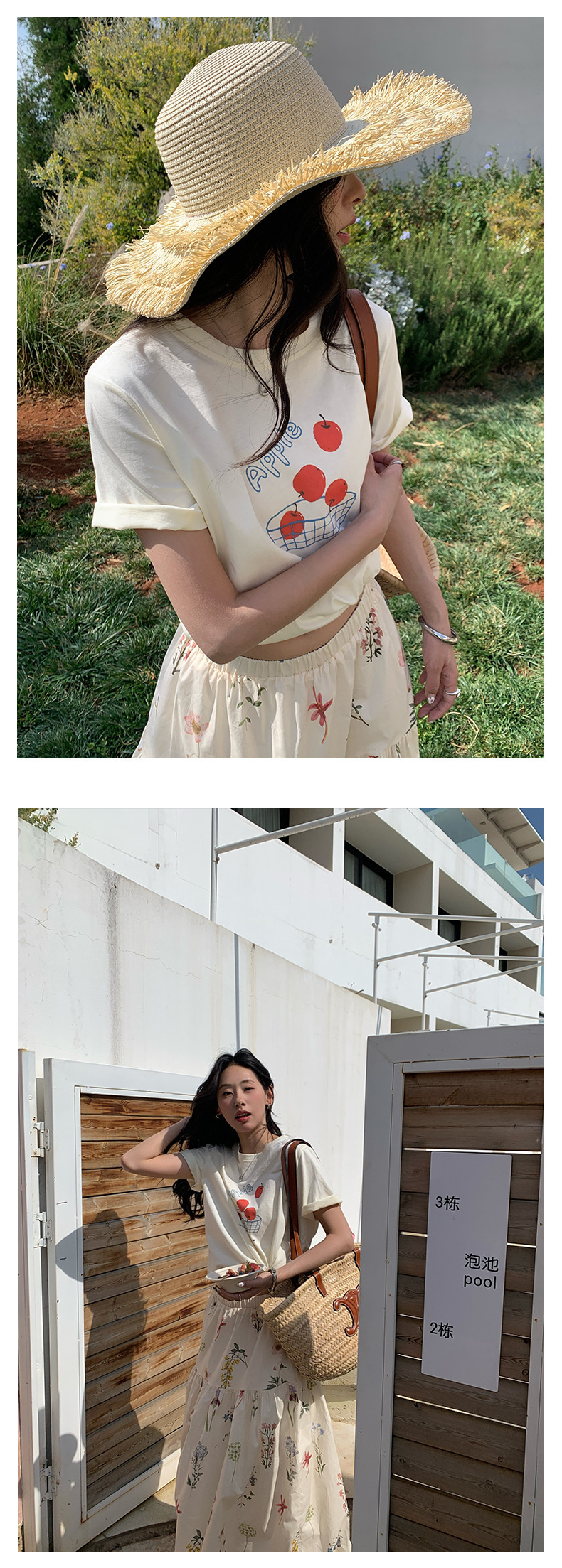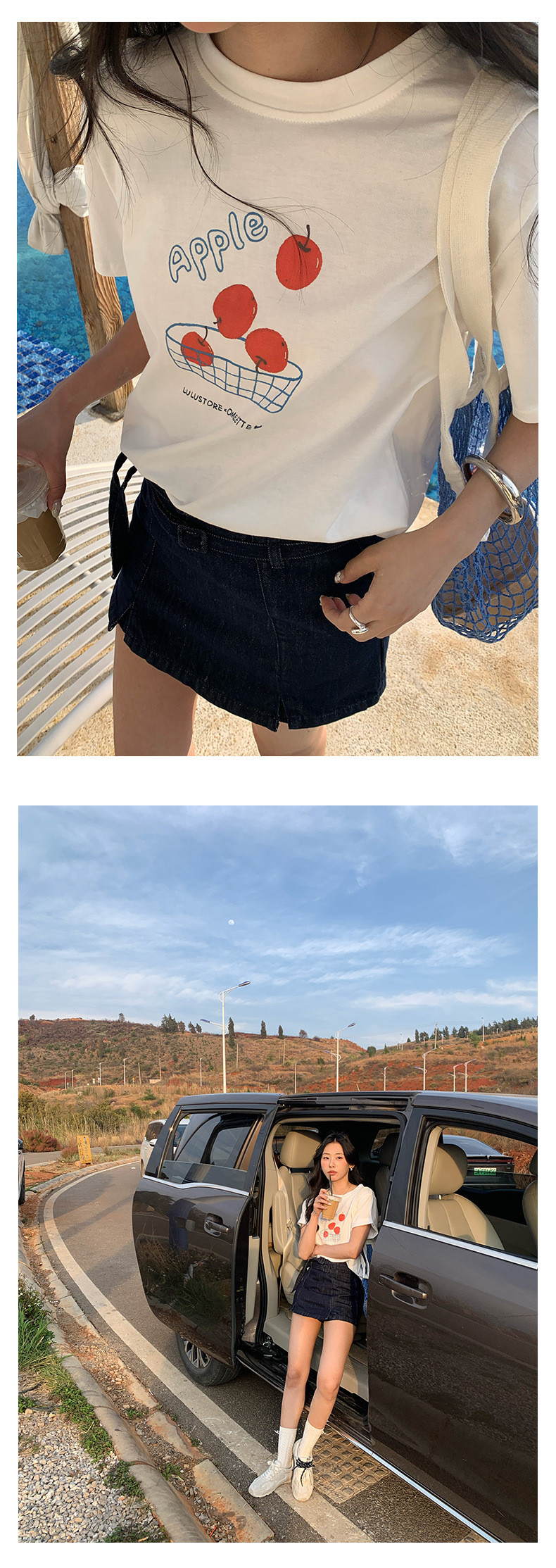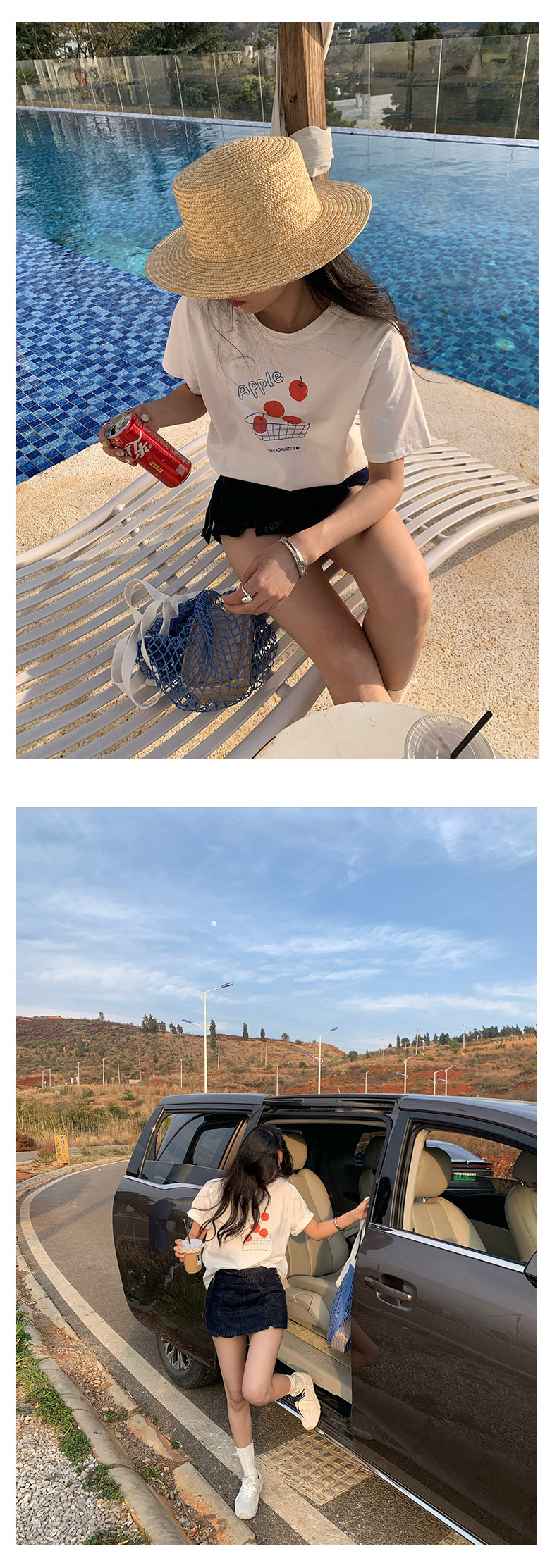 *o-ha-you*【FHZH1DA5020277】蘋果圖案印花圓領短袖T恤2025夏款清新可愛上衣-3色-如有需要請先諮詢