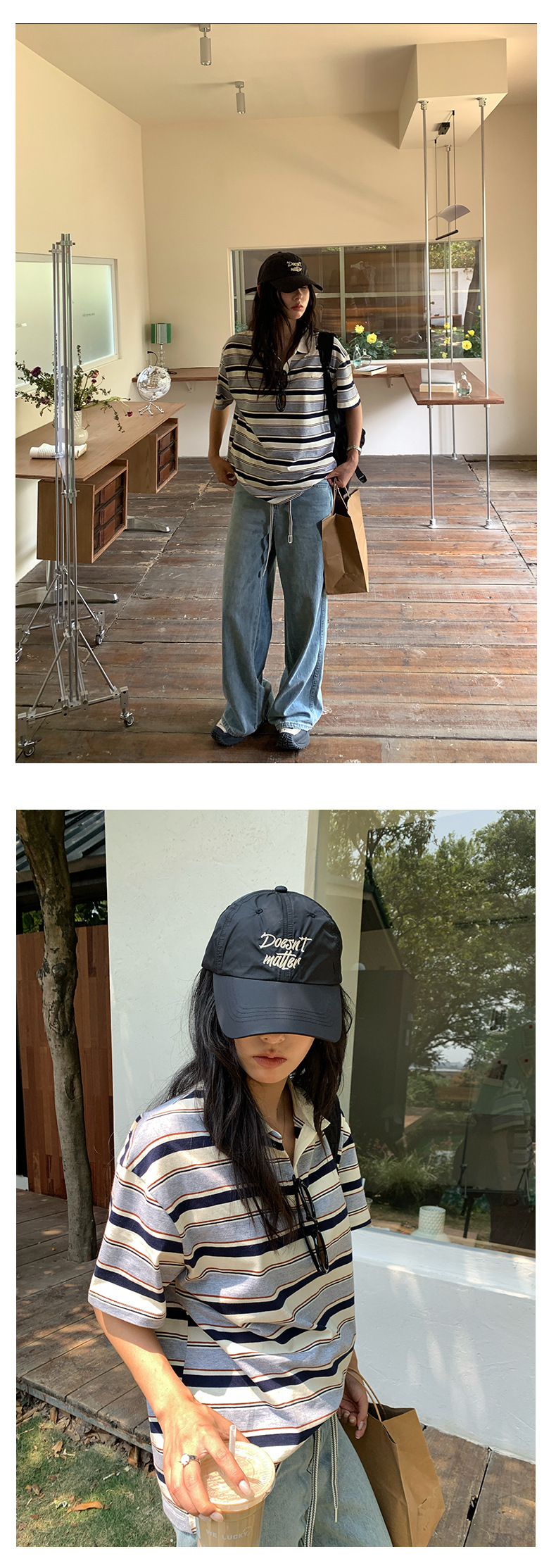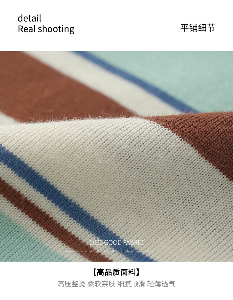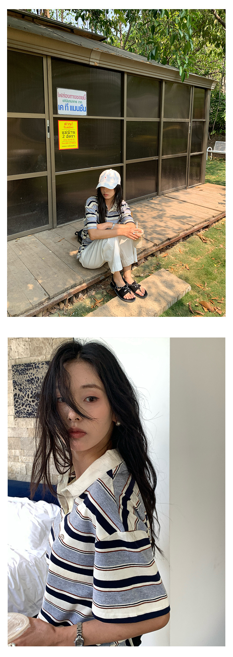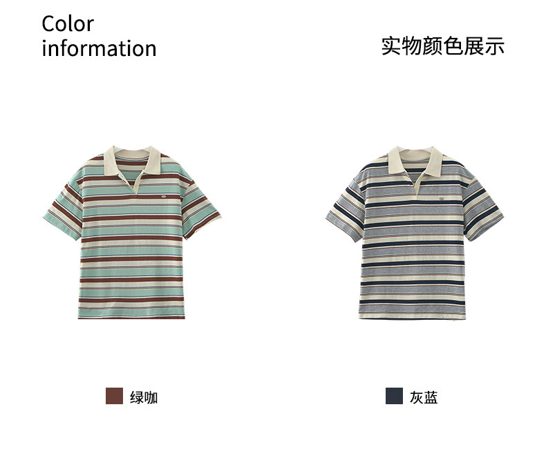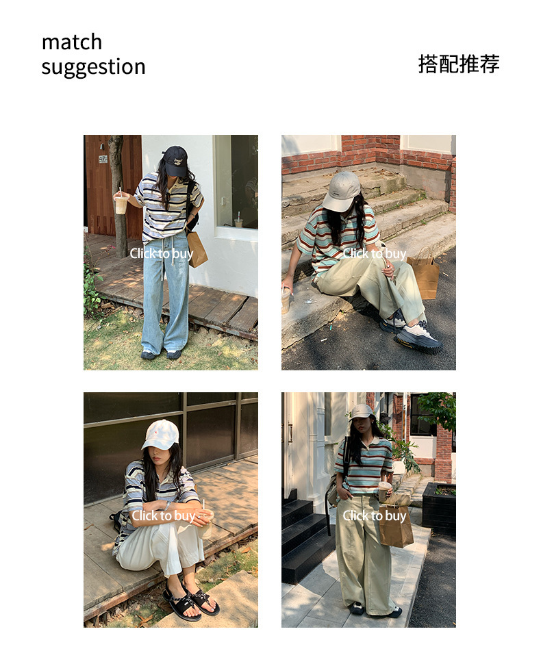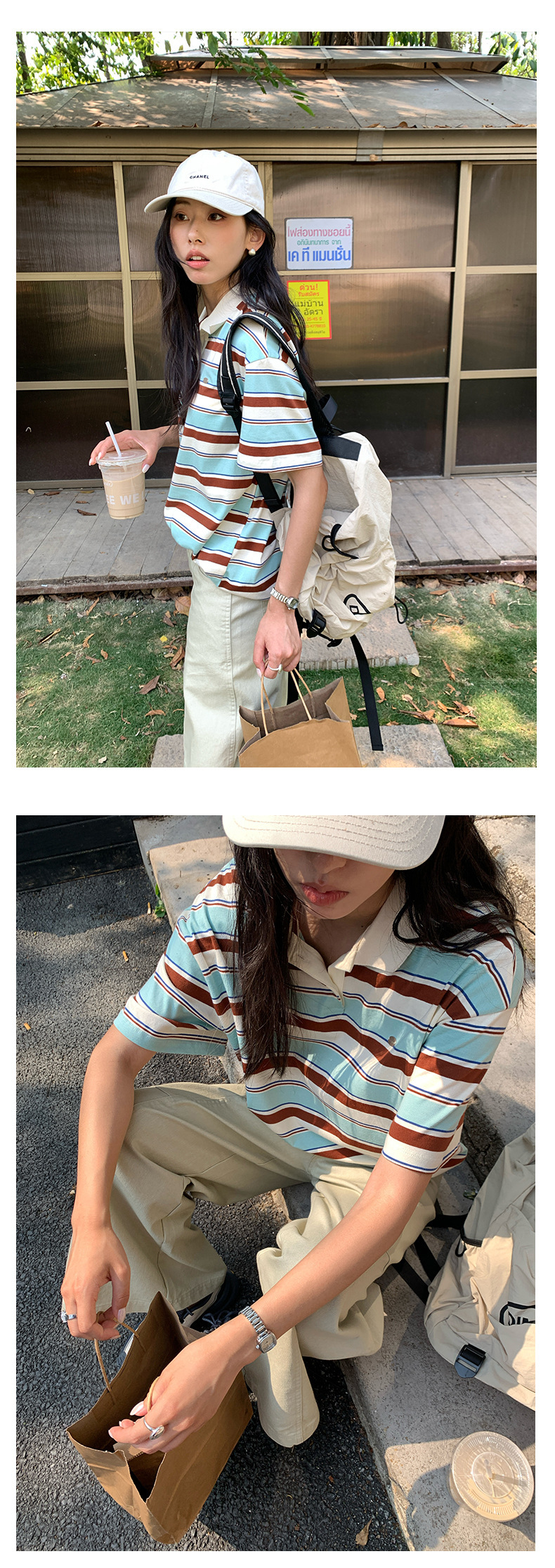 *o-ha-you*【FHZH1DA5020329】撞色條紋polo領鈕扣裝飾寬鬆短T恤2025夏款休閒時尚上衣-2色-如有需要請先諮詢