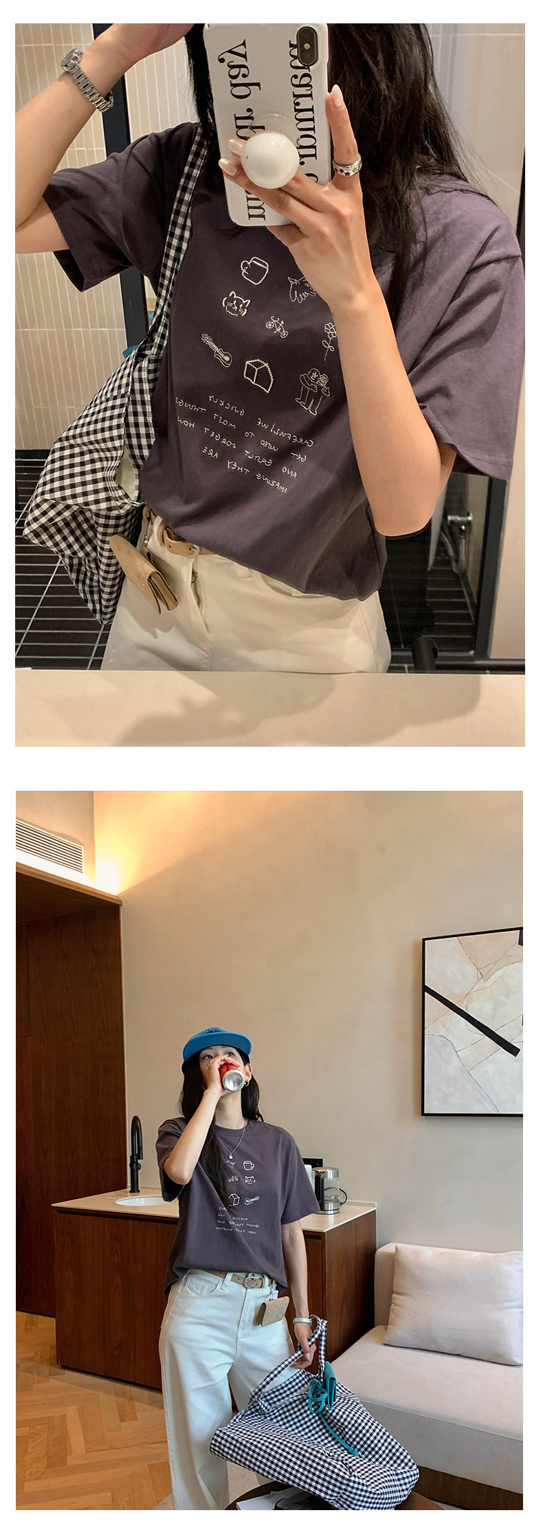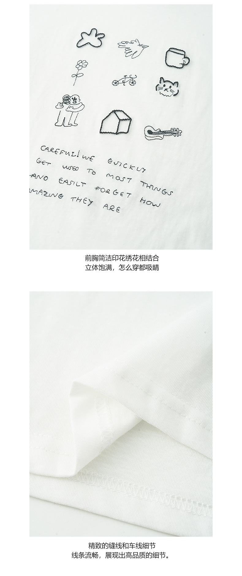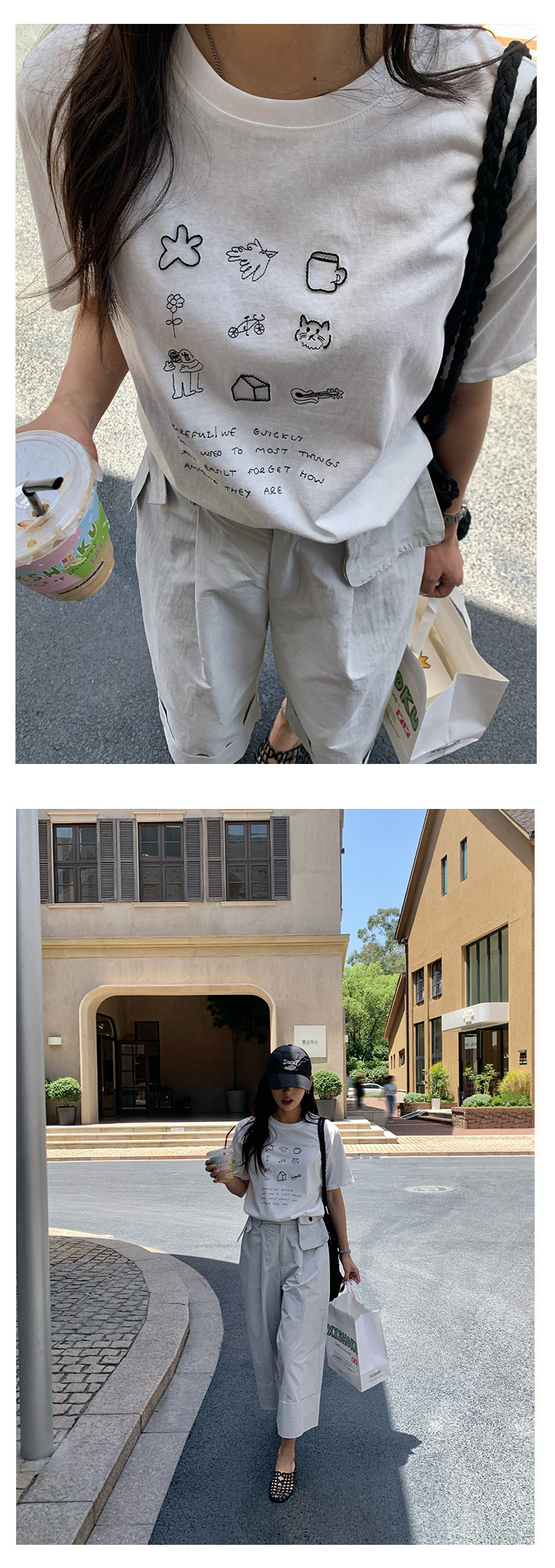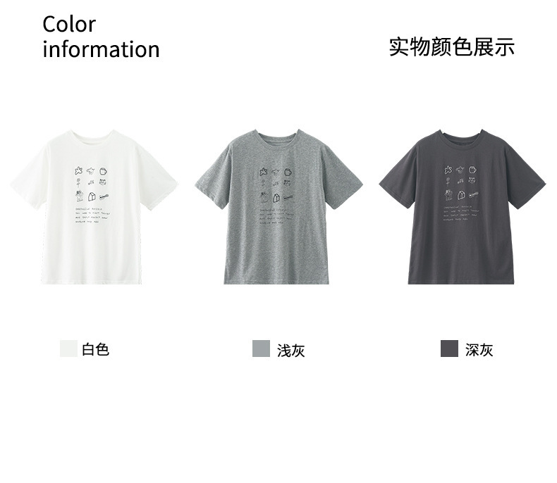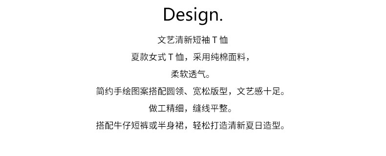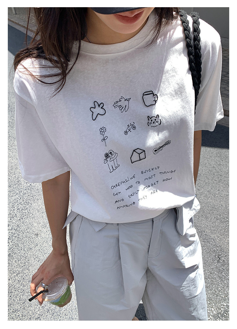 *o-ha-you*【FHZH1DA5020386】簡約手繪圖案棉質寬鬆圓領短袖T恤2025夏款文藝清新-3色