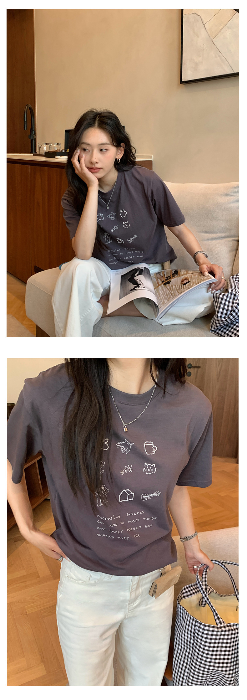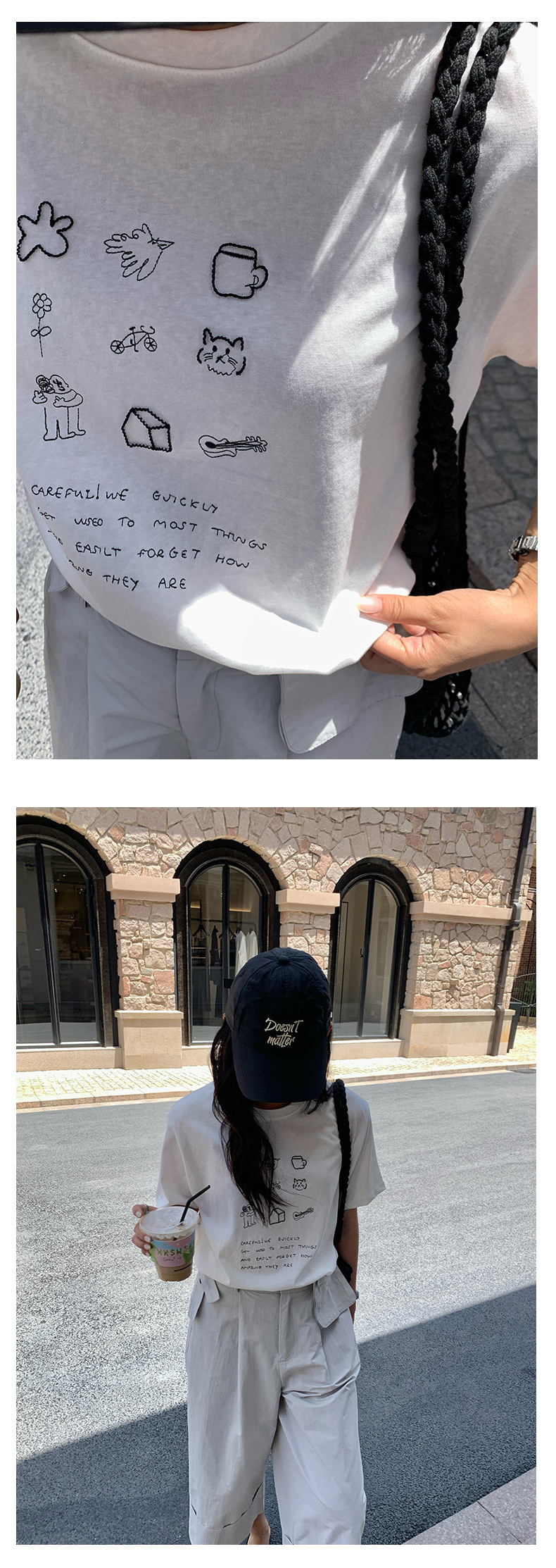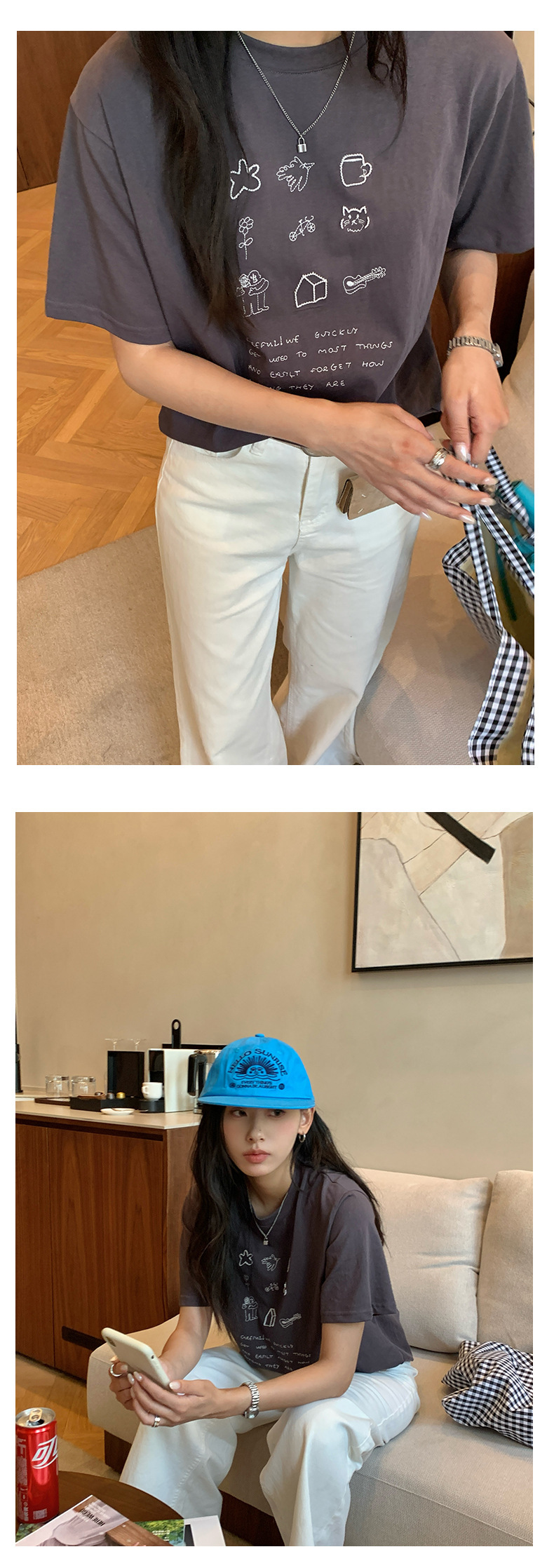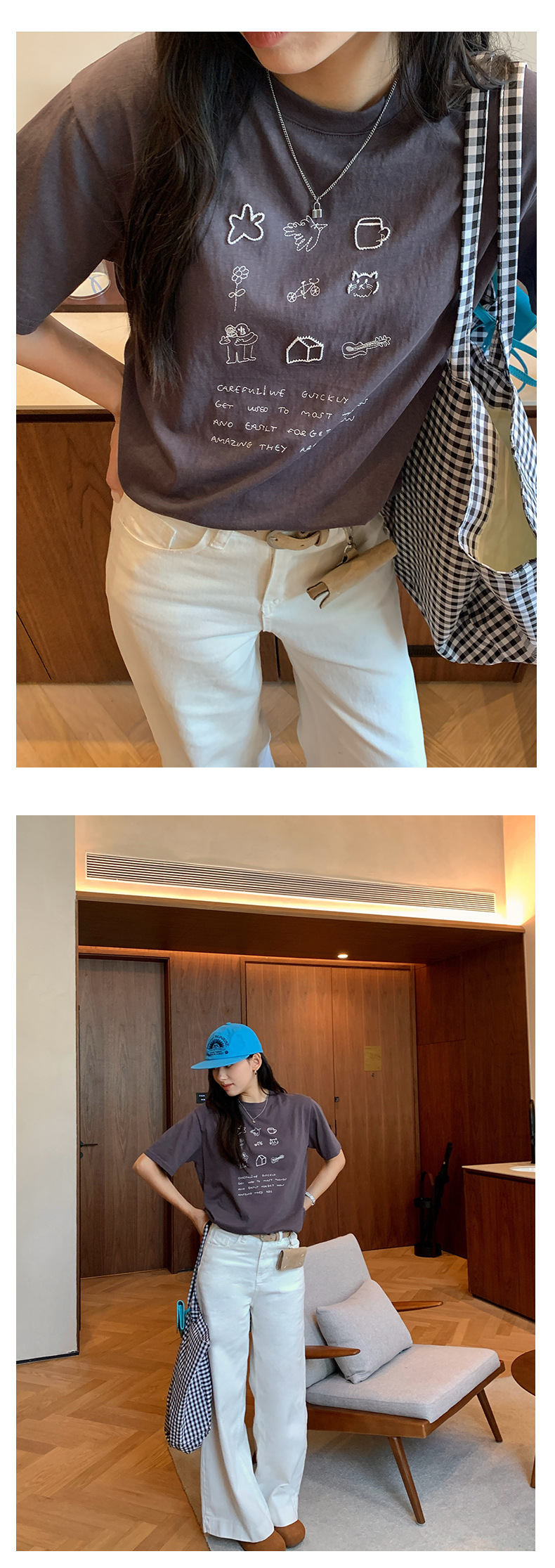 *o-ha-you*【FHZH1DA5020386】簡約手繪圖案棉質寬鬆圓領短袖T恤2025夏款文藝清新-3色